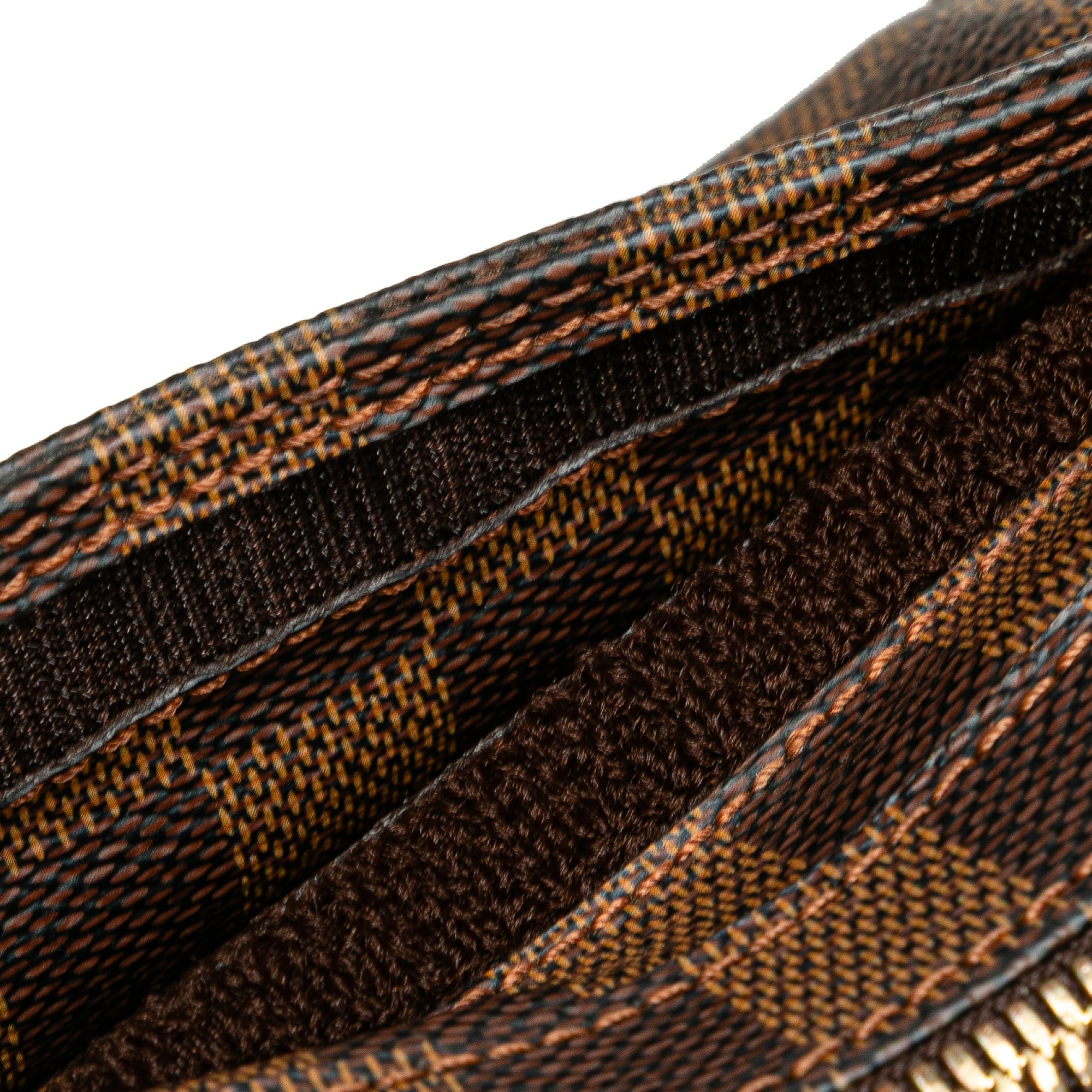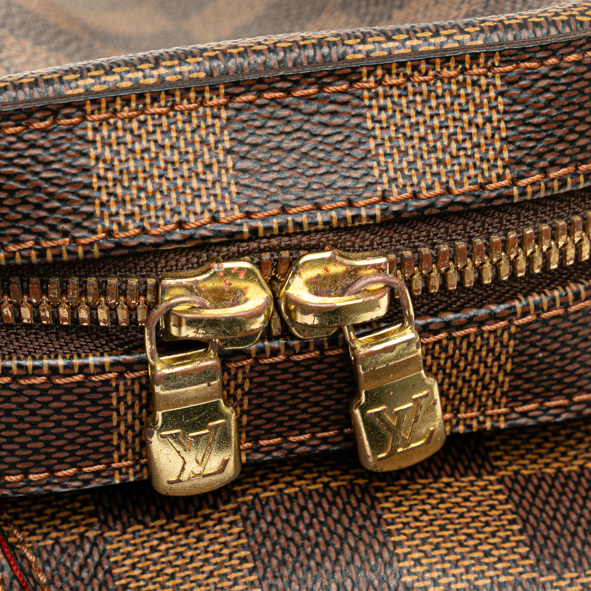 The Geronimos features a damier ebene canvas body, an adjustable flat strap, and a top zip closure Retail Price: 1070.00