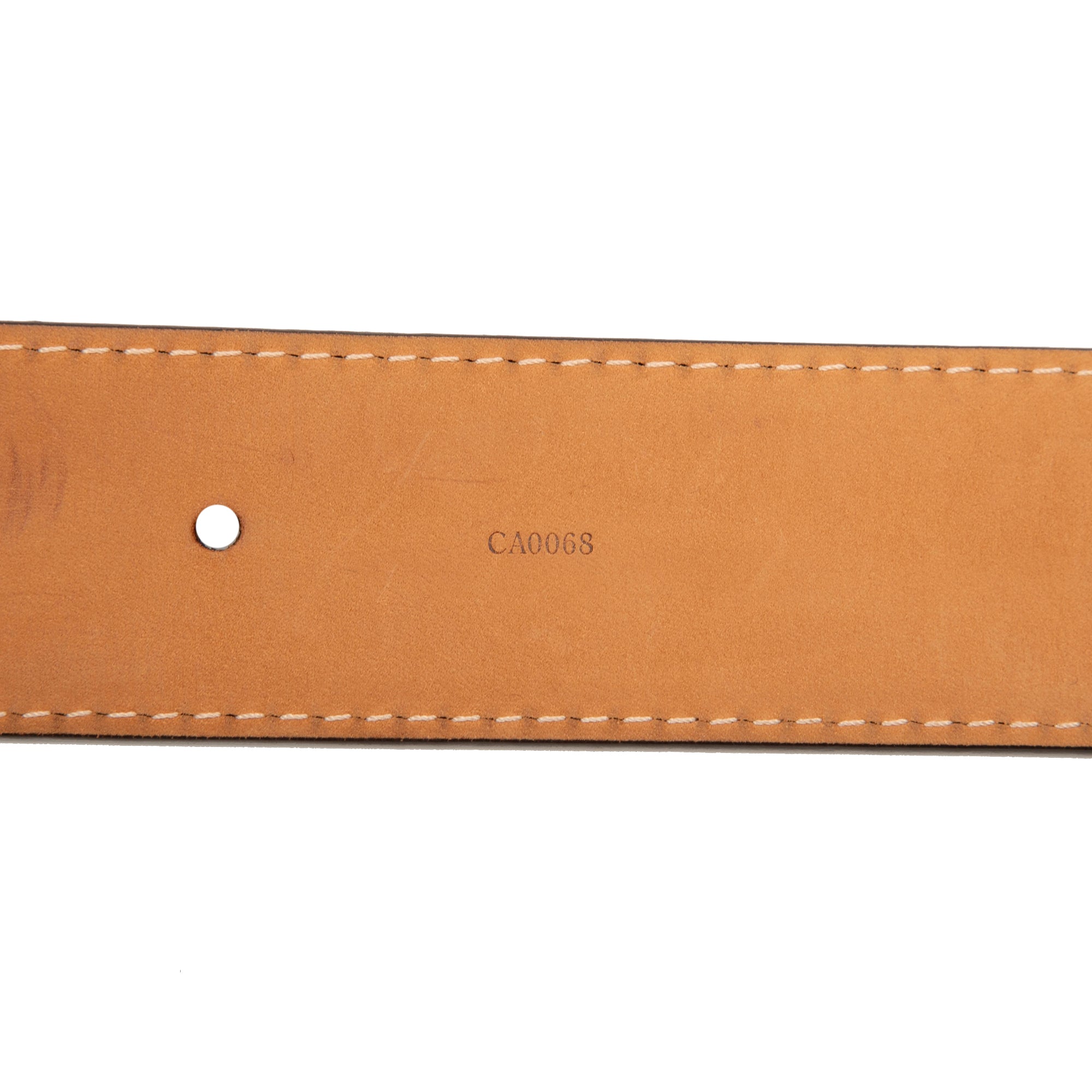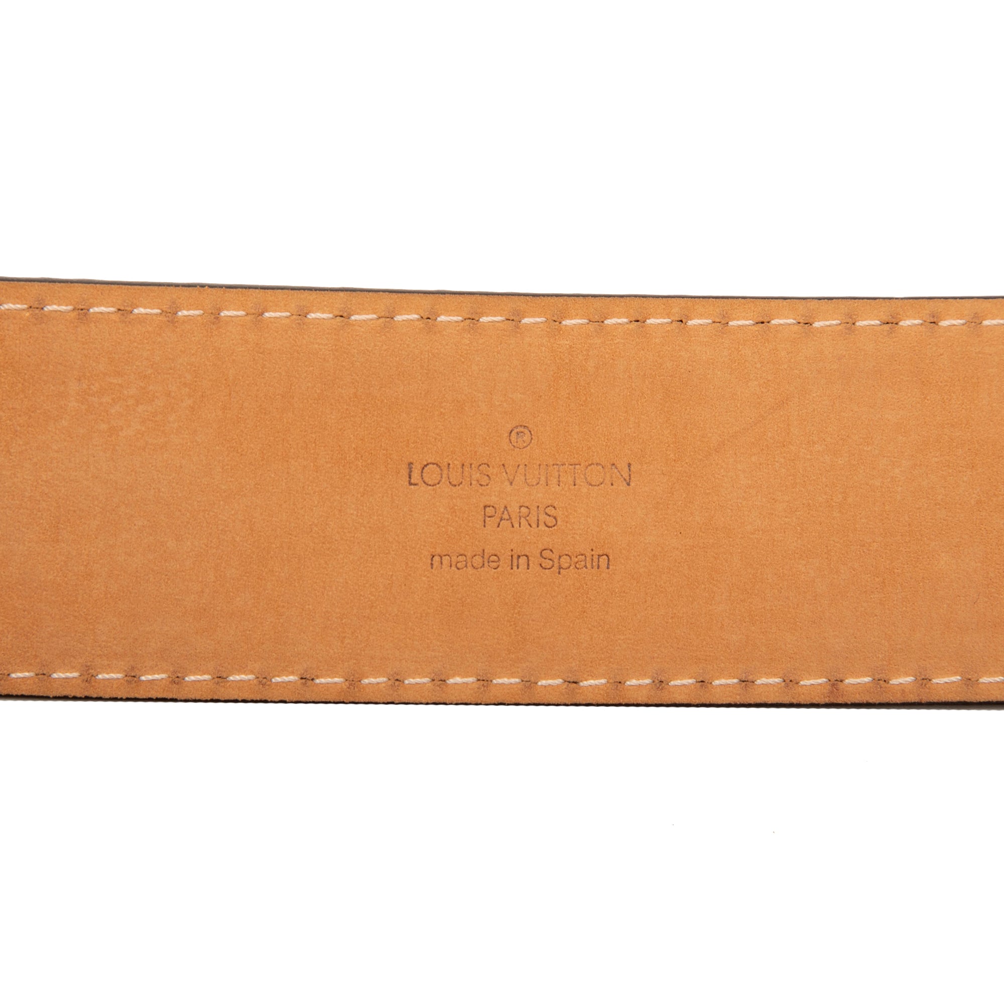 This belt features a damier ebene canvas body with gold tone buckle closure. Retail Price: 700.00