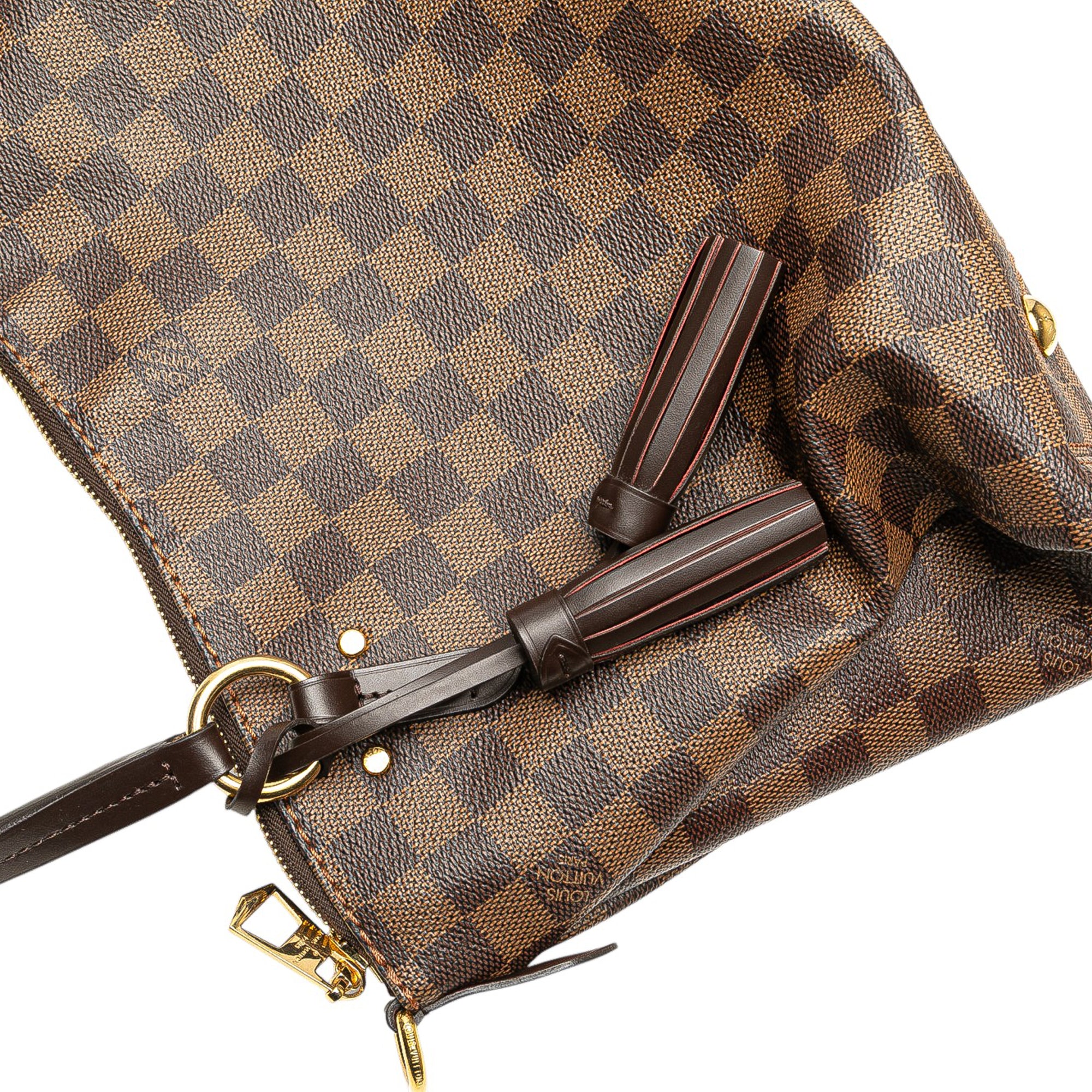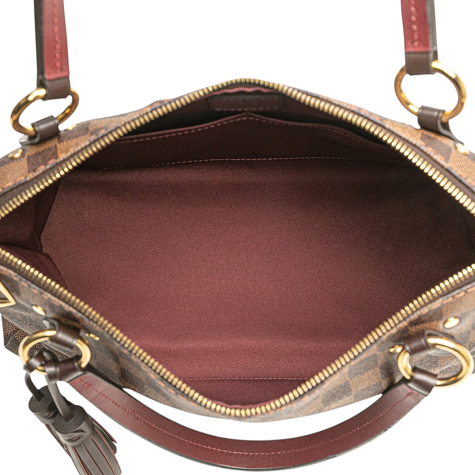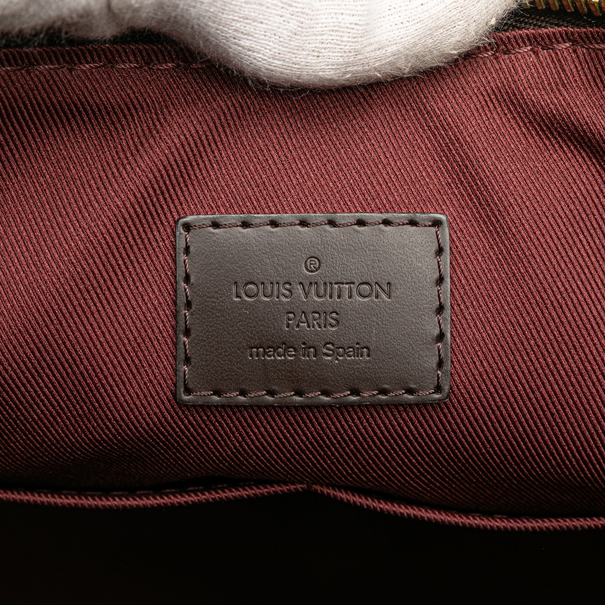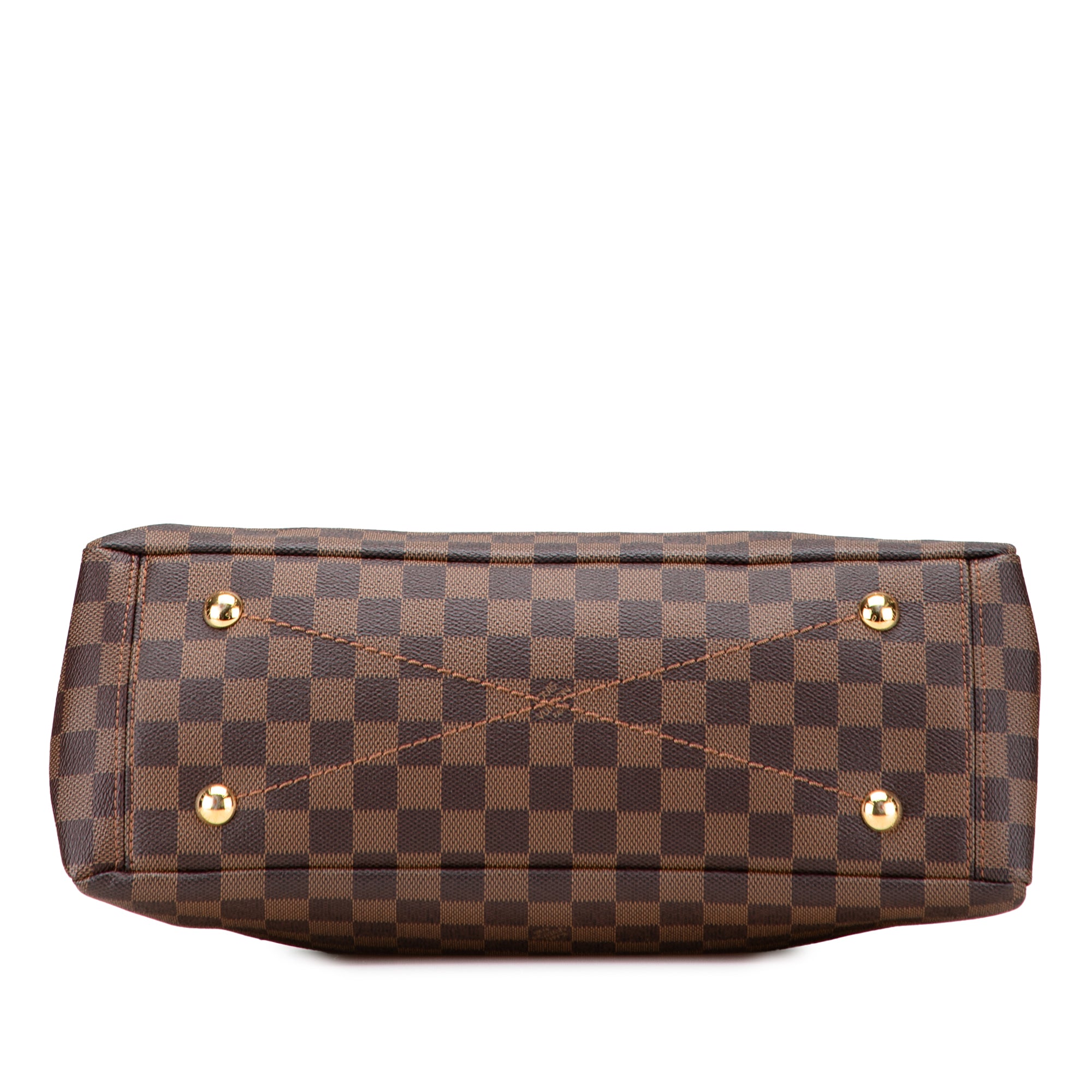 The Lymington features a damier ebene canvas body with leather trim, flat leather handles, a detachable leather shoulder strap, a top zip closure, and interior slip pockets. Retail Price: 2170.00