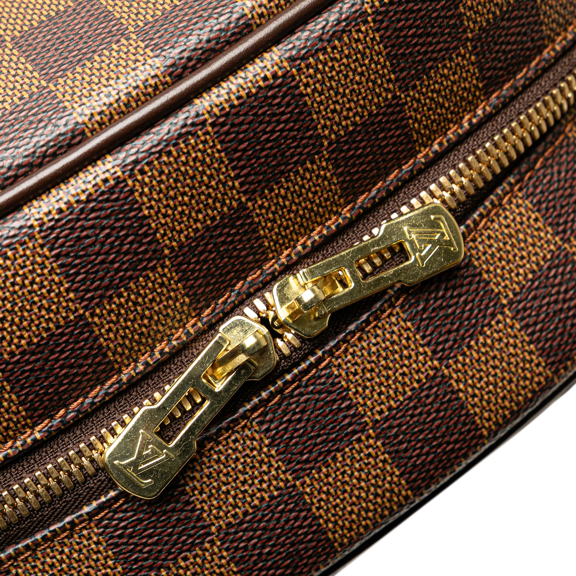 The Nolita 24 Heures features a damier ebene canvas body, rolled leather handles, a top zip closure, and interior zip and slip pockets. Retail Price: 1348.00