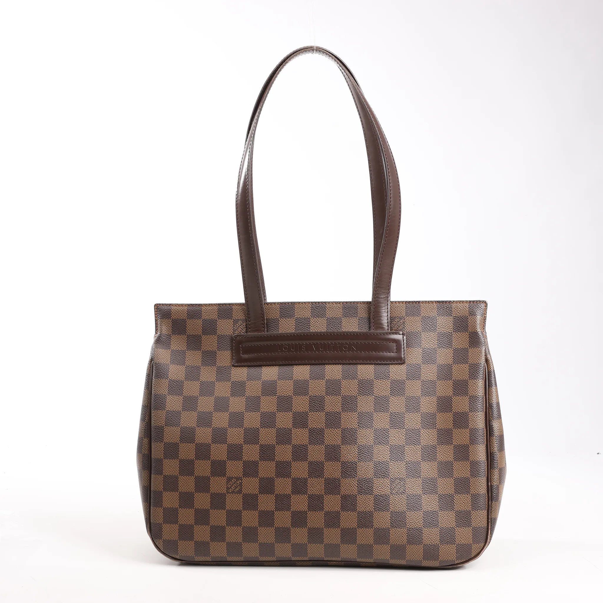The Louis Vuitton Parioli PM N51123 is a sleek shoulder bag crafted from durable Damier Ebene canvas with leather trim. Its structured shape and elegant style make it a timeless, practical choice for everyday luxury.Brand: Louis VuittonModel: ParioliSize: PMWidth: 34.5 cmHeight: 27 cmExterior Condition: ExcellentInterior Condition: ExcellentCondition Details: The exterior coated canvas is clean and beautiful in excellent condition. The leather handles and trim are clean and in very good condition with rubbings. The interior is in good condition except some pen stains. The date code is AR1014.Colour: BrownInterior Colour: RedHardware Colour: GoldMaterial: Leather, CanvasComes With: -