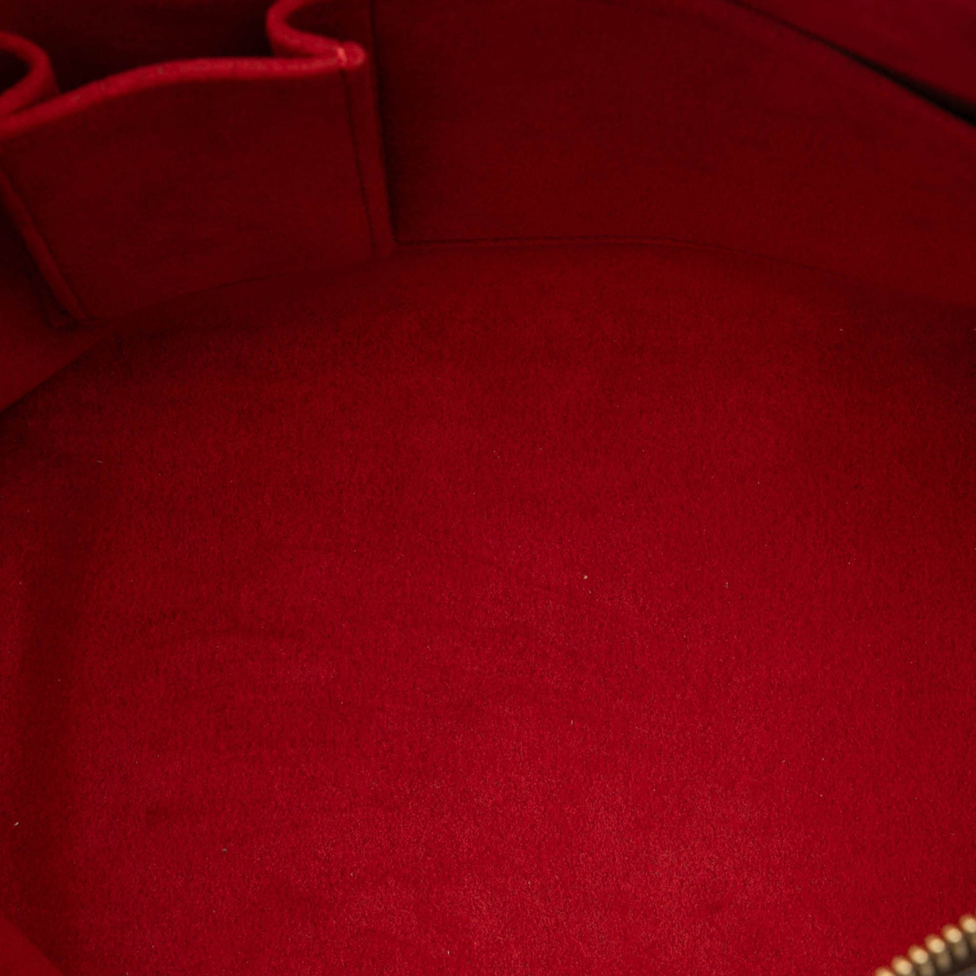 The Saleya PM features a damier ebene canvas body with leather trim, rolled leather handles, a top zip closure, and interior slip pockets. Retail Price: 1240.00