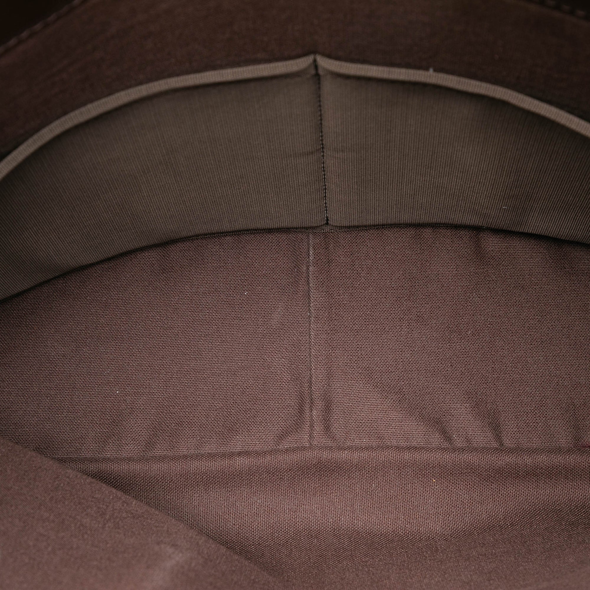 The Spencer features a damier ebene canvas body with leather trim, an adjustable flat canvas strap, a front flap with magnetic snap closure, exterior front and back zip pockets, and interior slip pockets. Retail Price: 1880.00