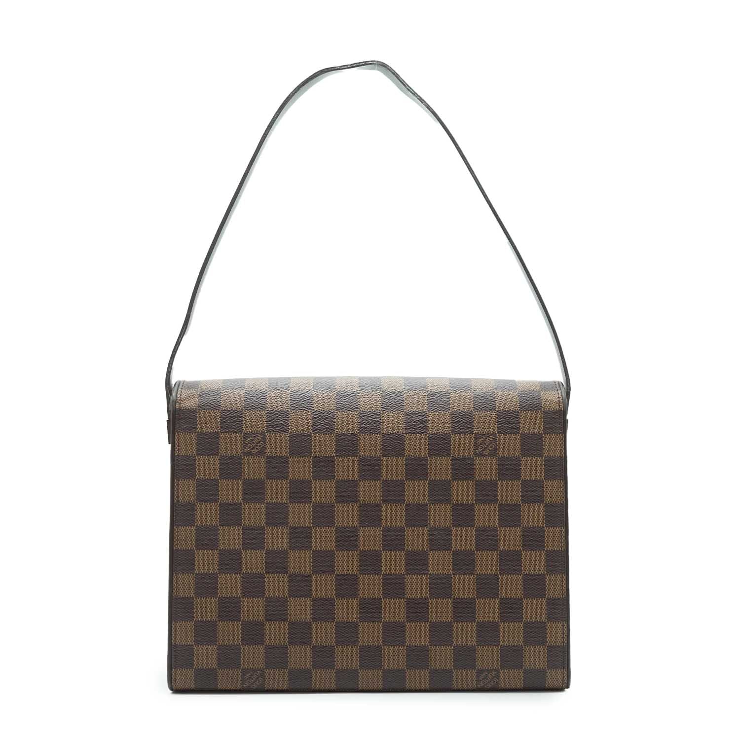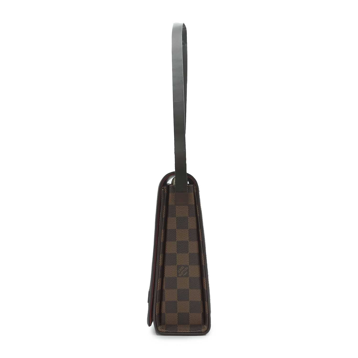 Damier Ebene Tribeca Carre Brown Canvas, LeatherDepth: 8cmHeight: 22cmWidth: 28.5cmShoulder Drop: 24cmOutside Rank: BInside Rank: BStain: Minor stains on the leather partsDiscoloration: Some hardware tarnishScratch: Minor corner rubWorn: In generalOdor: No odor presentTear: 2 small tears on the sides inside (at the folds of the flap)Include: Dust bagComments: The layers of the leather strap are partially coming apartSerial code: TH0031SKU: 7030126