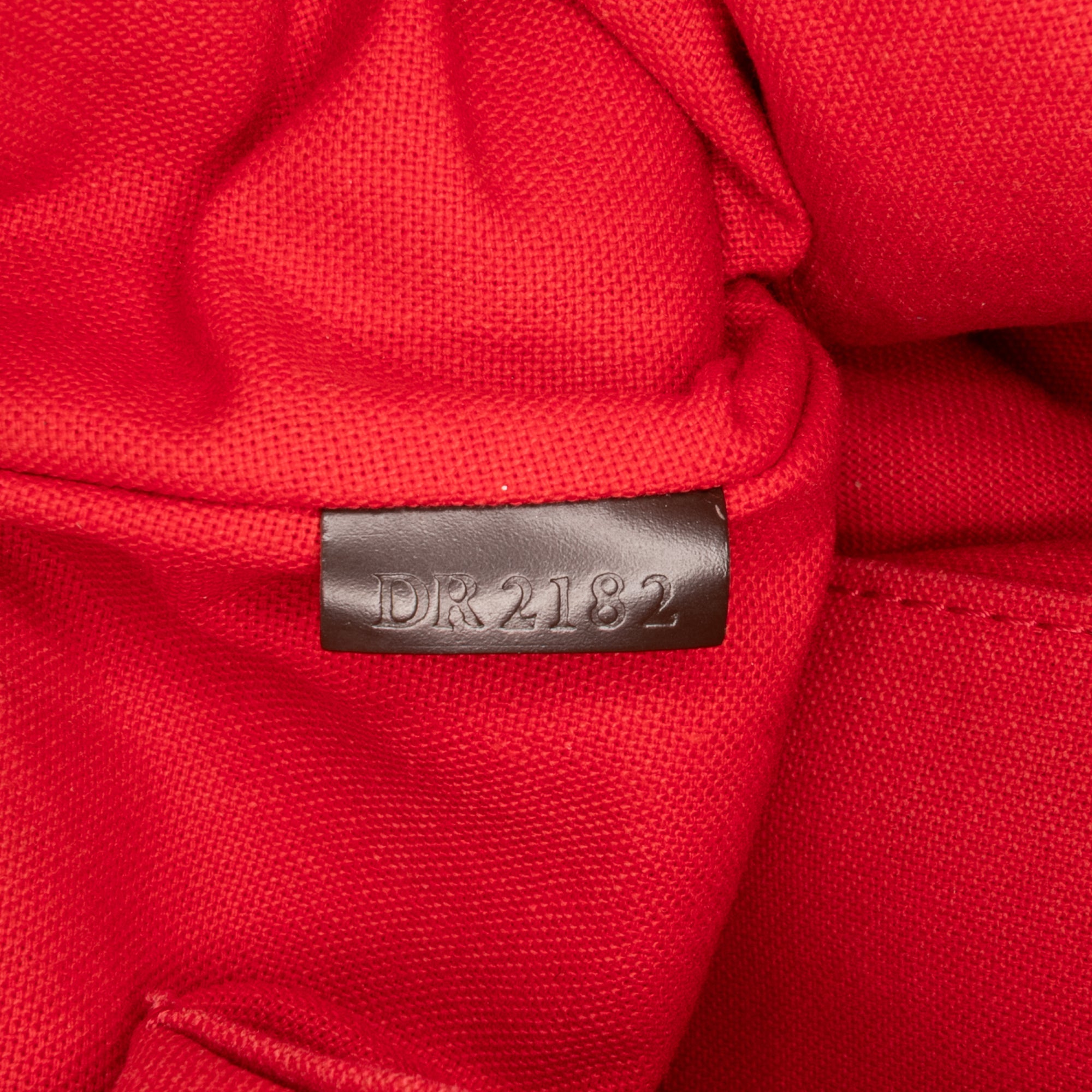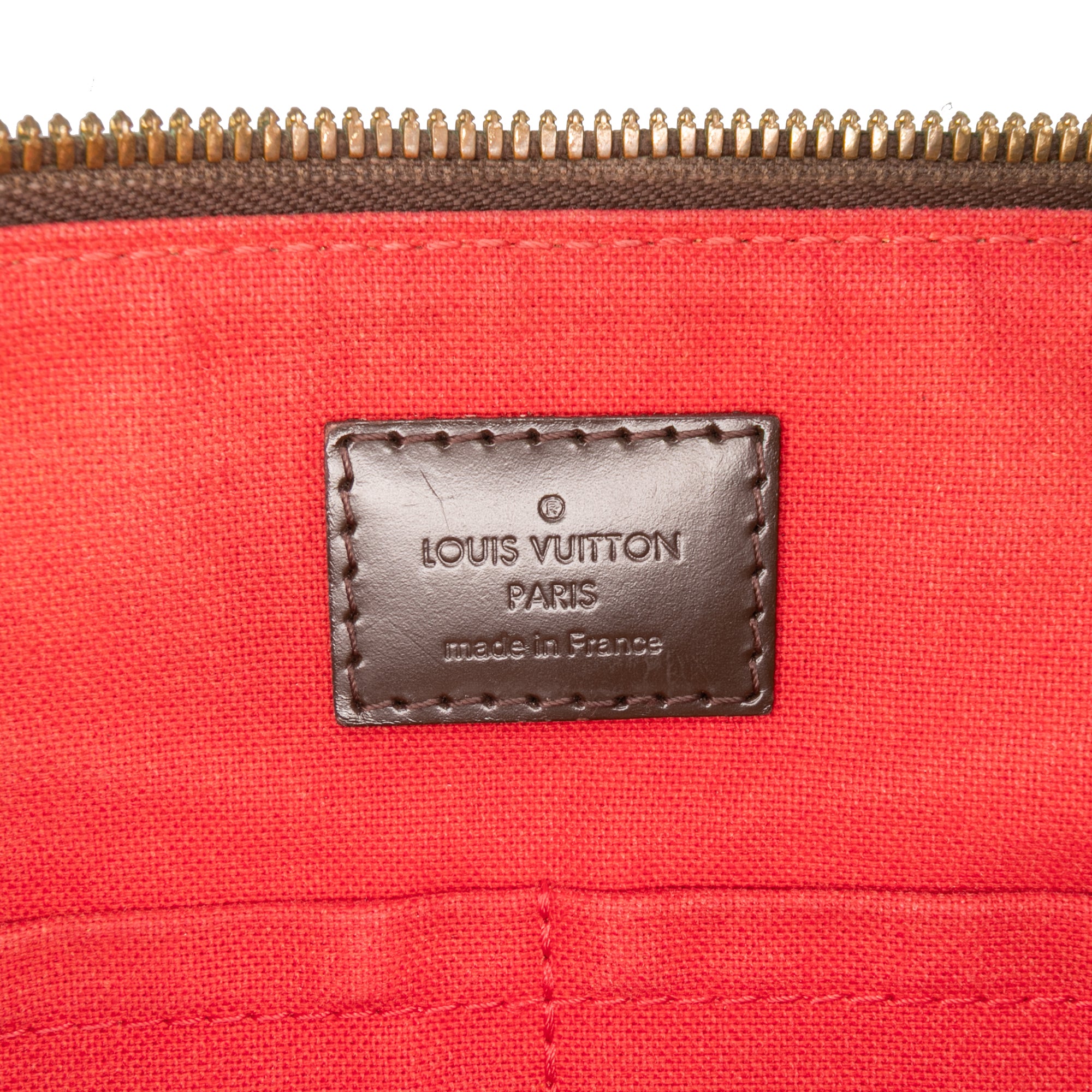 The Westminster GM features a damier ebene canvas body with leather trim, flat leather straps, a top zip closure, and interior slip pockets. Retail Price: 1650.00