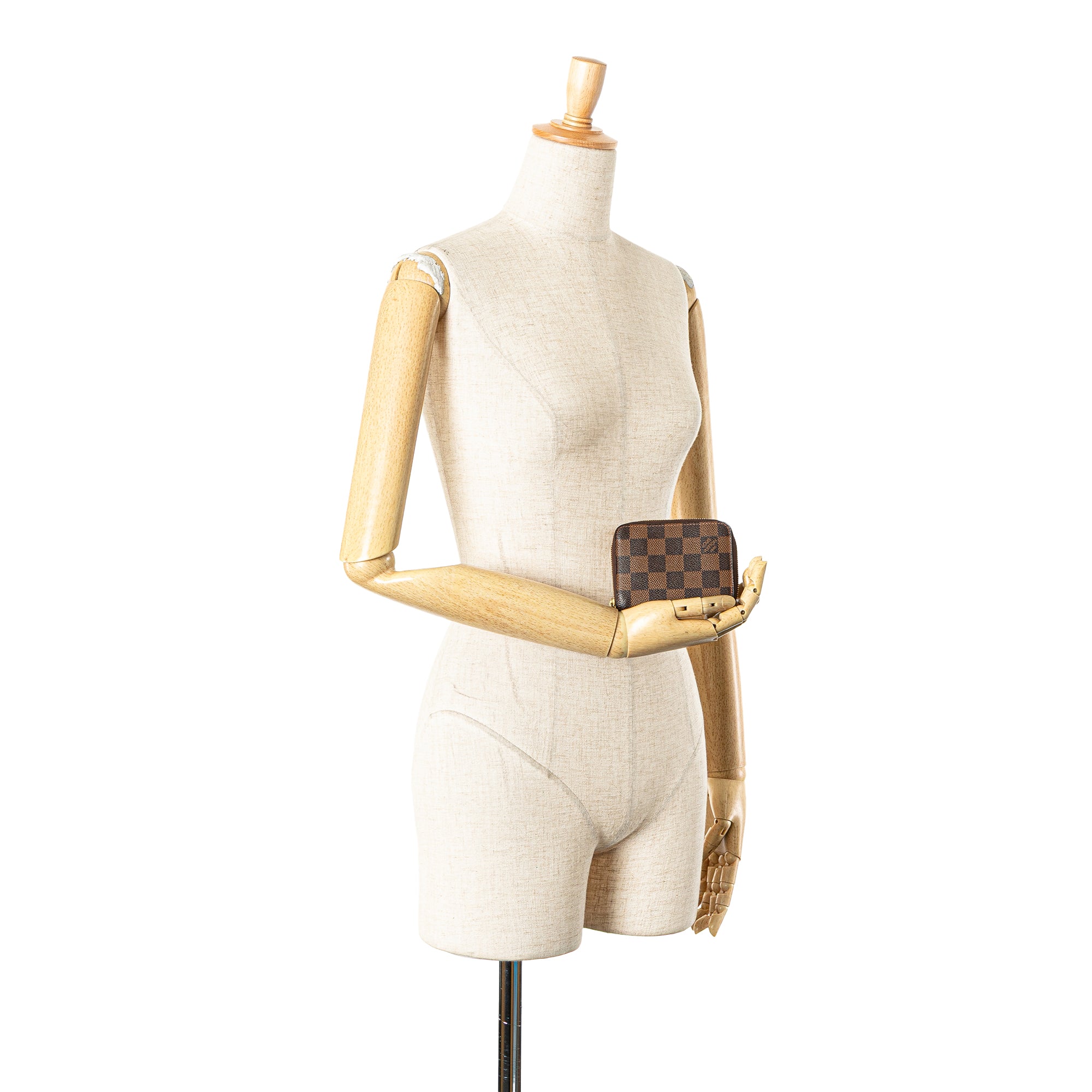 This coin purse features a damier ebene canvas body, a zip-around closure, and interior slip pockets. Retail Price: 515.00