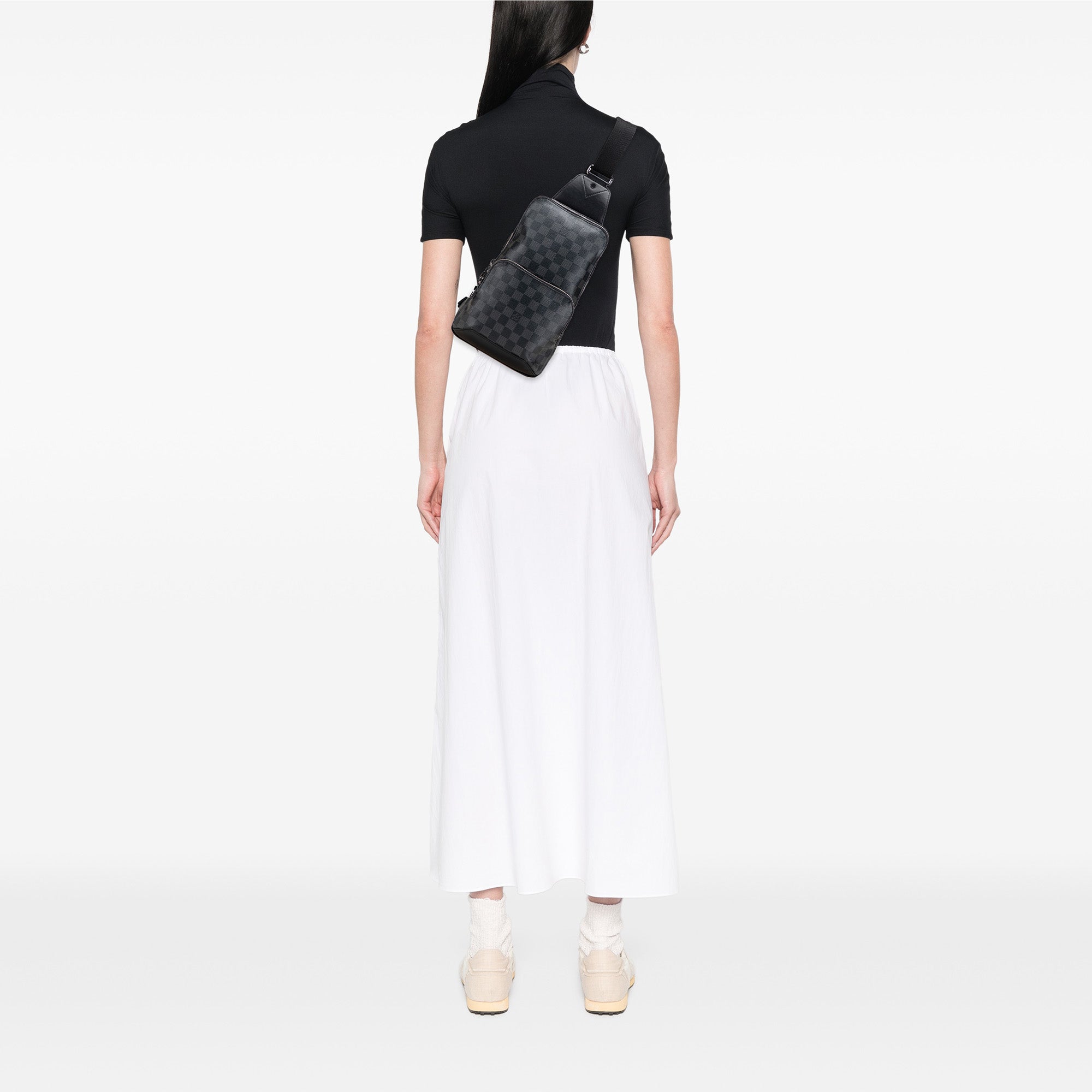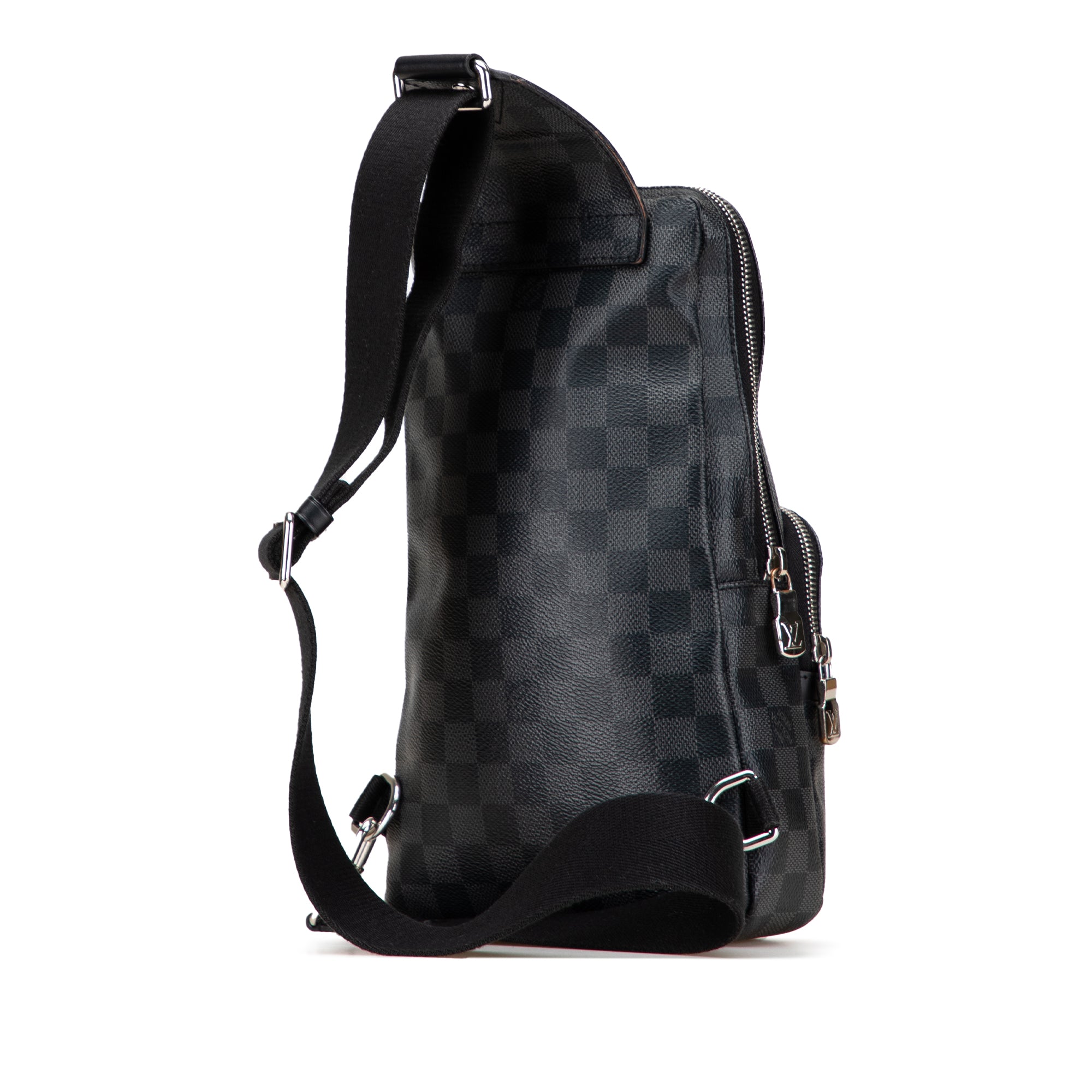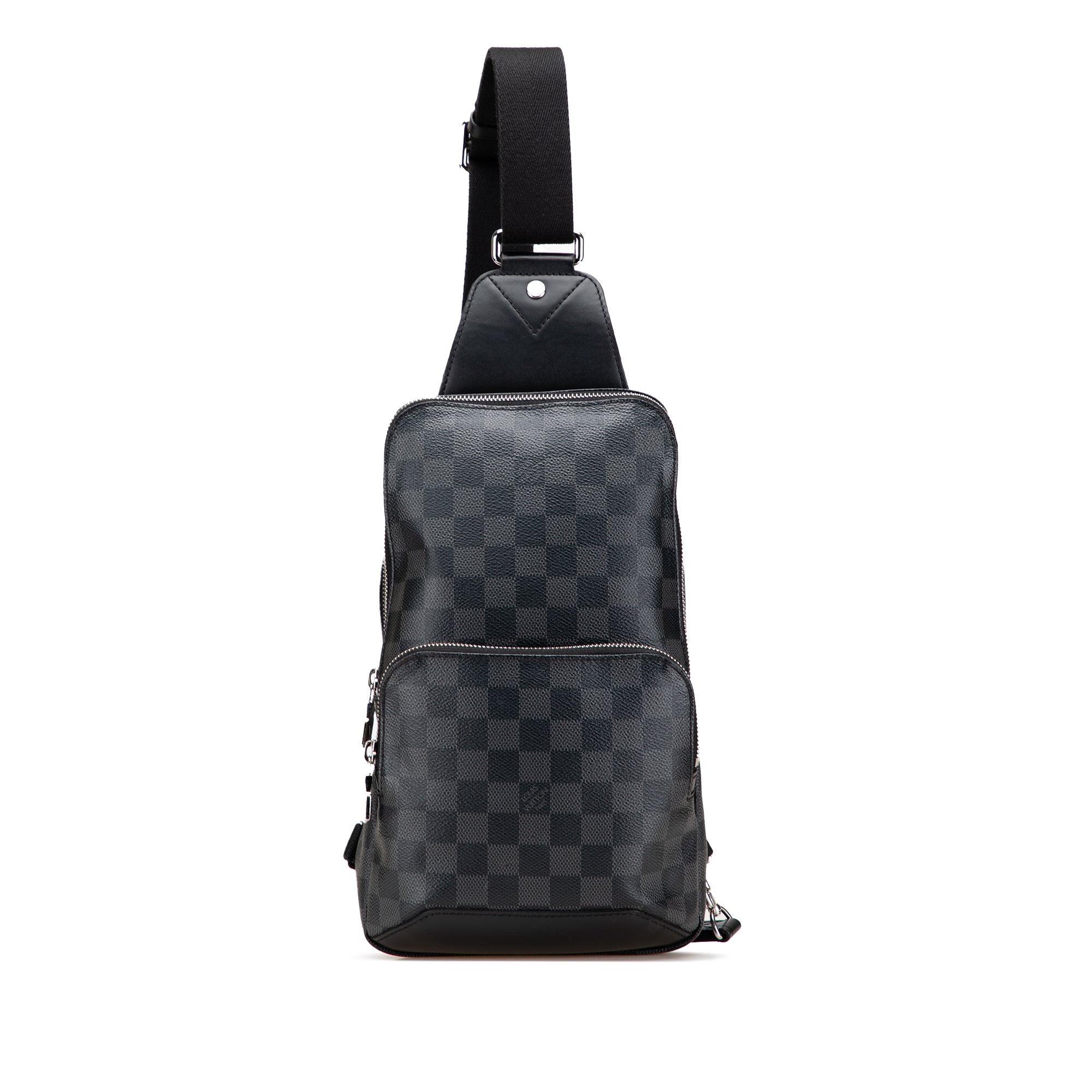 The Avenue Sling bag features a damier graphite canvas body with leather trim, an adjustable flat strap, a top zip closure, an exterior front zip pocket, and an interior slip pocket. Inclusion: Dust bag, box. Retail Price: 2090.00