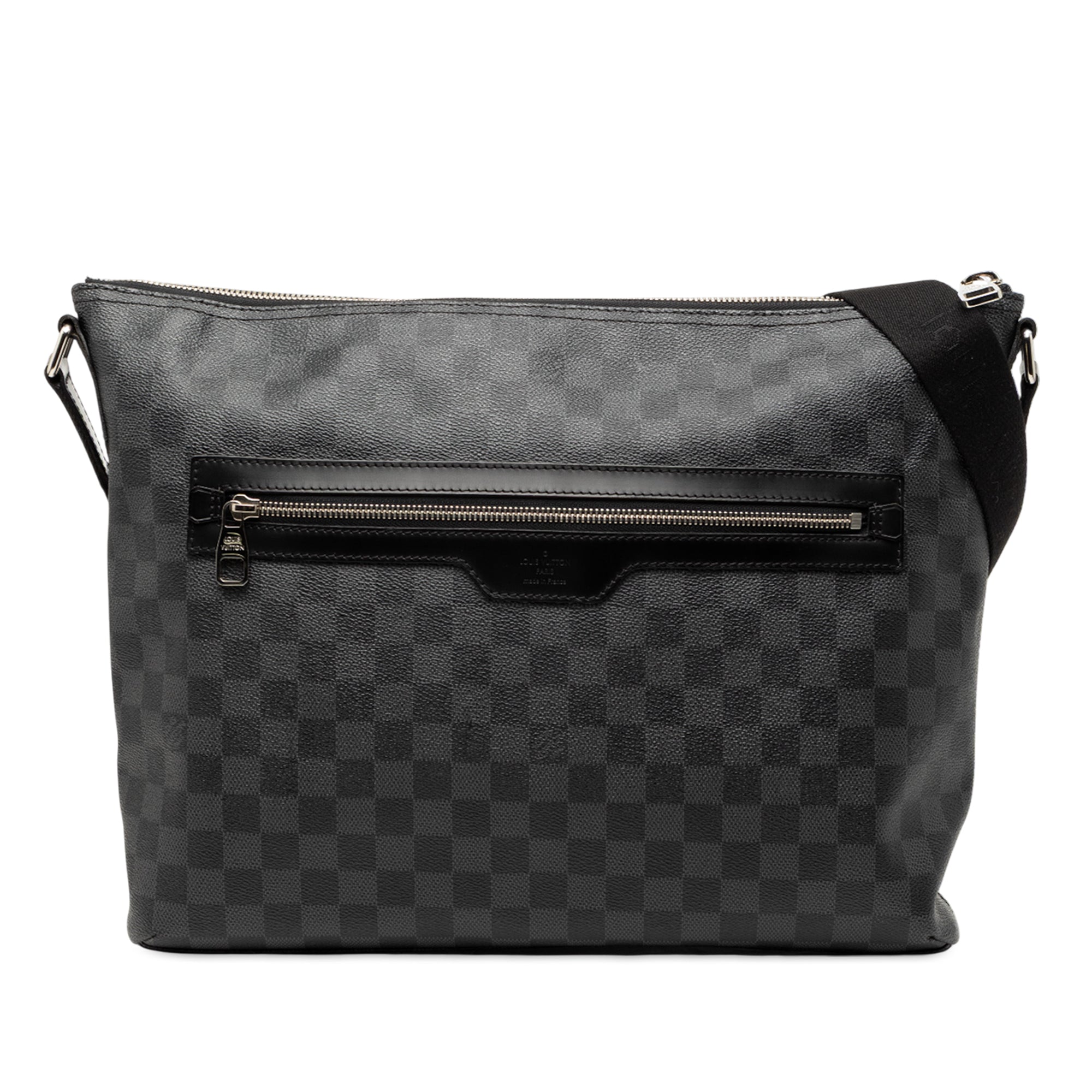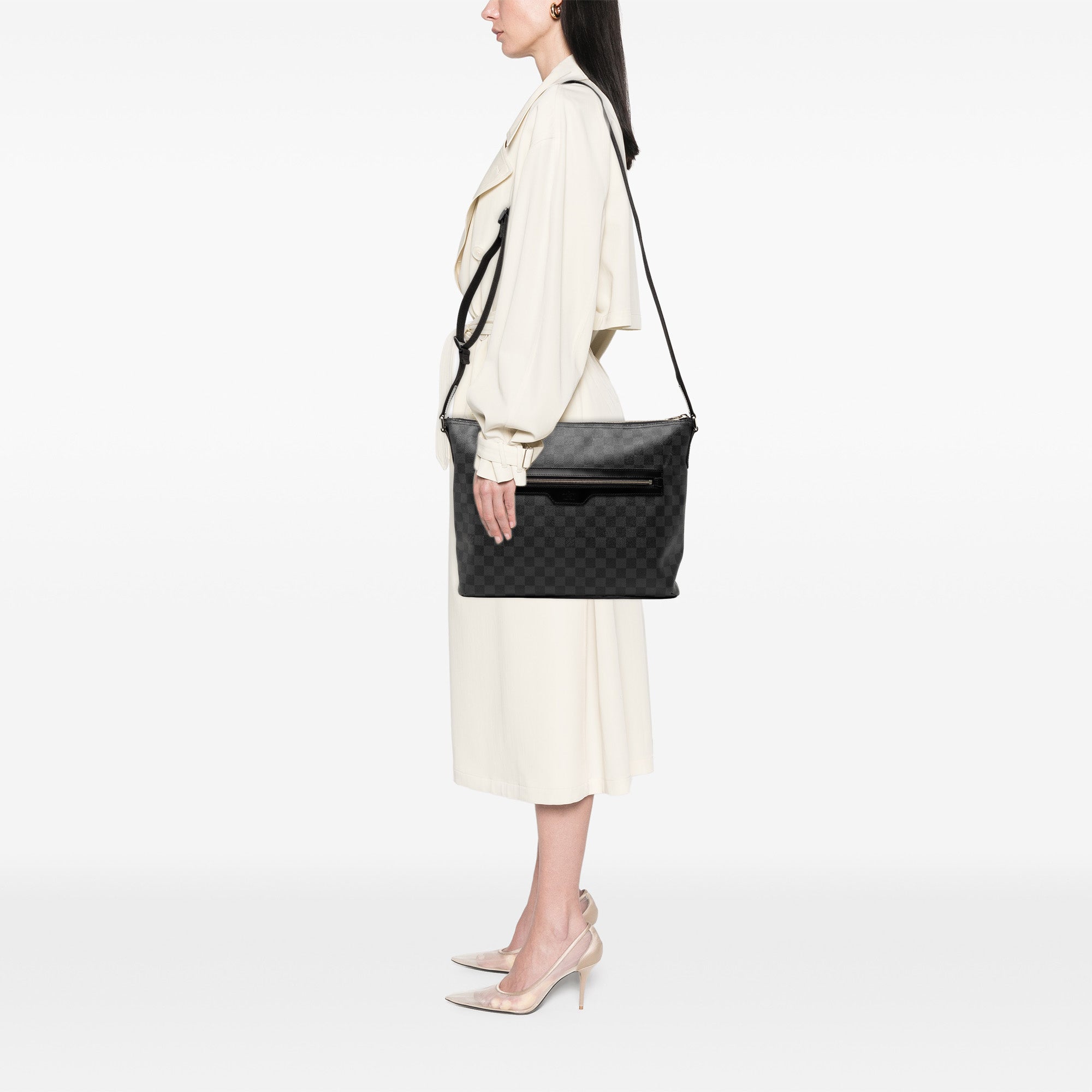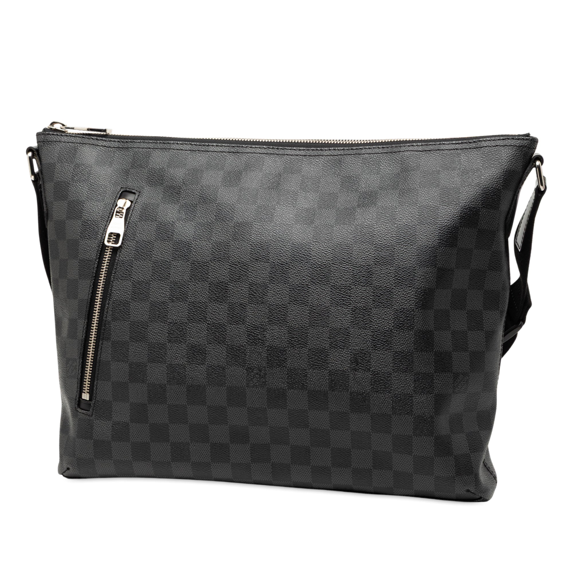 The Mick MM features a damier graphite canvas body, an adjustable flat canvas strap, a top zip closure, a front exterior zip pocket, and interior slip pockets. Retail Price: 1610.00
