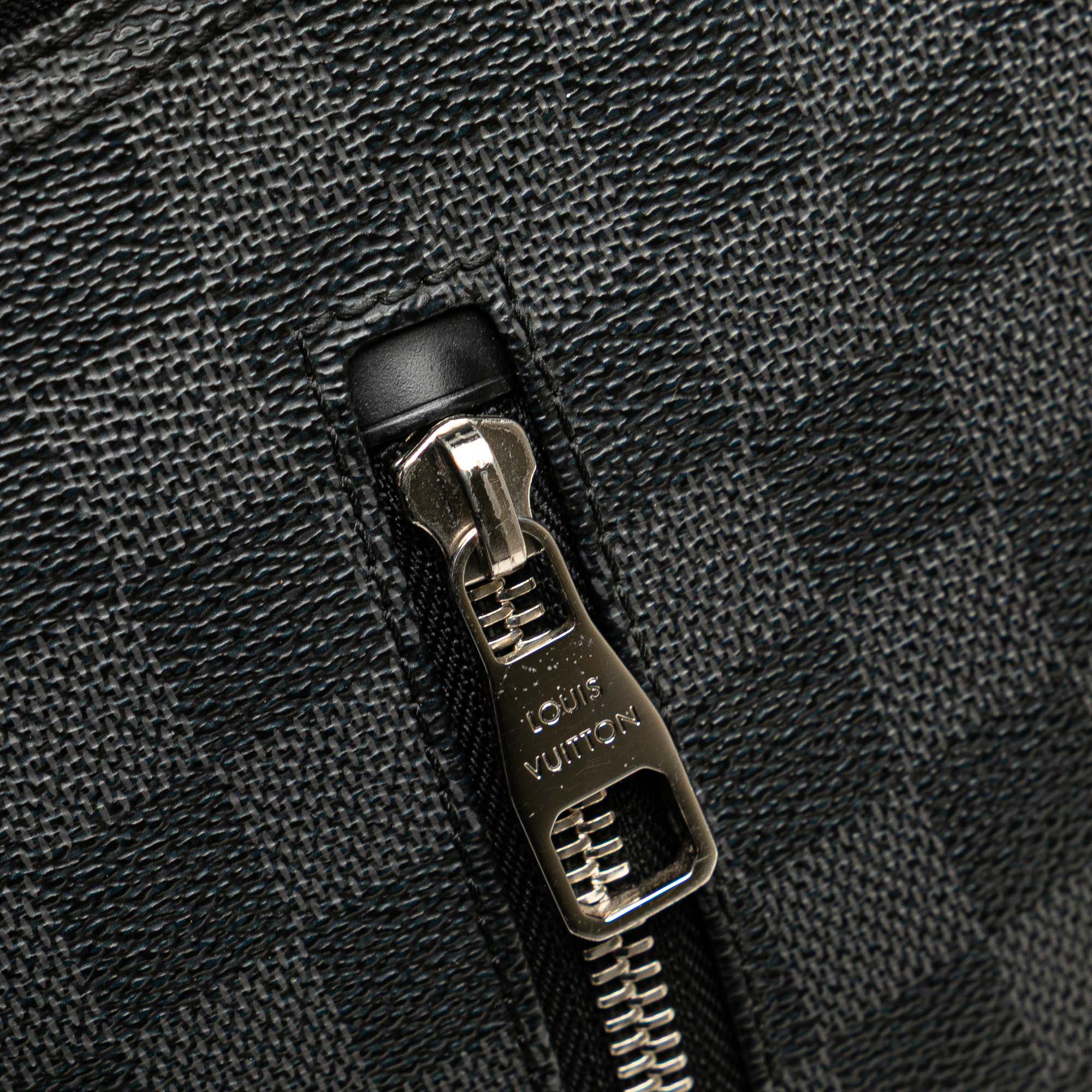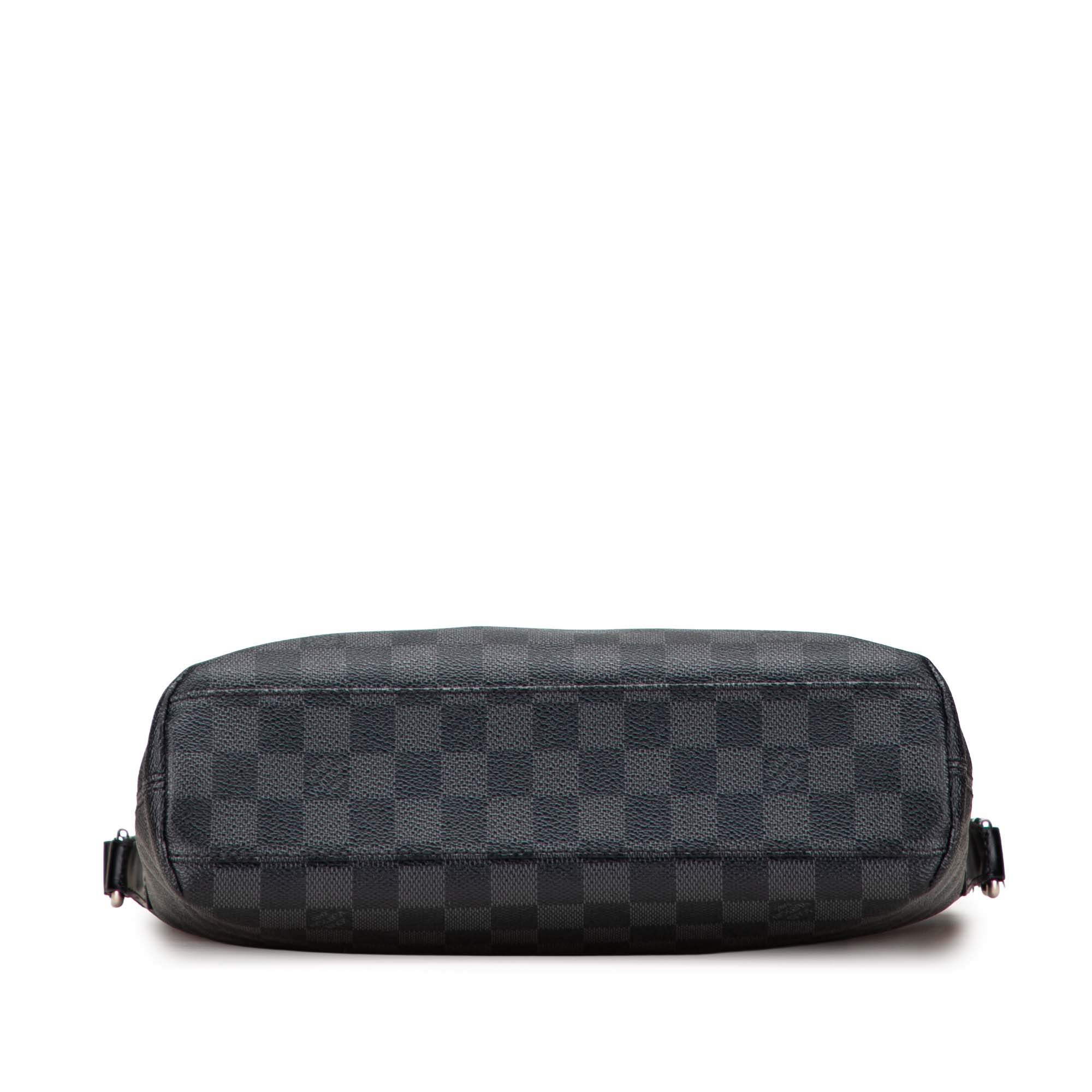 The Mick PM features a damier graphite canvas body, an adjustable flat strap, a top zip closure, an exterior front zip pocket, and interior slip pockets. Retail Price: 1660.00