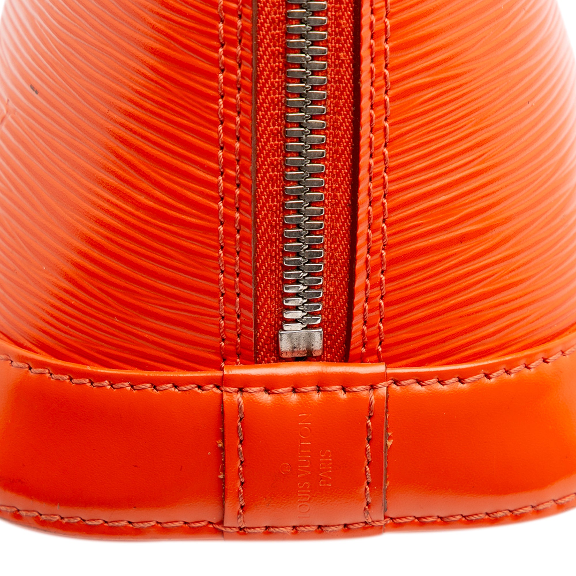 The Alma BB features an epi leather body, rolled leather handles, a detachable flat leather strap, a zip-around closure, and an interior slip pocket. Retail Price: 2150.00