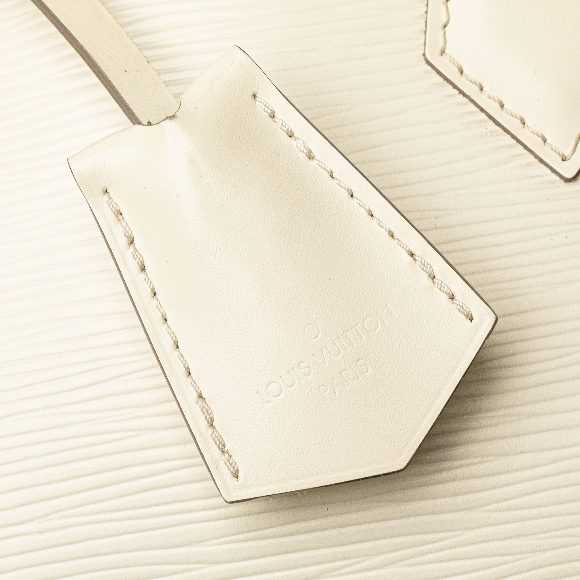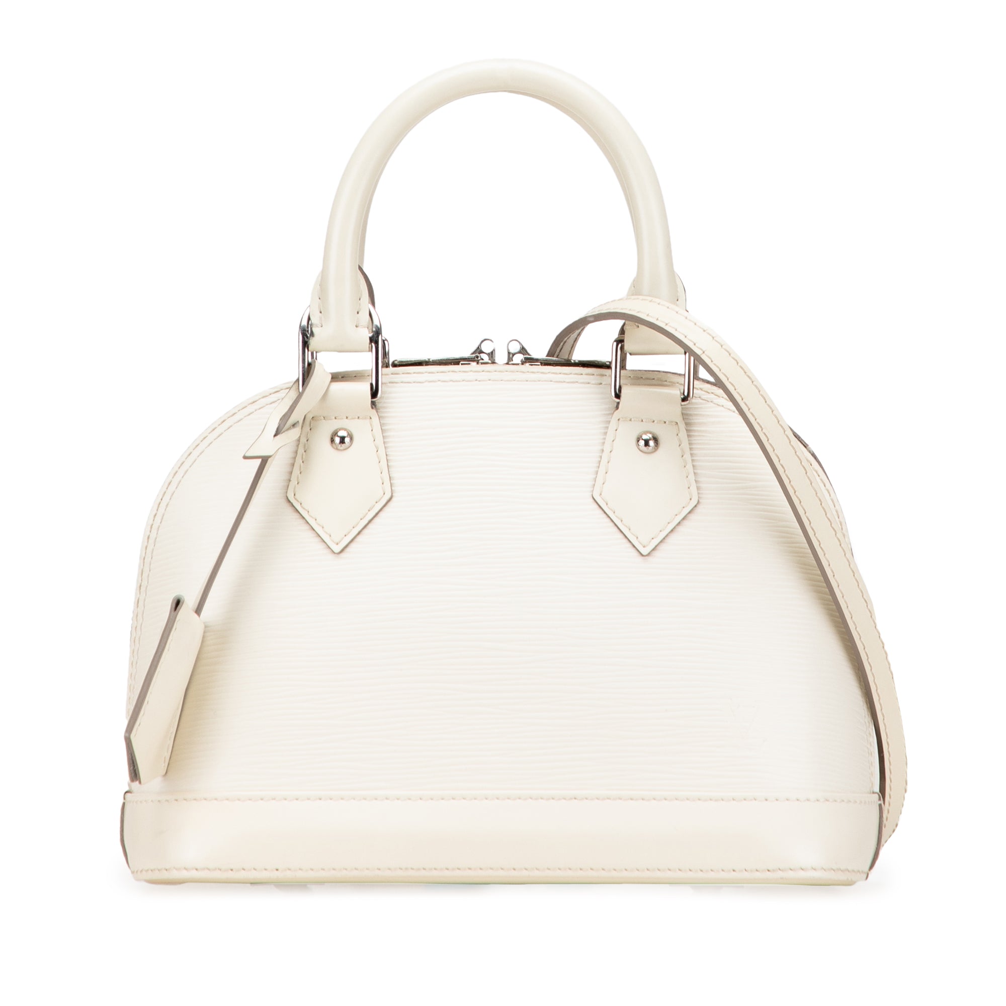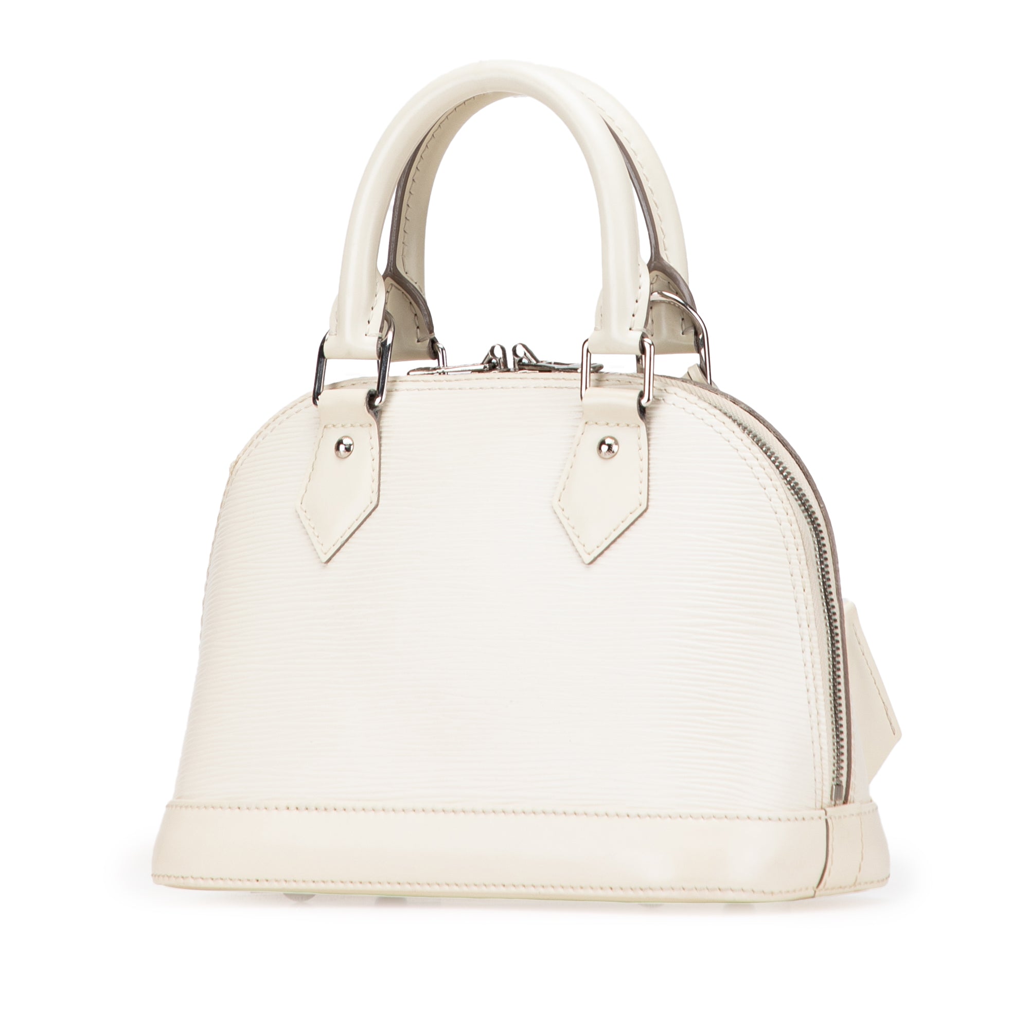 The Alma BB features an epi leather body, rolled leather handles, a detachable strap, a zip-around closure, and an interior slip pocket. Retail Price: 2150.00
