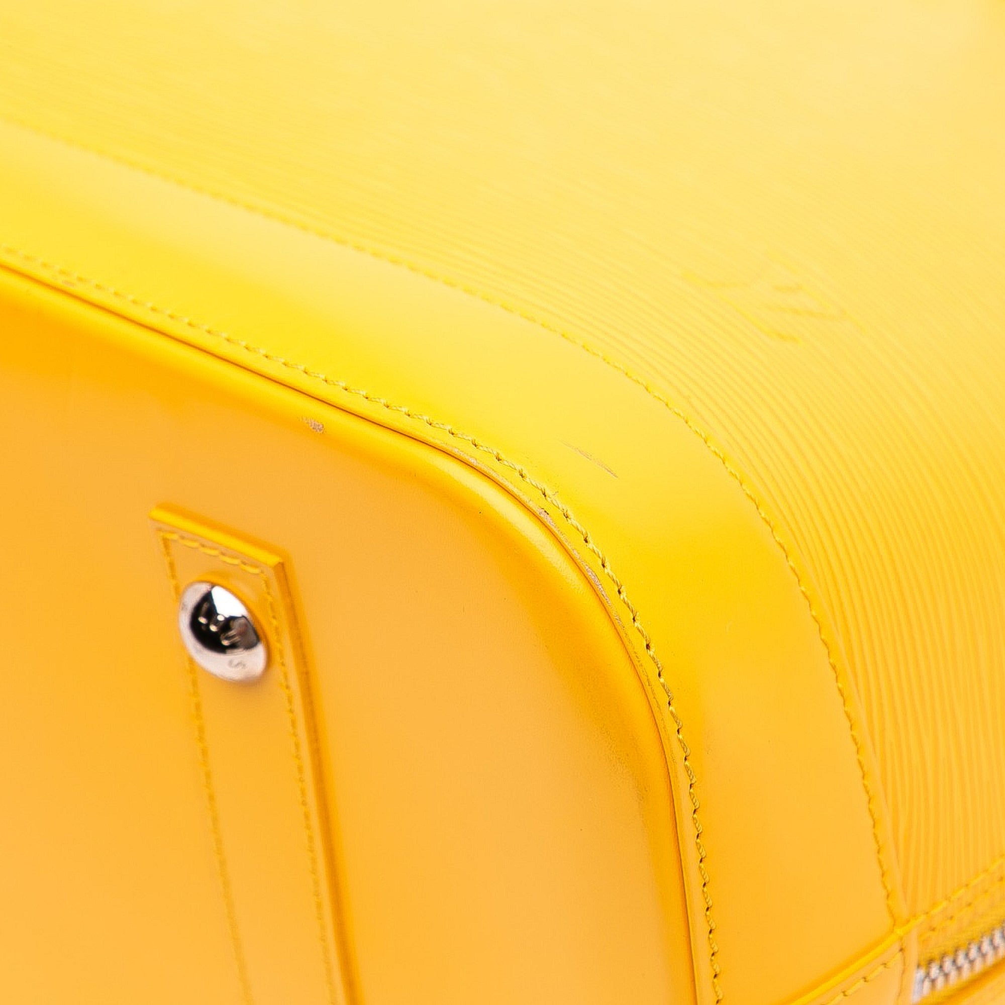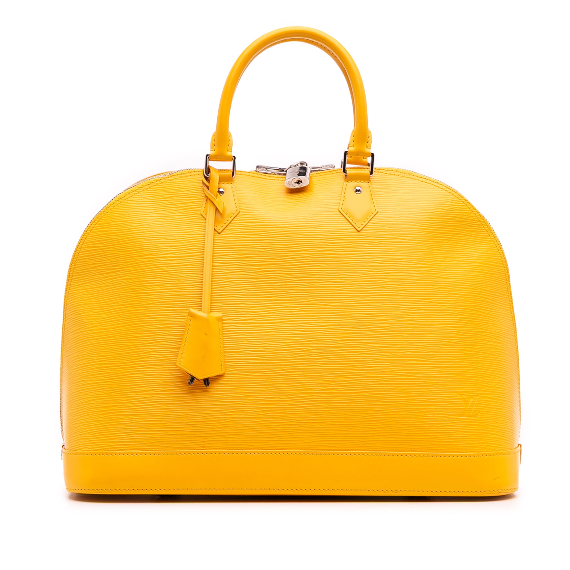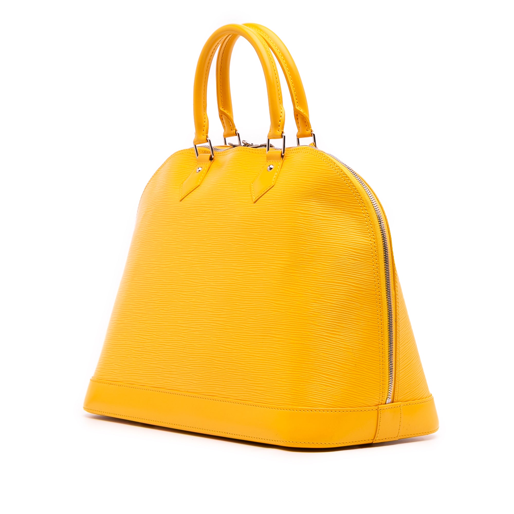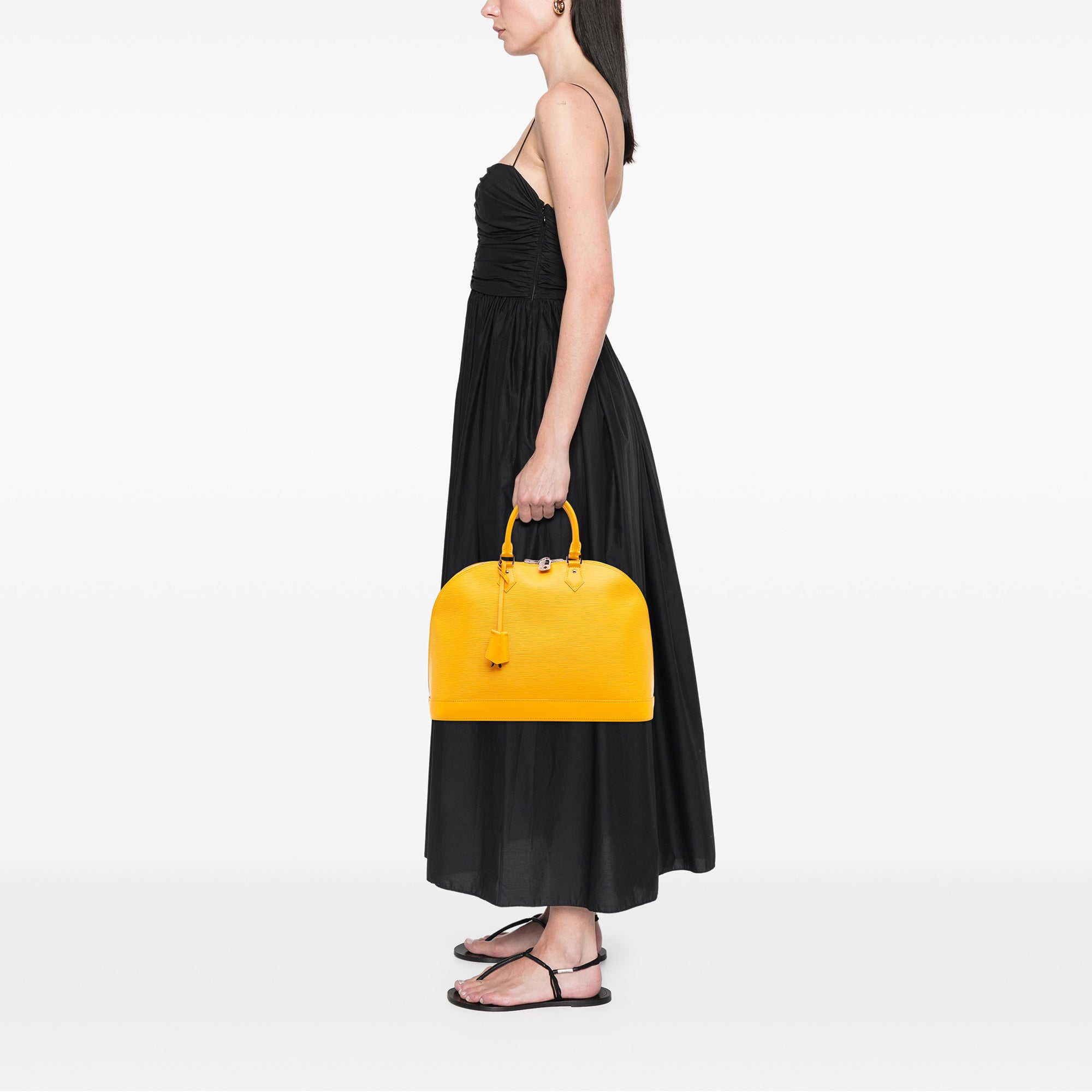 The Alma GM features an epi leather body, rolled leather handles, a top zip closure, and interior slip pockets. Retail Price: 2810.00