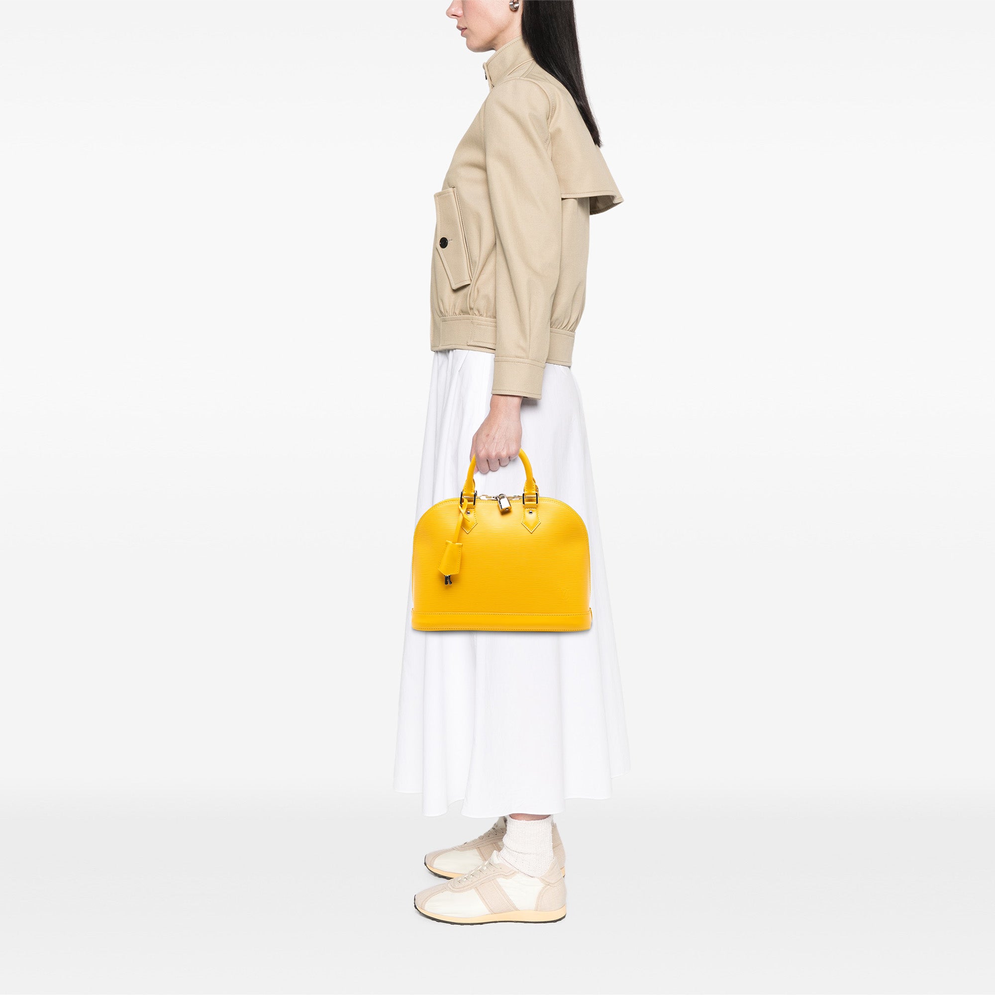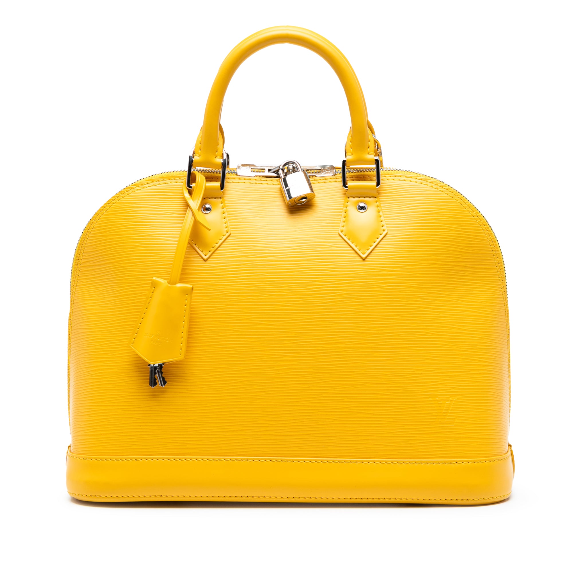 The Alma PM features an epi leather body, rolled leather handles, a top zip closure, and an interior slip pocket. Retail Price: 1905.00