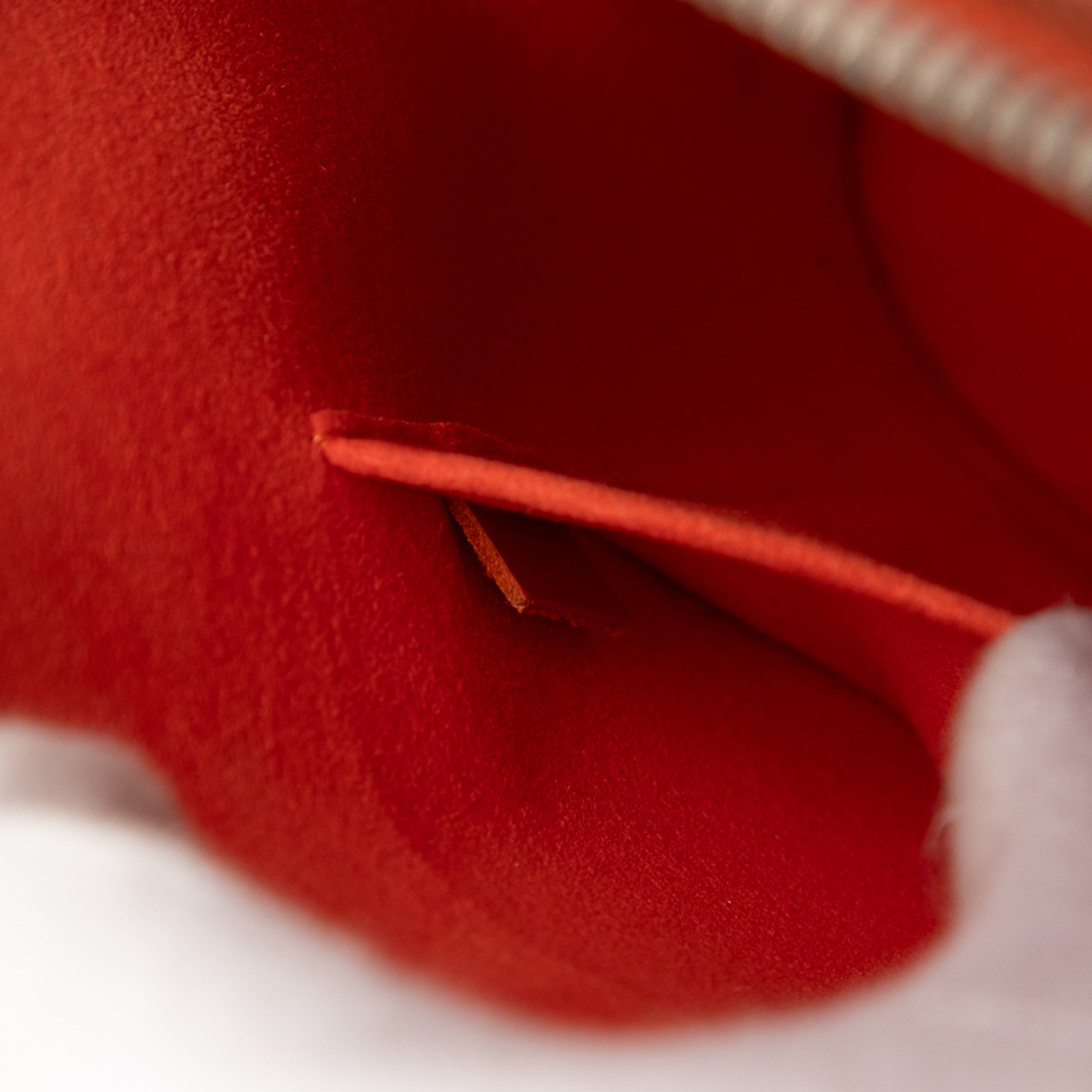 The Alma PM features an epi leather body, rolled handles, a top zip closure, and an interior slip pocket. Retail Price: 2650.00