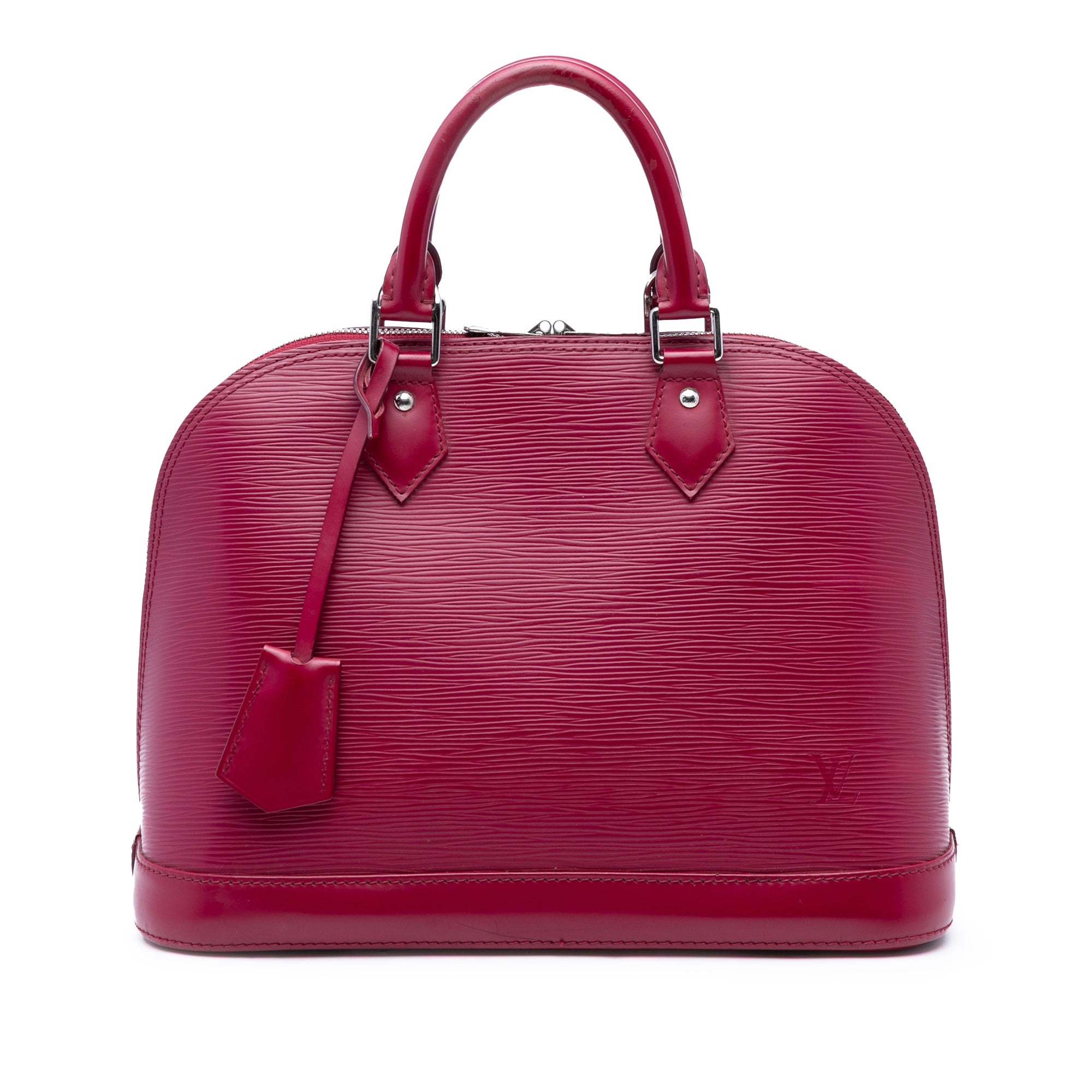 The Alma PM features an epi leather body, rolled handles, a top zip closure, and interior slip pockets. Retail Price: 2650.00