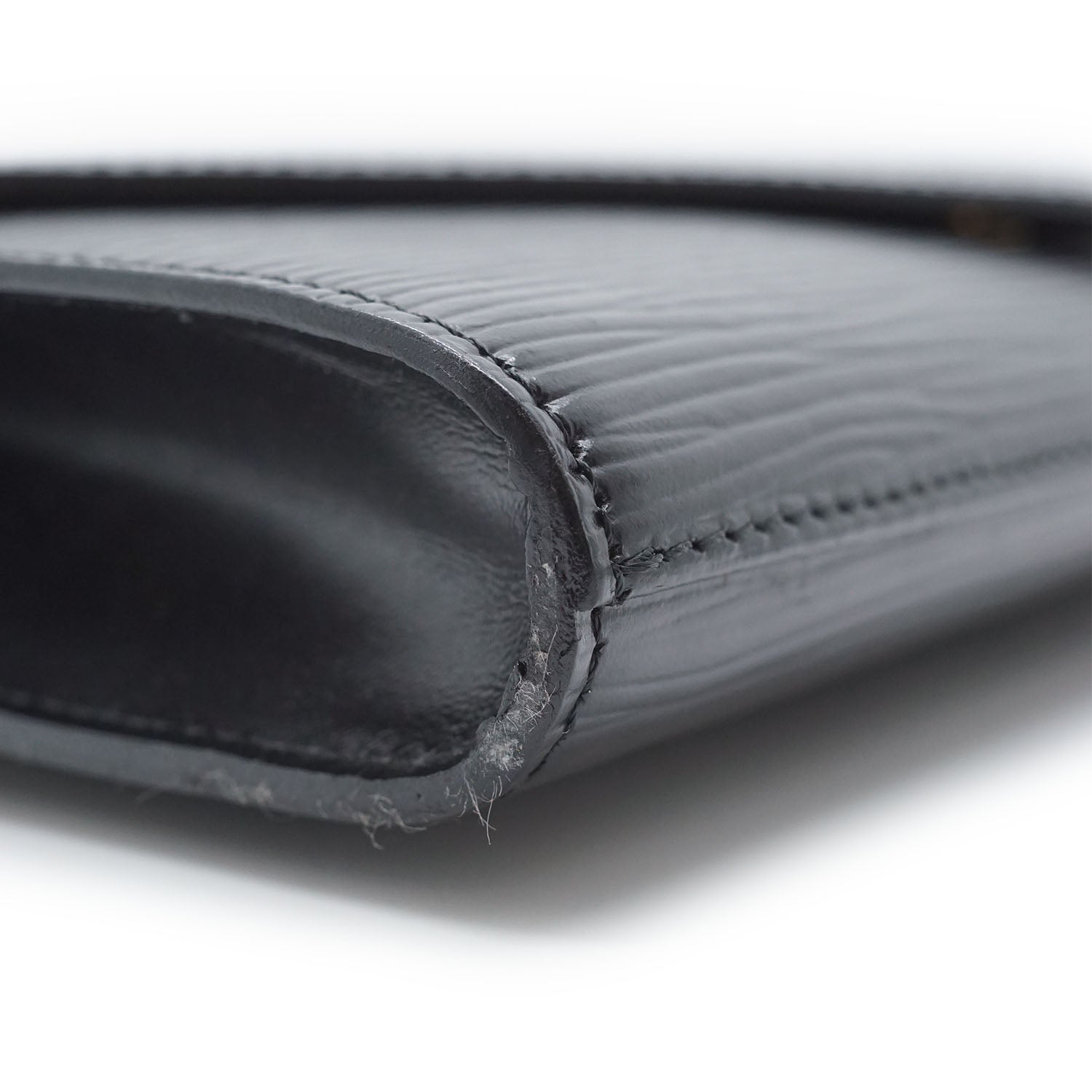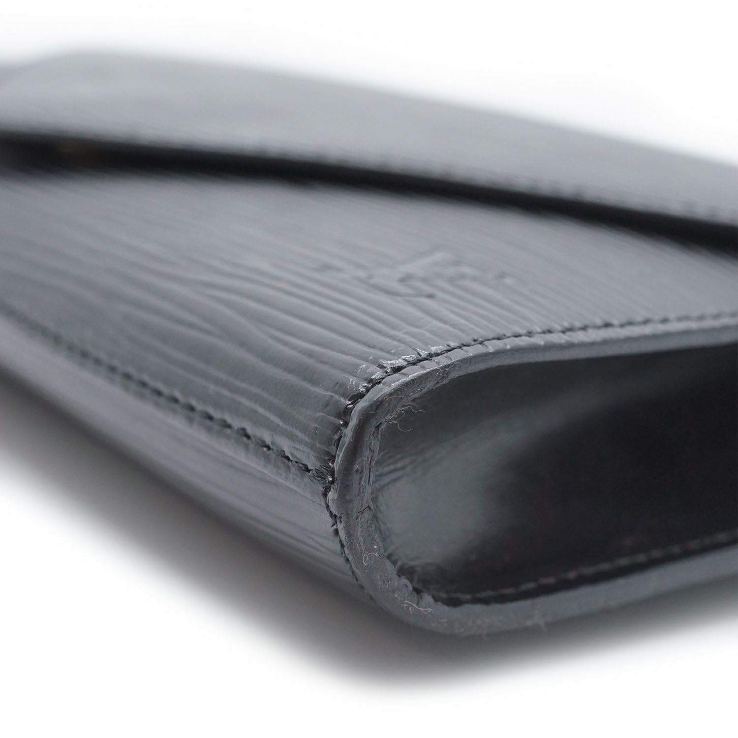 Epi Art Deco Clutch Black Epi leatherDepth: 3cmHeight: 13cmWidth: 22.5cmWidth at Top: 19cmCOutside Rank: BInside Rank: BCStain: Some white stains throughout the insideScratch: Visible scratches (peeling) throughout the inside/inside pocket/back pocketPeeling: Some peeling/powdering on the inside pocket/back pocket, some leather cracking along the front flap edgesWorn: Visible signs of wear on the inside, some signs of wear on the outsideOdor: No odor presentInclude: Dust bagSerial code: .V.I.0930SKU: 7060139