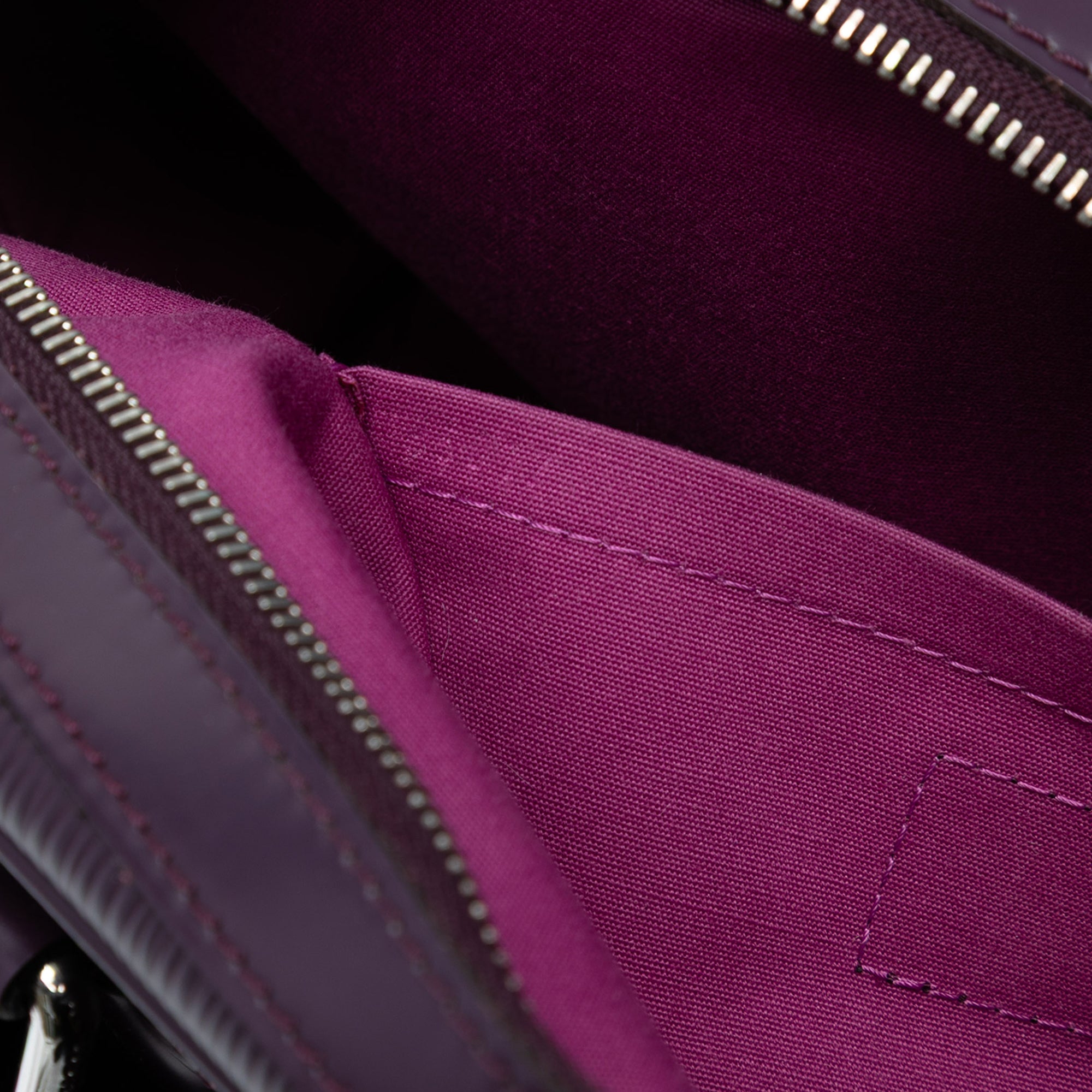 The Bowling Montaigne GM features an epi leather body, rolled leather handles, a top zip closure with flat strap with push lock closure, an exterior back slip pocket, and interior slip pockets. Retail Price: 2160.00