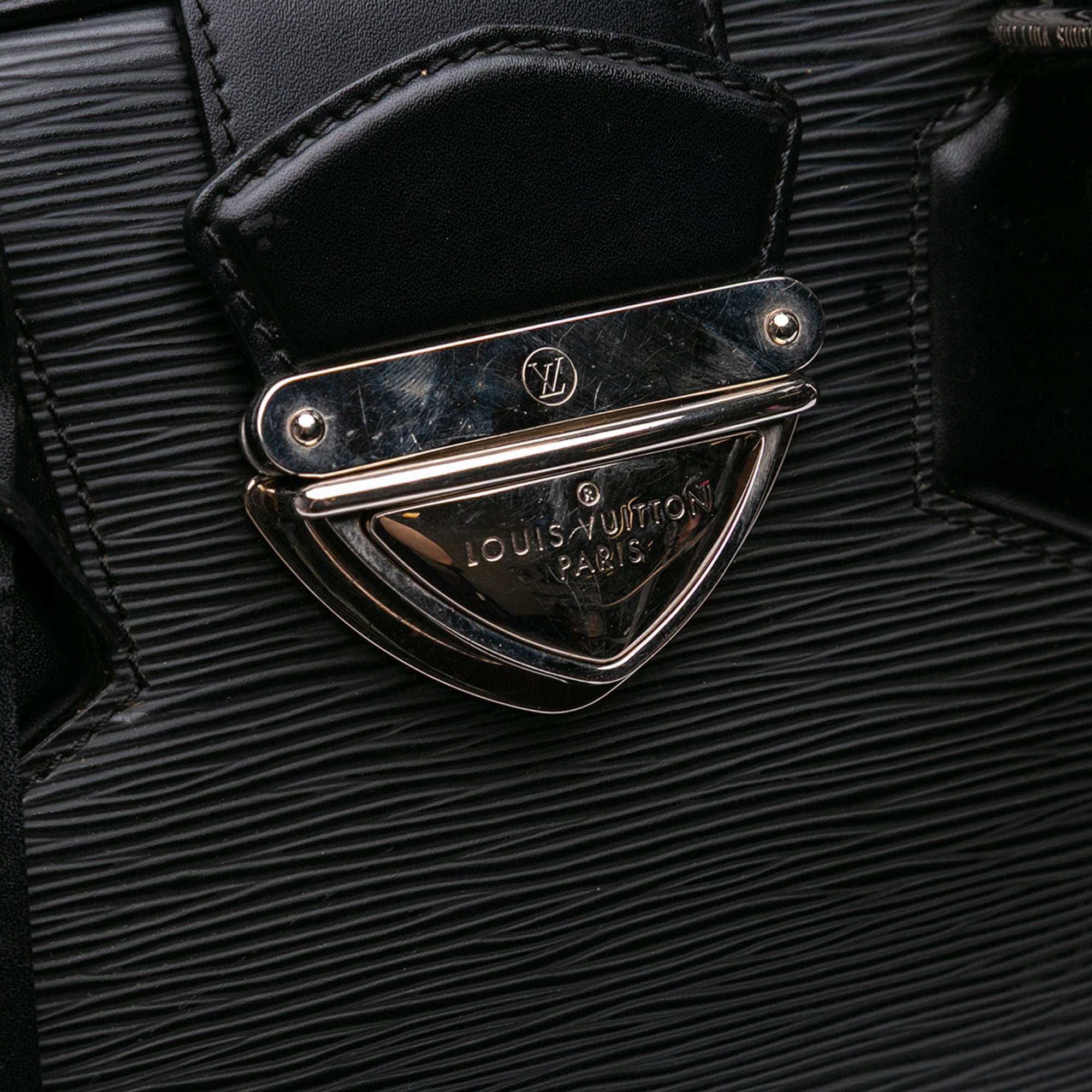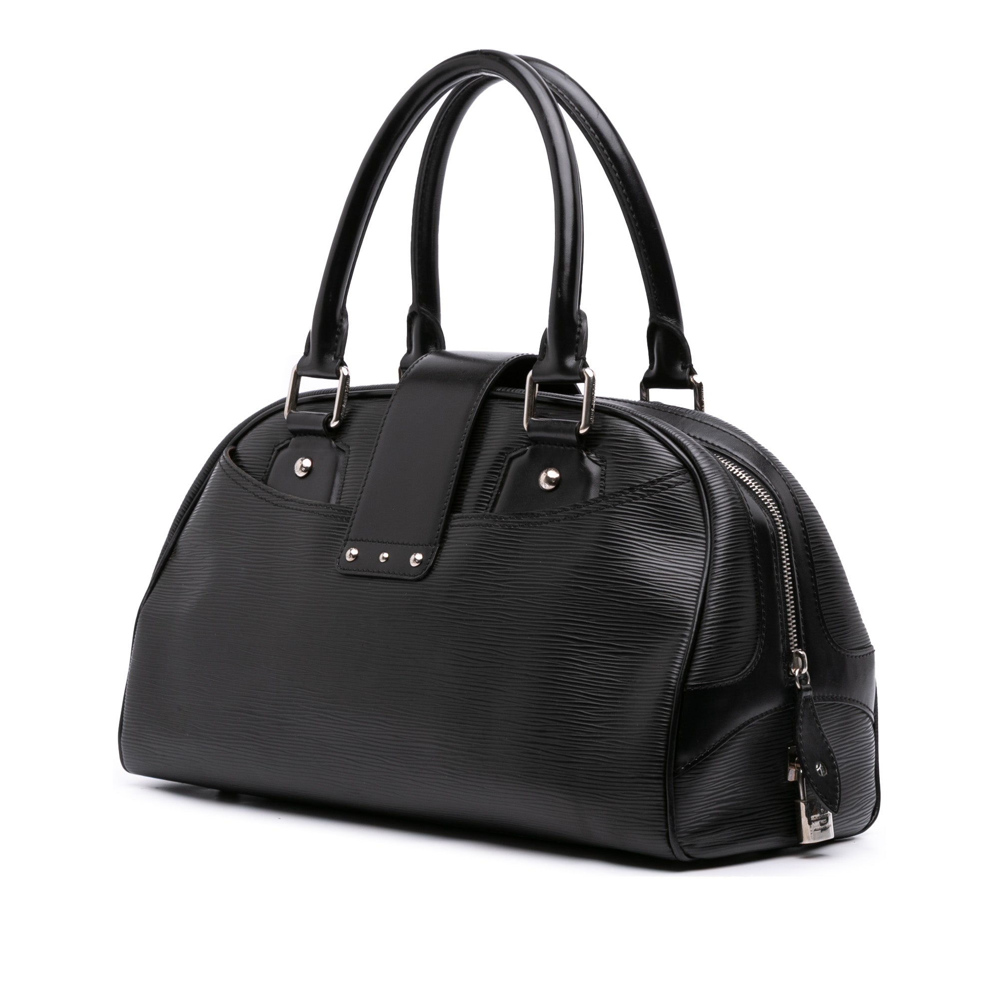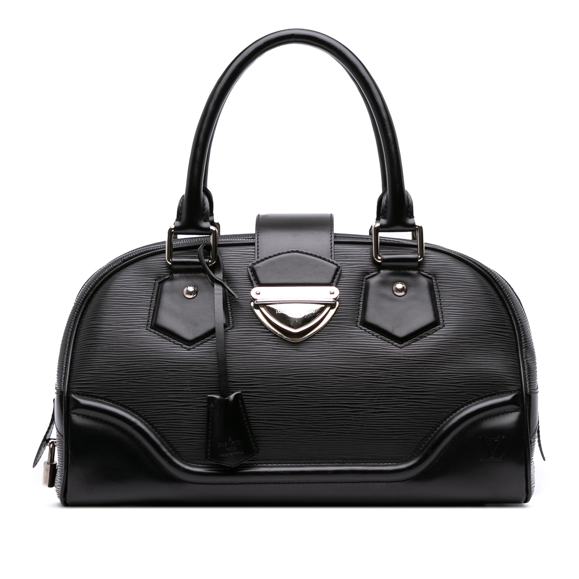 The Bowling Montaigne GM features an epi leather body, rolled leather handles, a top flat strap with push lock closure, a zip closure, an exterior back open pocket, and interior slip pockets. Retail Price: 1270.00