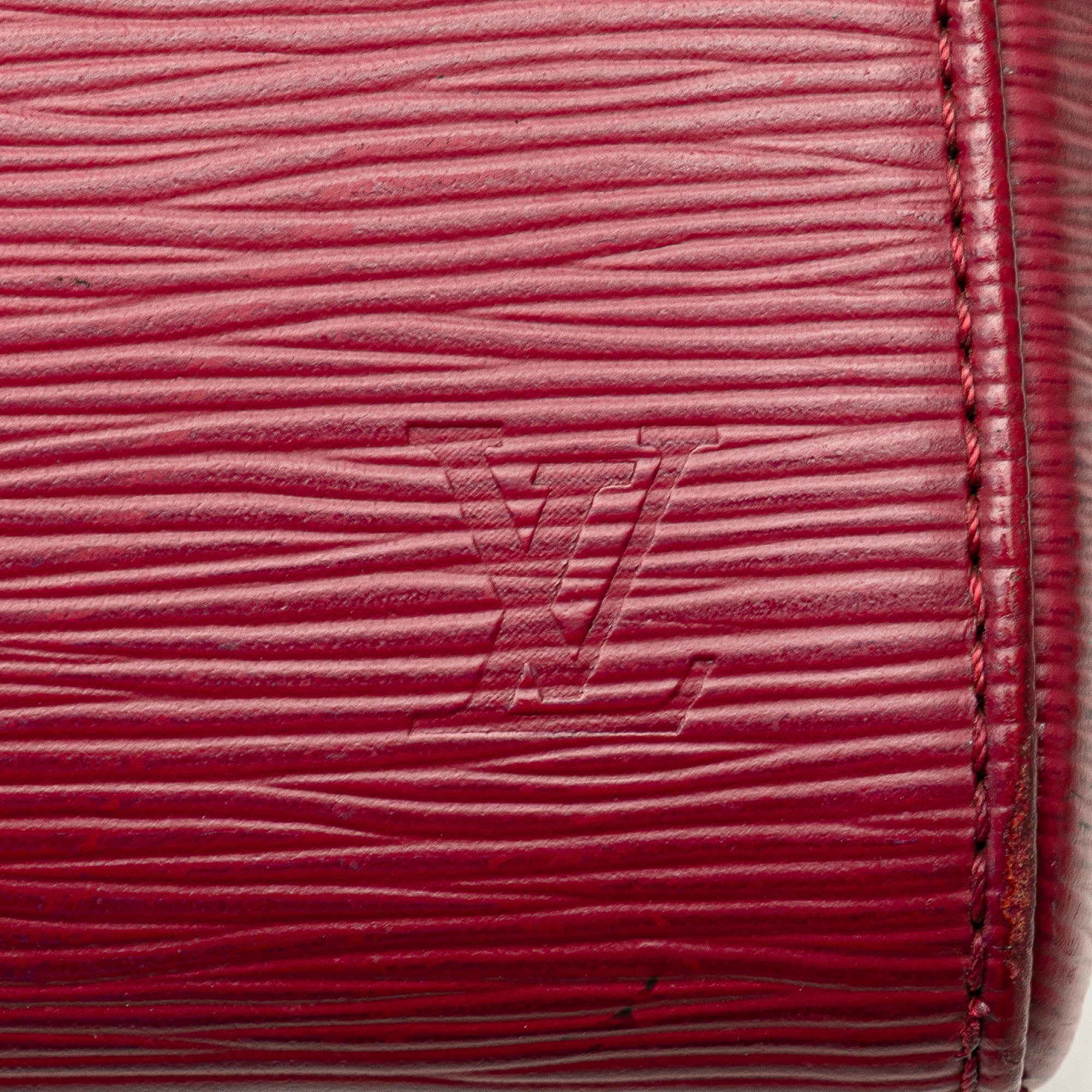 The Brea MM features an epi leather body, flat leather handles, a detachable shoulder strap, top zip closure, and interior zip and slip pockets. Retail Price: 2900.00