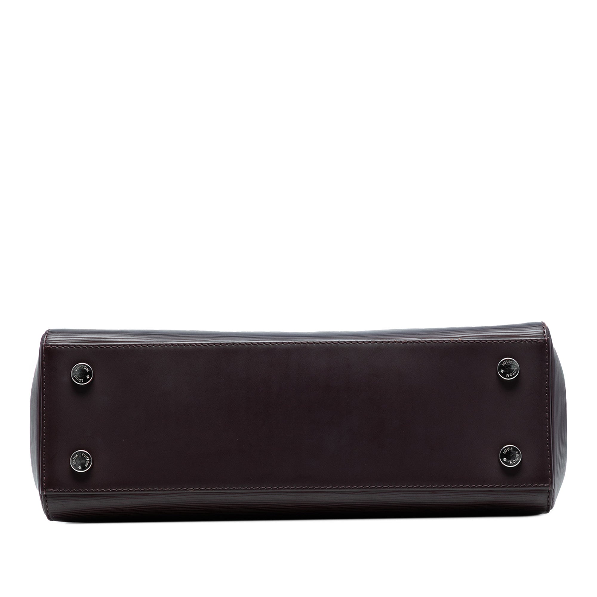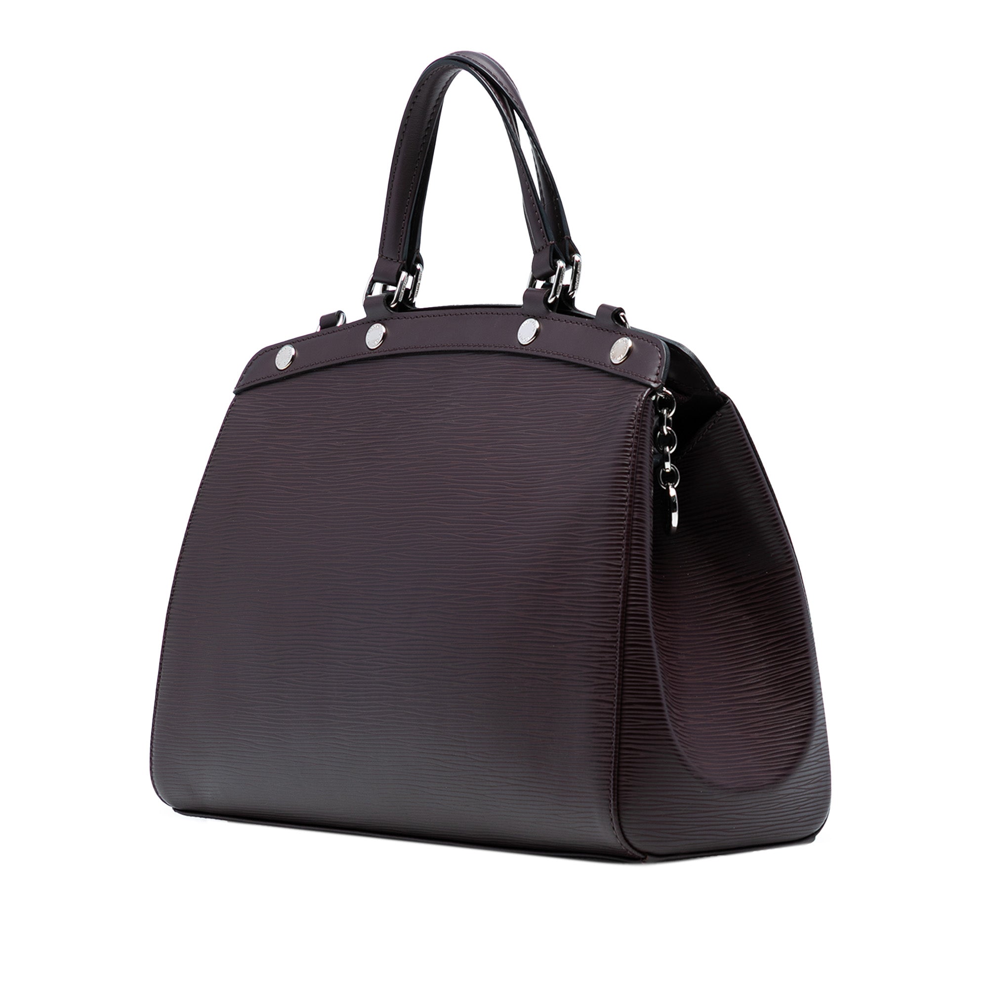 The Brea MM features an epi leather body, flat handles, a detachable flat leather strap, a top zip closure, and interior zip and slip pockets. Retail Price: 2500.00