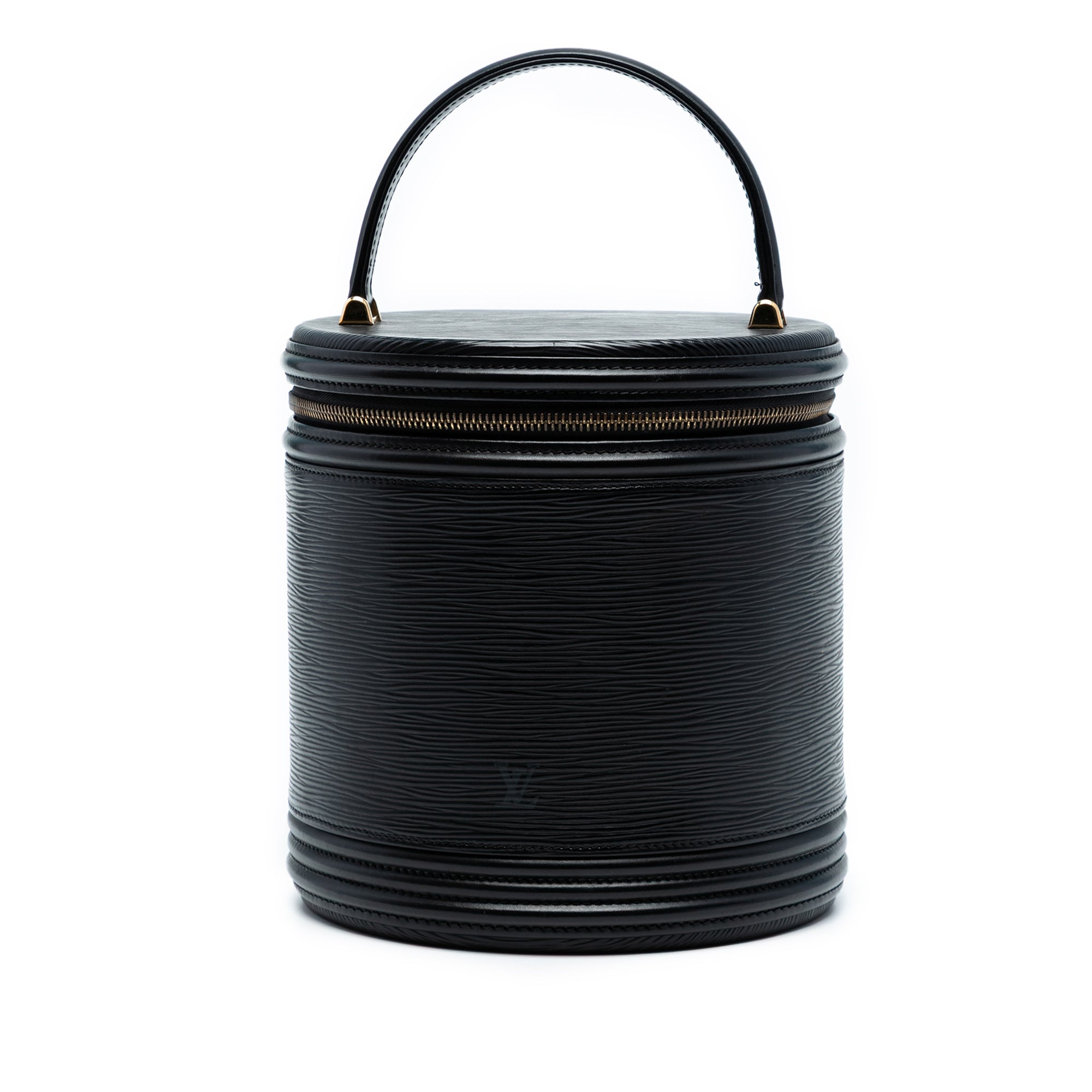 The Cannes Vanity Case features an epi leather body, a flat leather top handle, a top zip around closure, and an interior slip pocket. Retail Price: 745.00