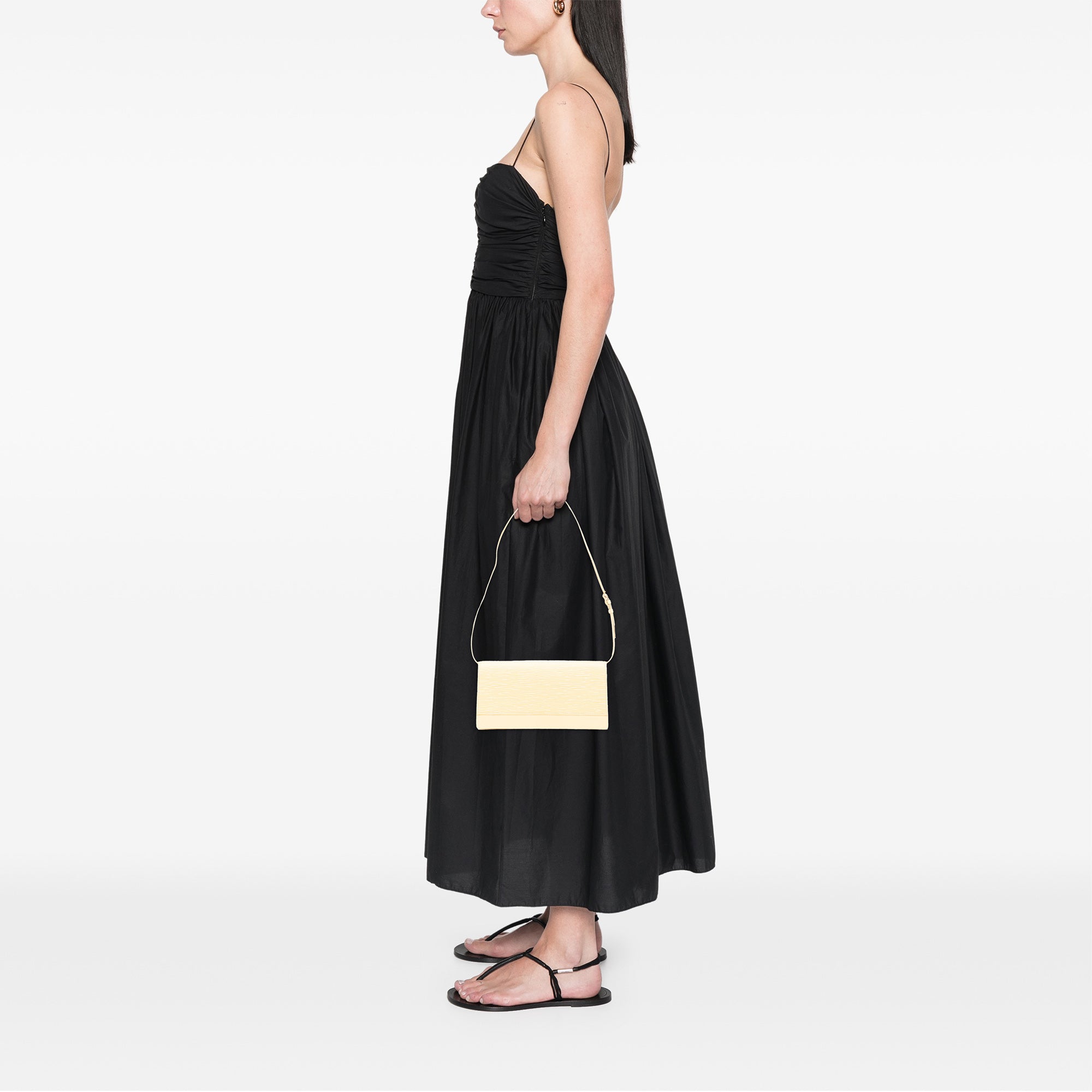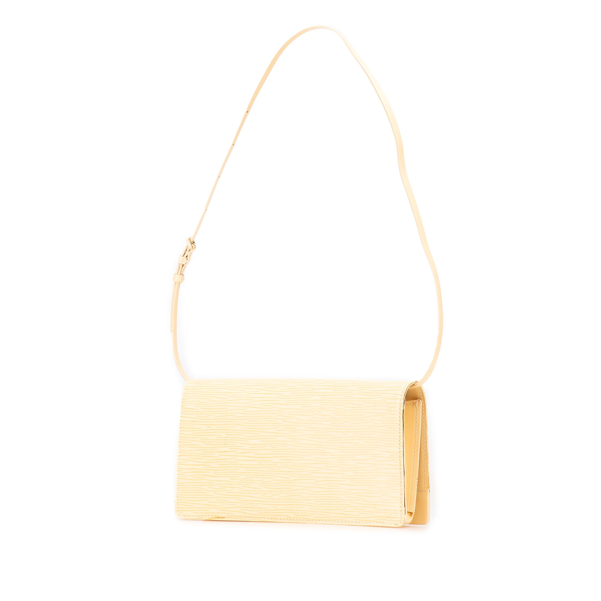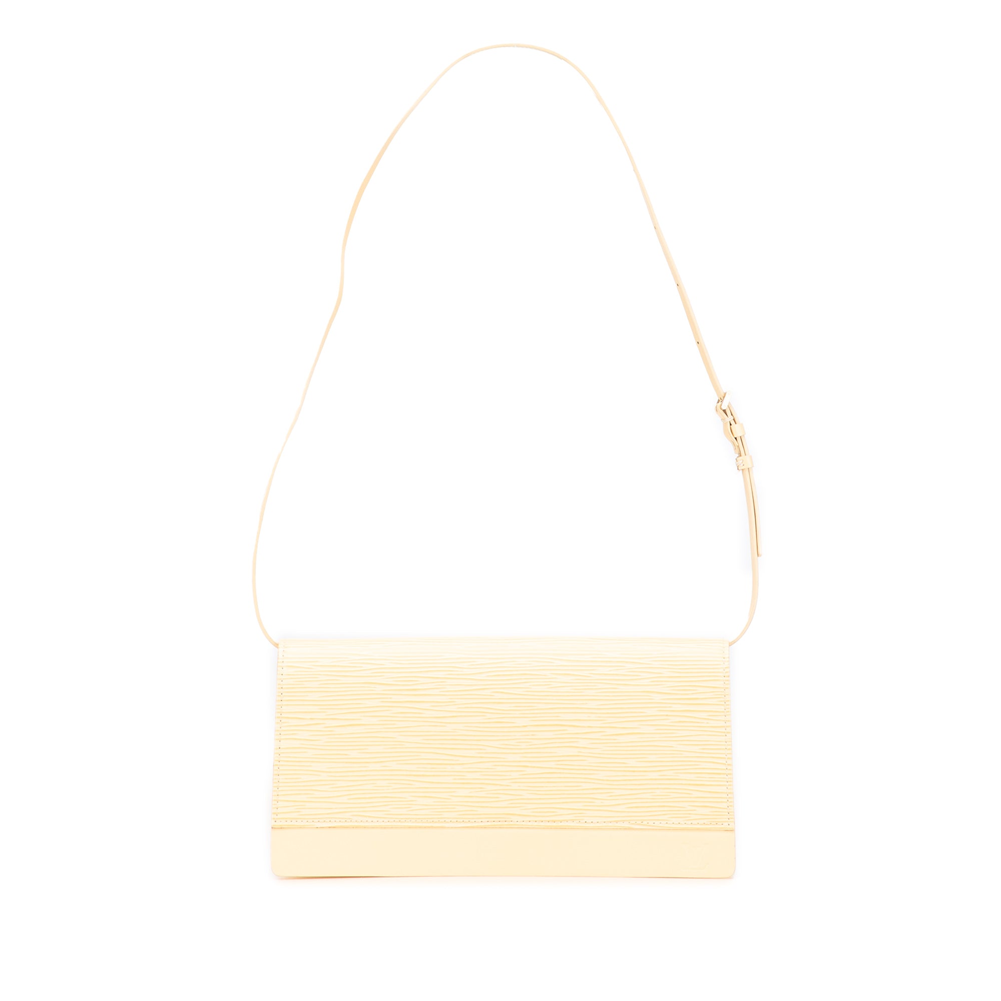 The Honfleur features an epi leather body, an adjustable flat leather strap, a top flap with snap closure, and an interior slip pocket. Inclusion: Dust bag. Retail Price: 685.00