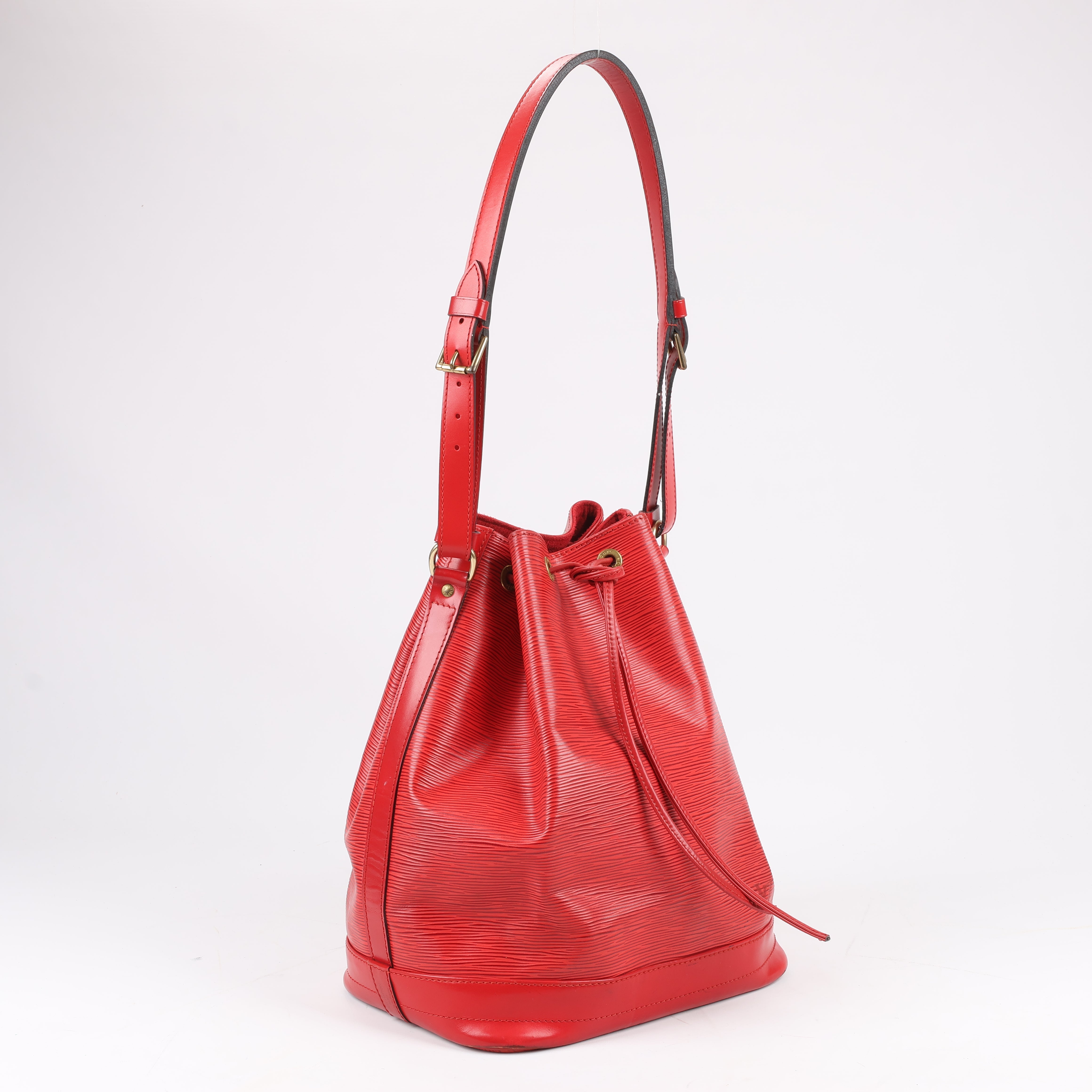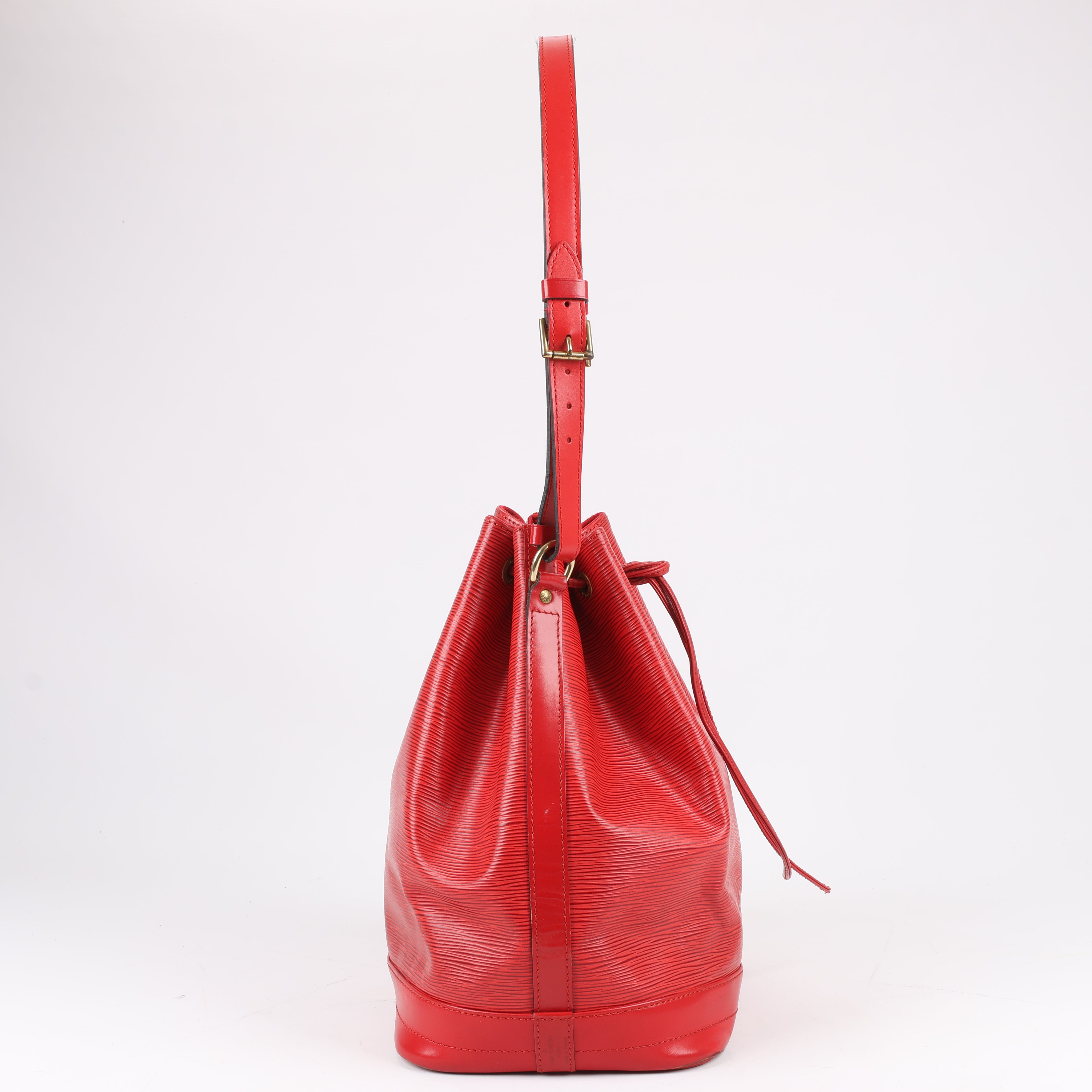 Brand: Louis Vuitton Model: NoeSize: - Width: 34 cmHeight: 26.5 cmExterior Condition: ExcellentInterior Condition: ExcellentCondition Details: The exterior leather is clean and beautiful with minor rubbings at the bottom corners. The leather handle is clean and firm. The hardware is still bright and crisp, but has some hairline scratches. The interior is clean and in great condition. Date code: AR0994Colour: RedInterior Colour: RedHardware Colour: GoldMaterial: LeatherComes With: -