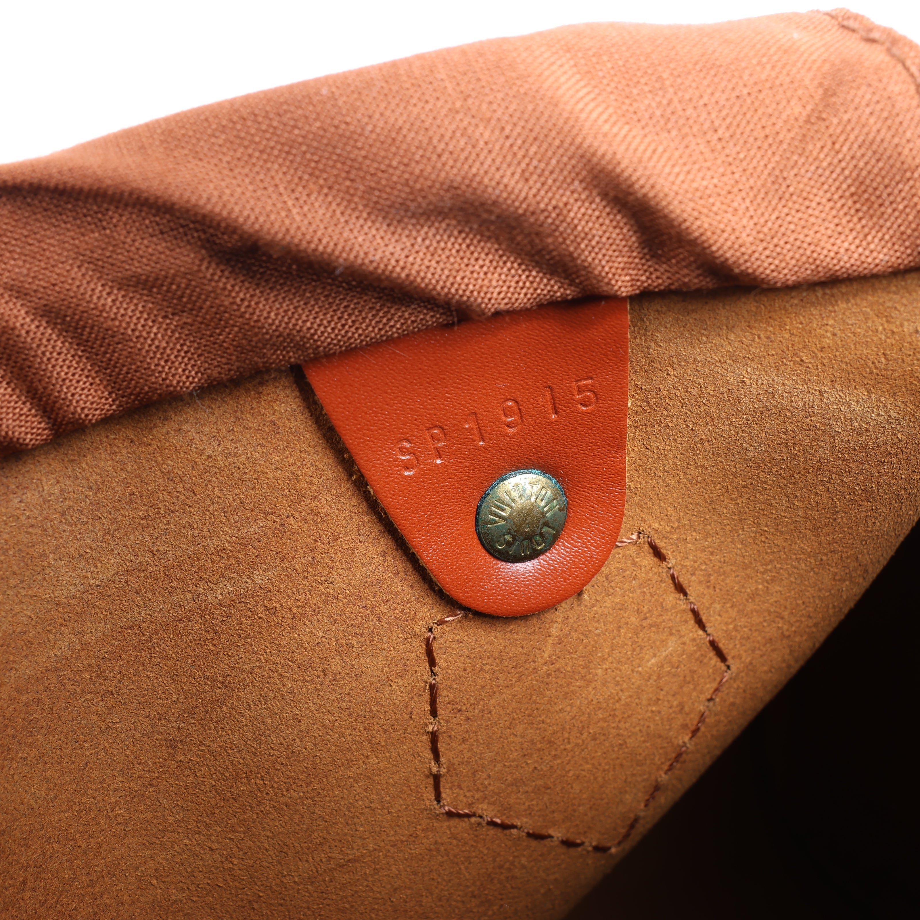 Brand: Louis VuittonModel: SpeedySize: 25Width: 27 cmHeight: 19 cmExterior Condition: Excellent Interior Condition: Excellent Condition Details: The exterior is beautiful in excellent condition with rubbings at the corners. The handles are clean, firm. The hardware has darkened. The interior is in very good condition with some rubbings. Date code: SP1915.Colour: BrownInterior Colour: CamelHardware Colour: GoldMaterial: LeatherComes With: Padlock with keys