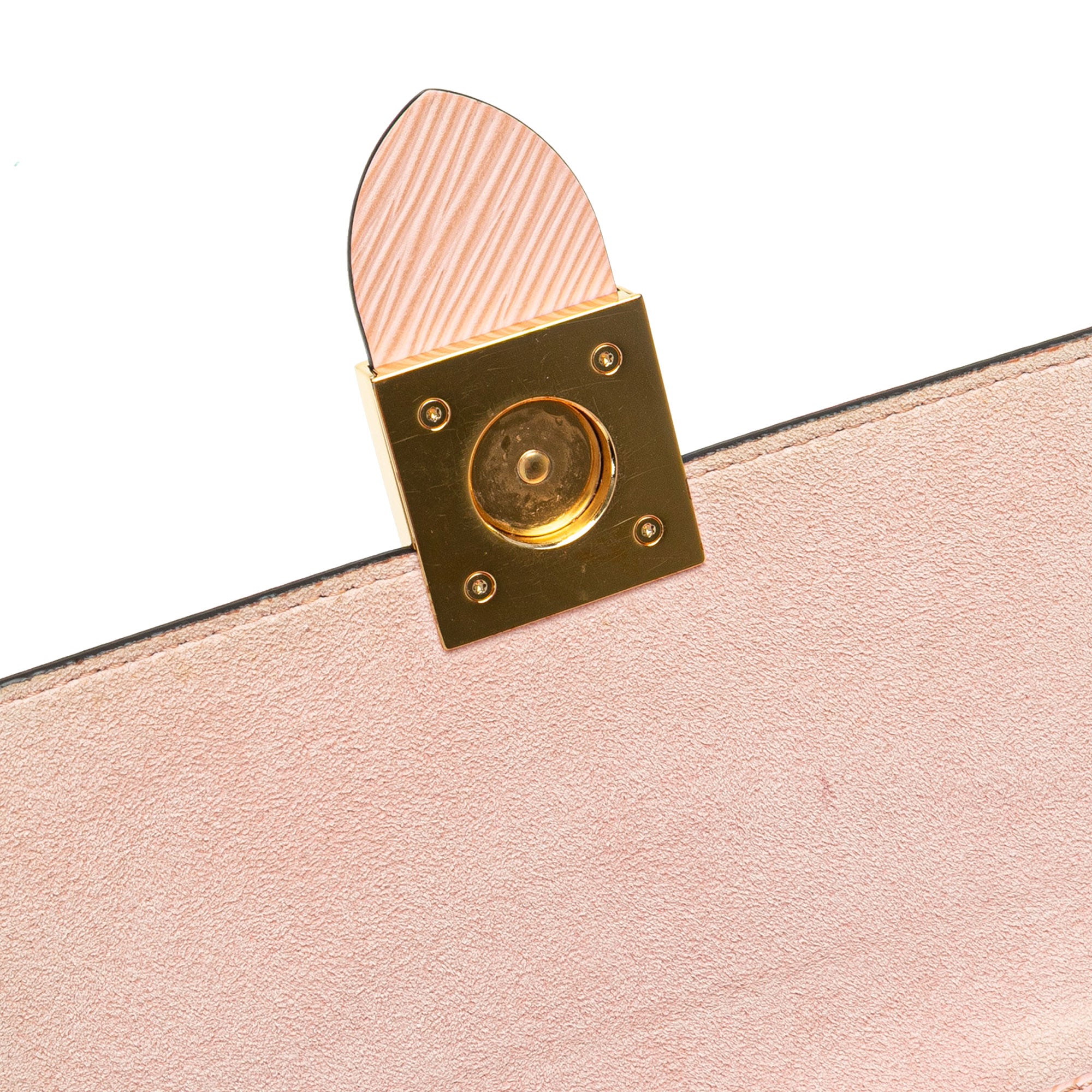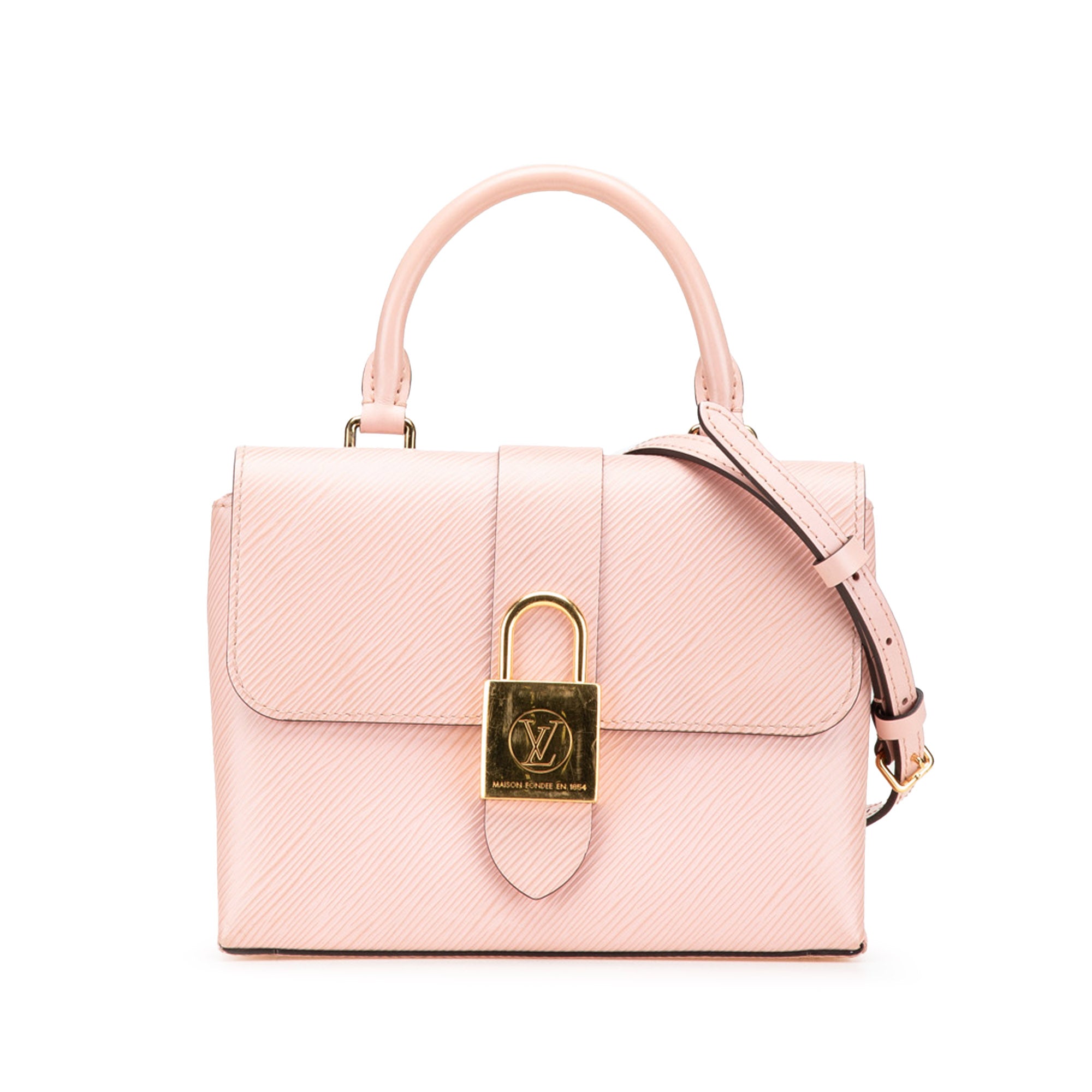 The Locky BB features an epi leather body, a rolled leather top handle, a detachable flat leather strap, a front flap with a padlock closure, and an interior slip pocket. Retail Price: 2180.00