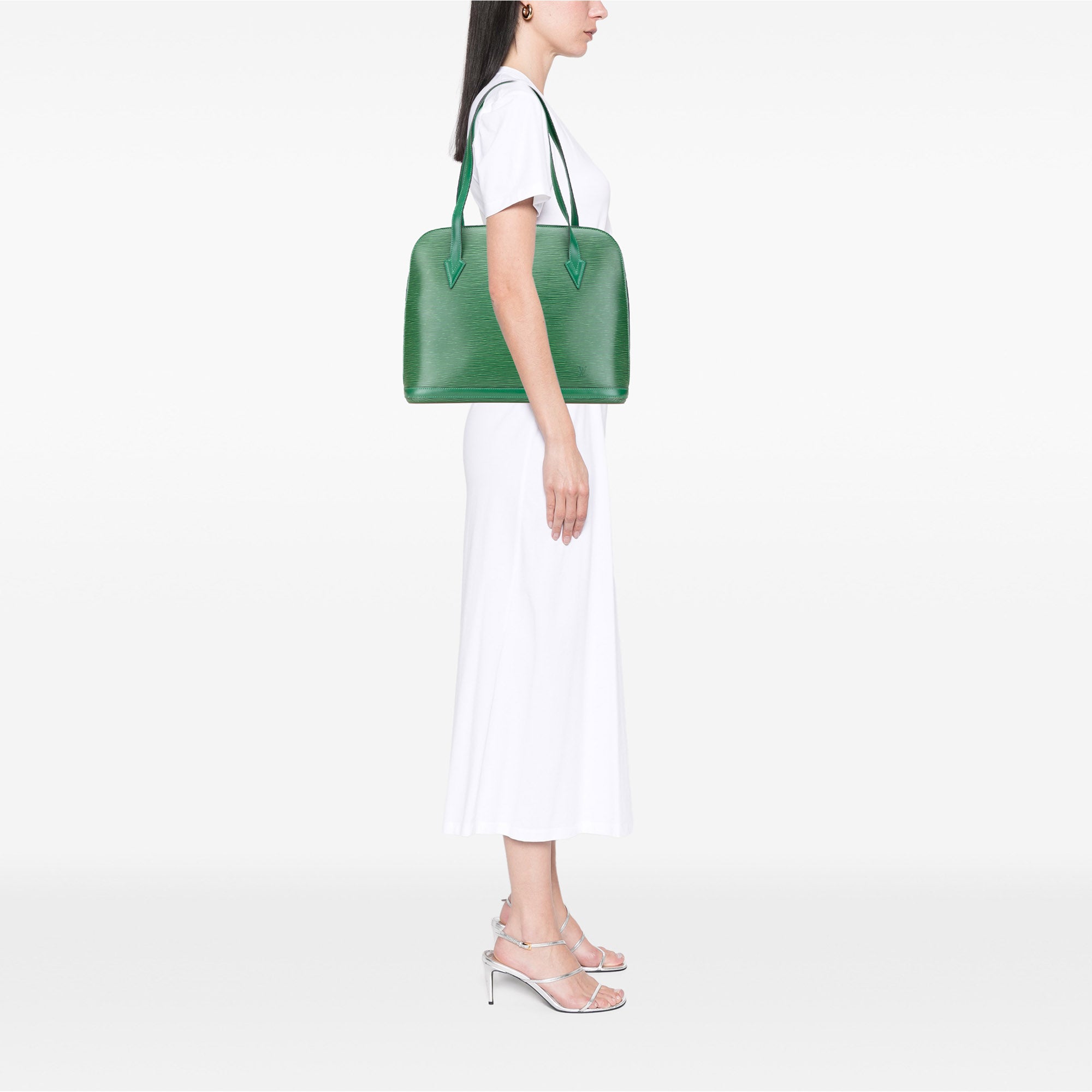 The Lussac features an epi leather body, flat straps, a top zip closure, and an interior zip pocket. Retail Price: 1140.00
