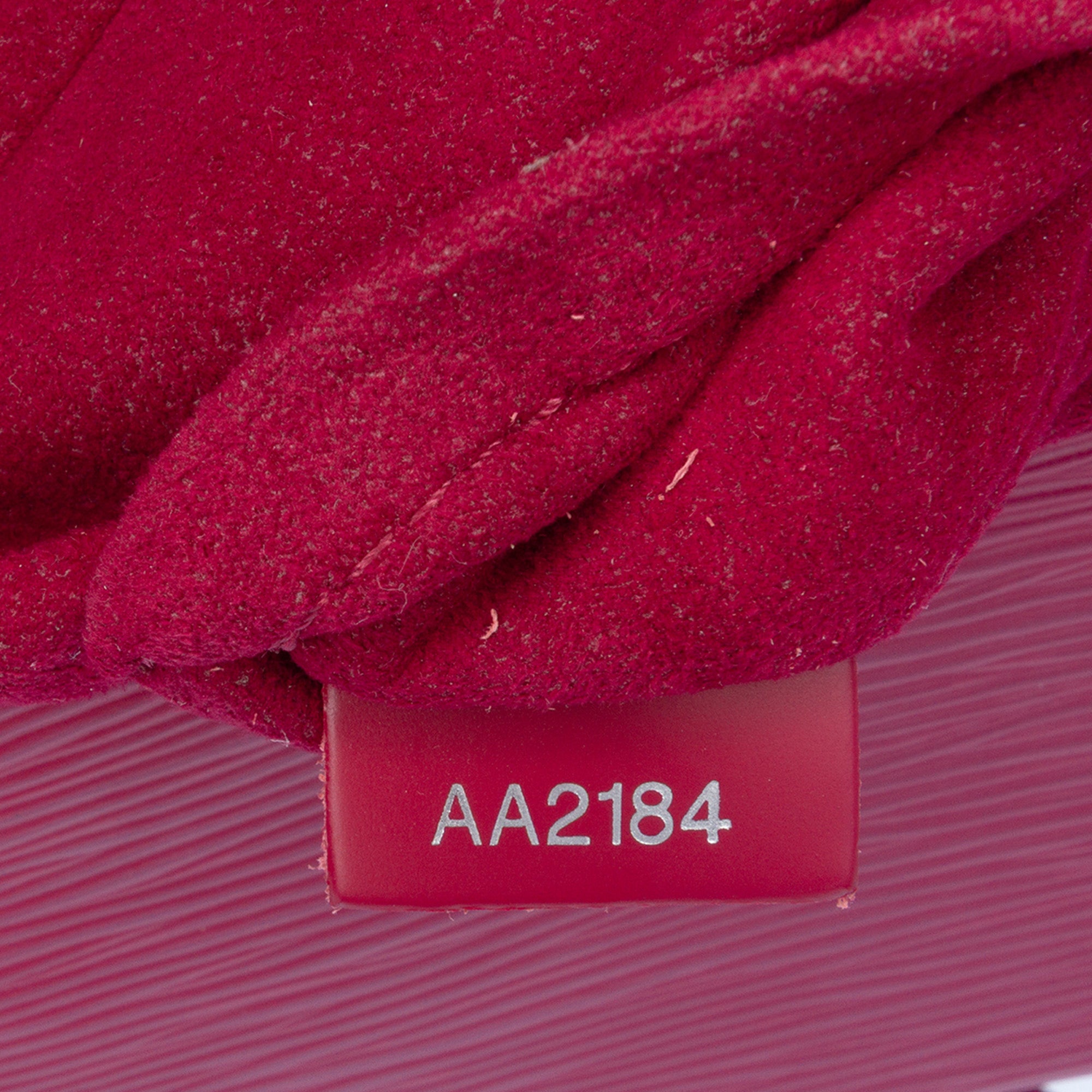 The Marly MM features an epi leather body, rolled leather handles, a detachable flat strap, a top magnetic closure, an interior zip compartment, and interior slip pockets. Retail Price: 1810.00