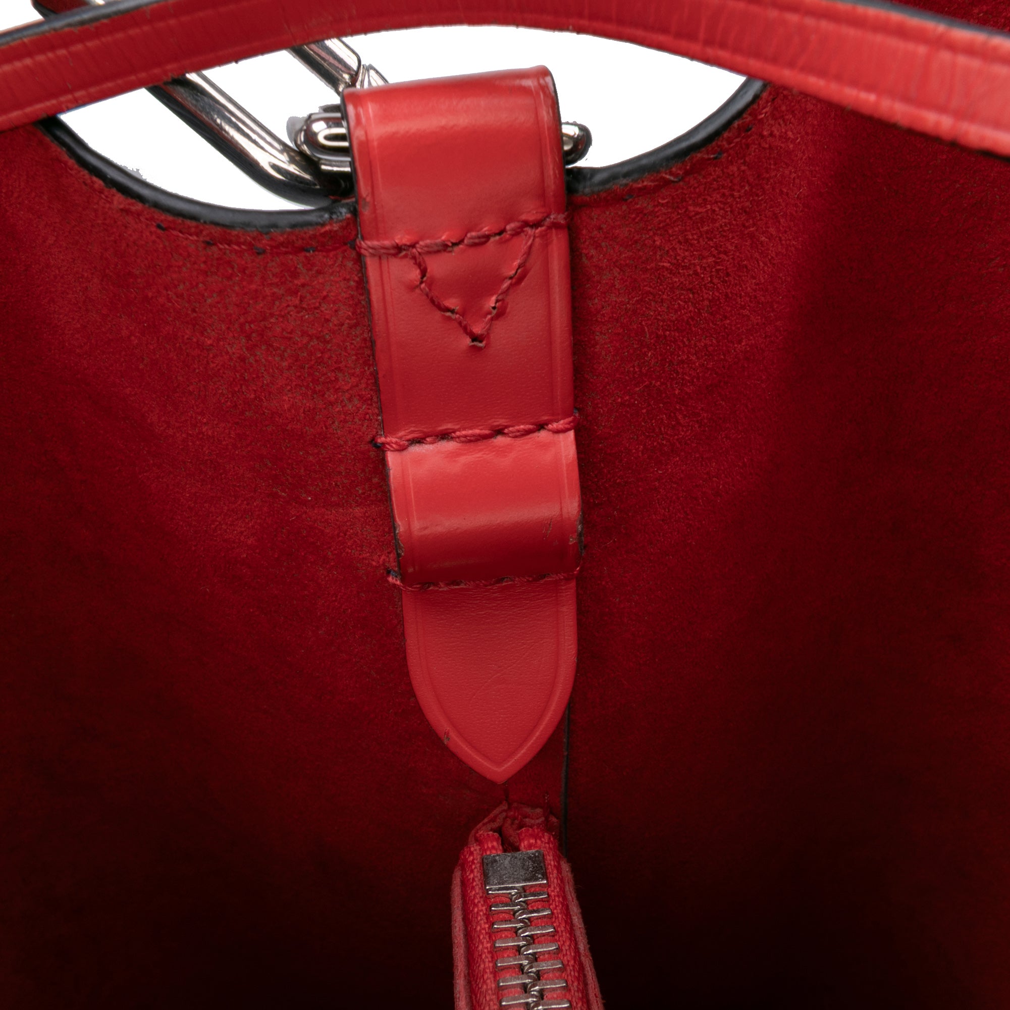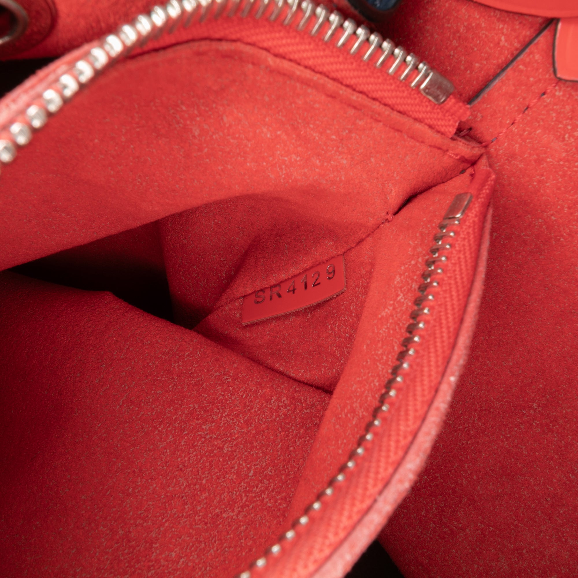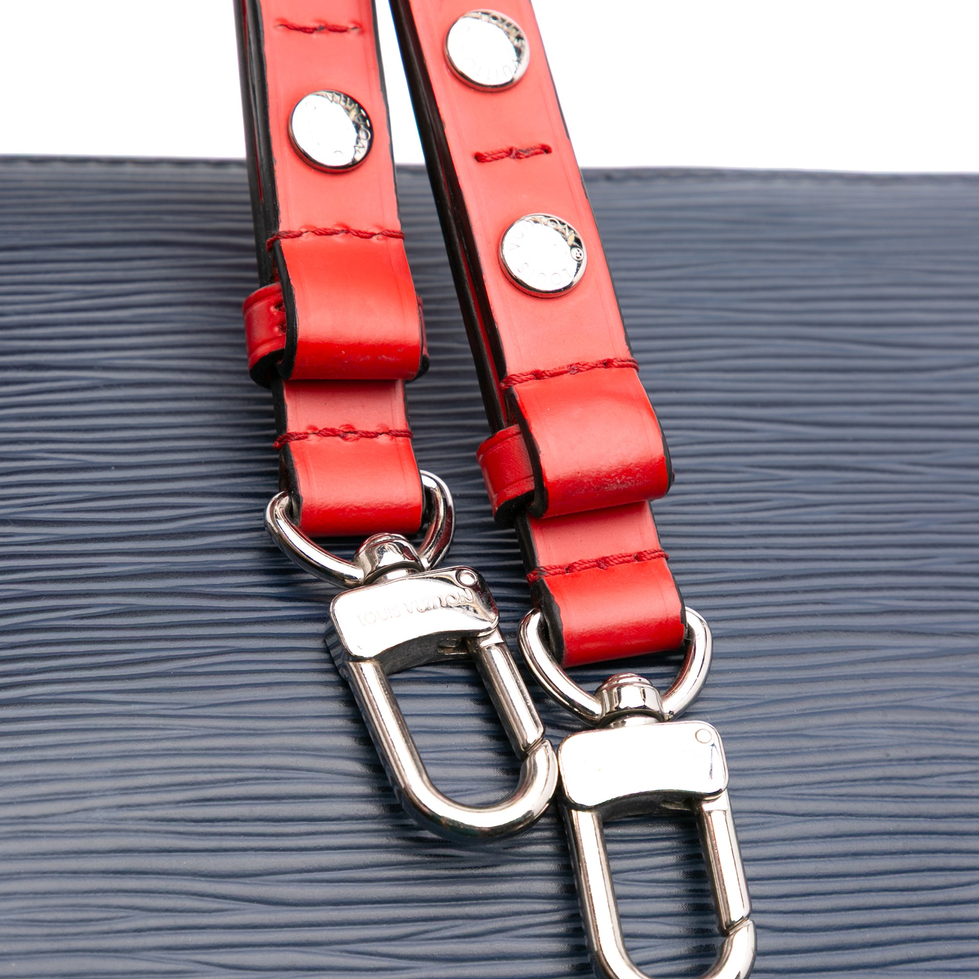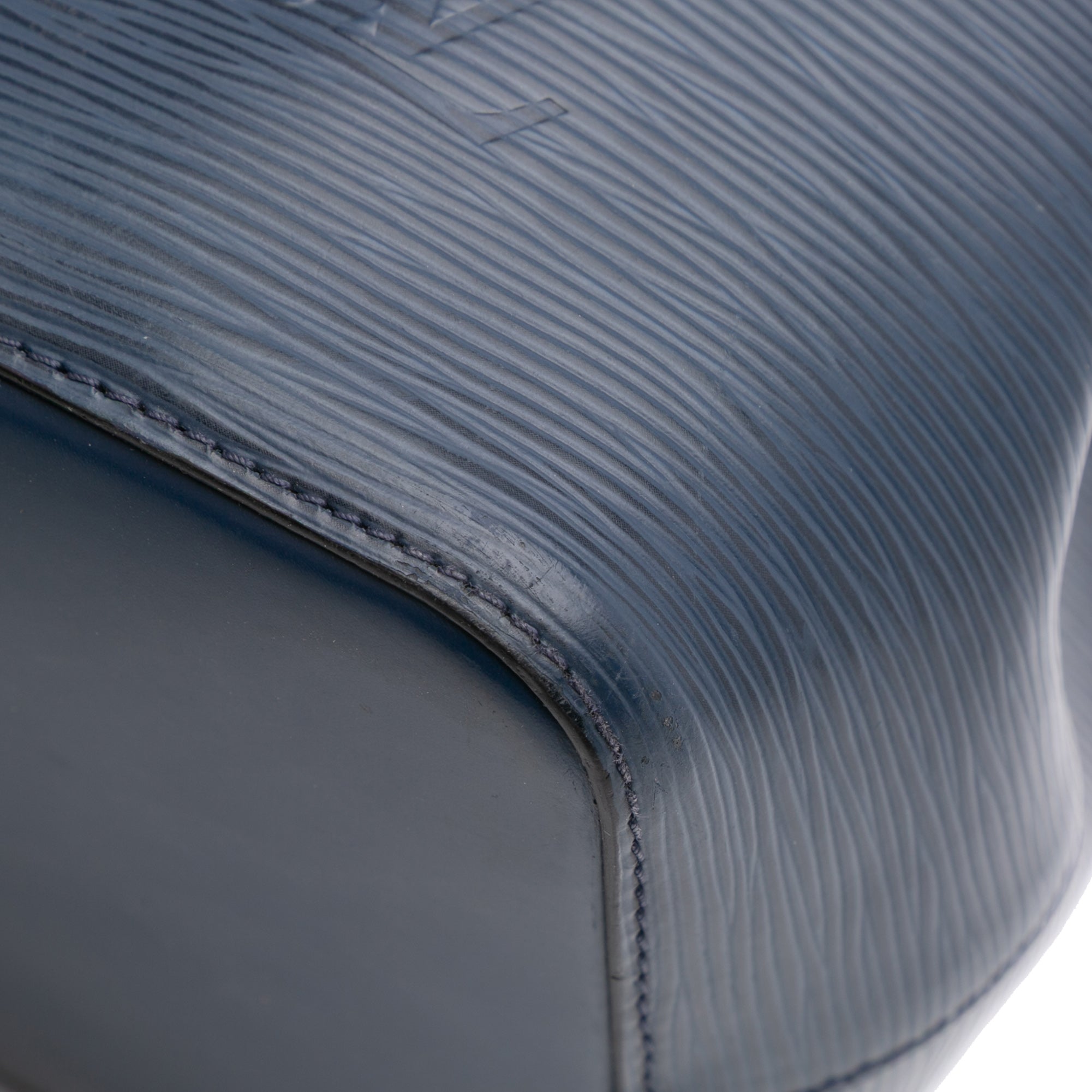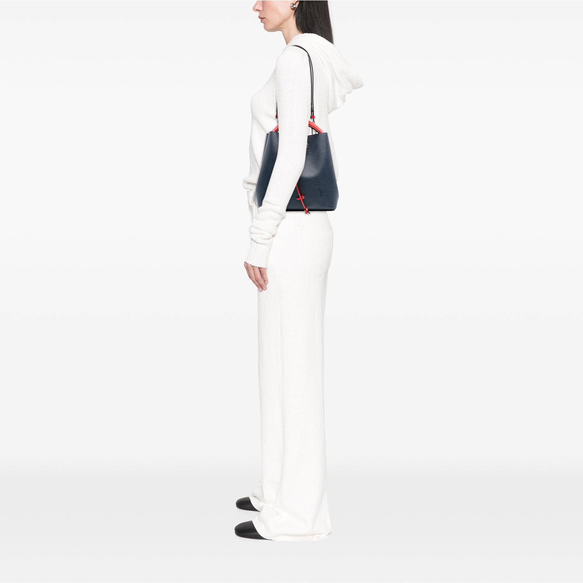 The NeoNoe MM features an epi leather body, a flat leather handle, a detachable flat leather strap, a top drawstring closure, and an interior zip compartment. Retail Price: 2570.00