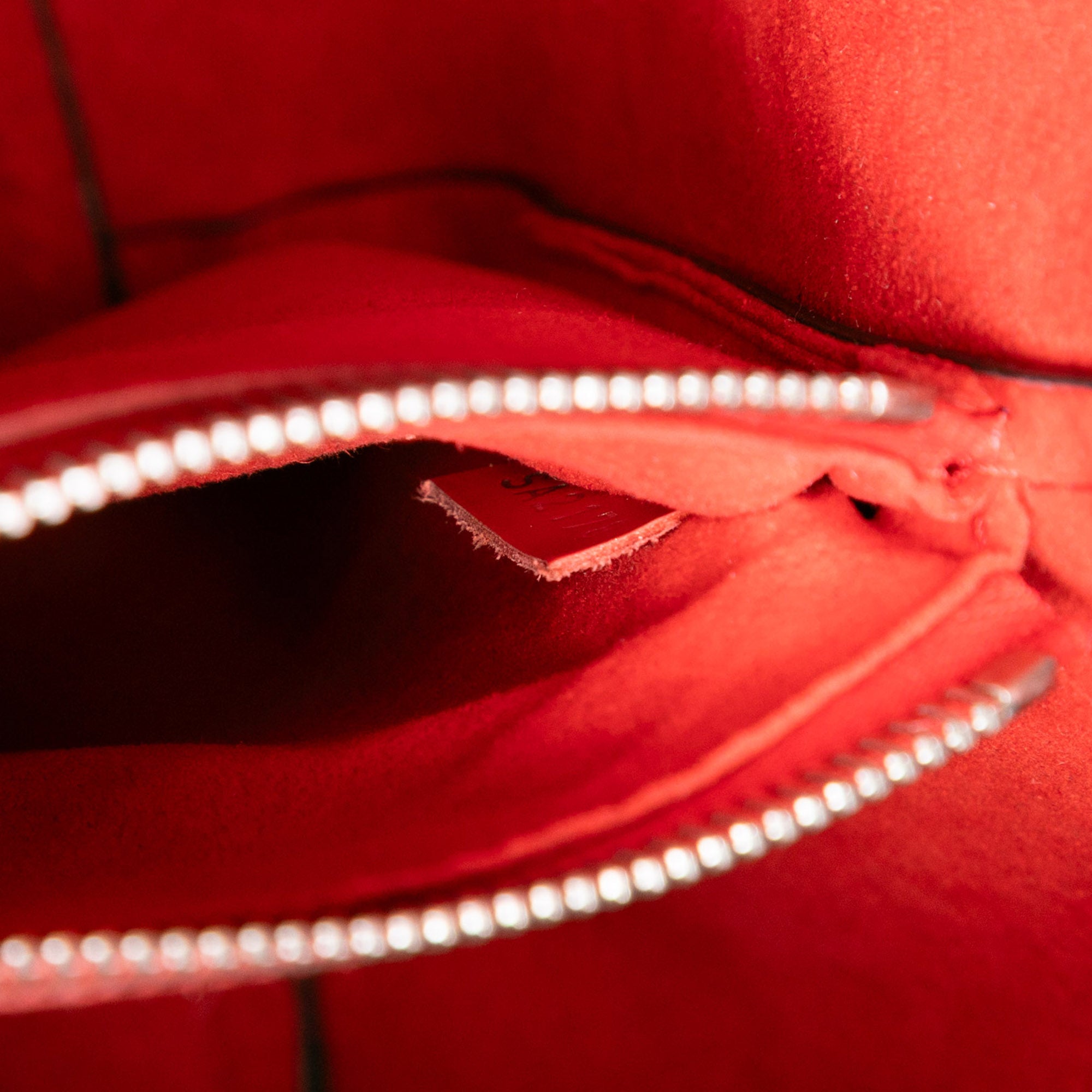 The NeoNoe features an epi leather body, a flat leather handle, a detachable flat leather strap, a top drawstring closure, and an interior zip compartment. Retail Price: 1800.00