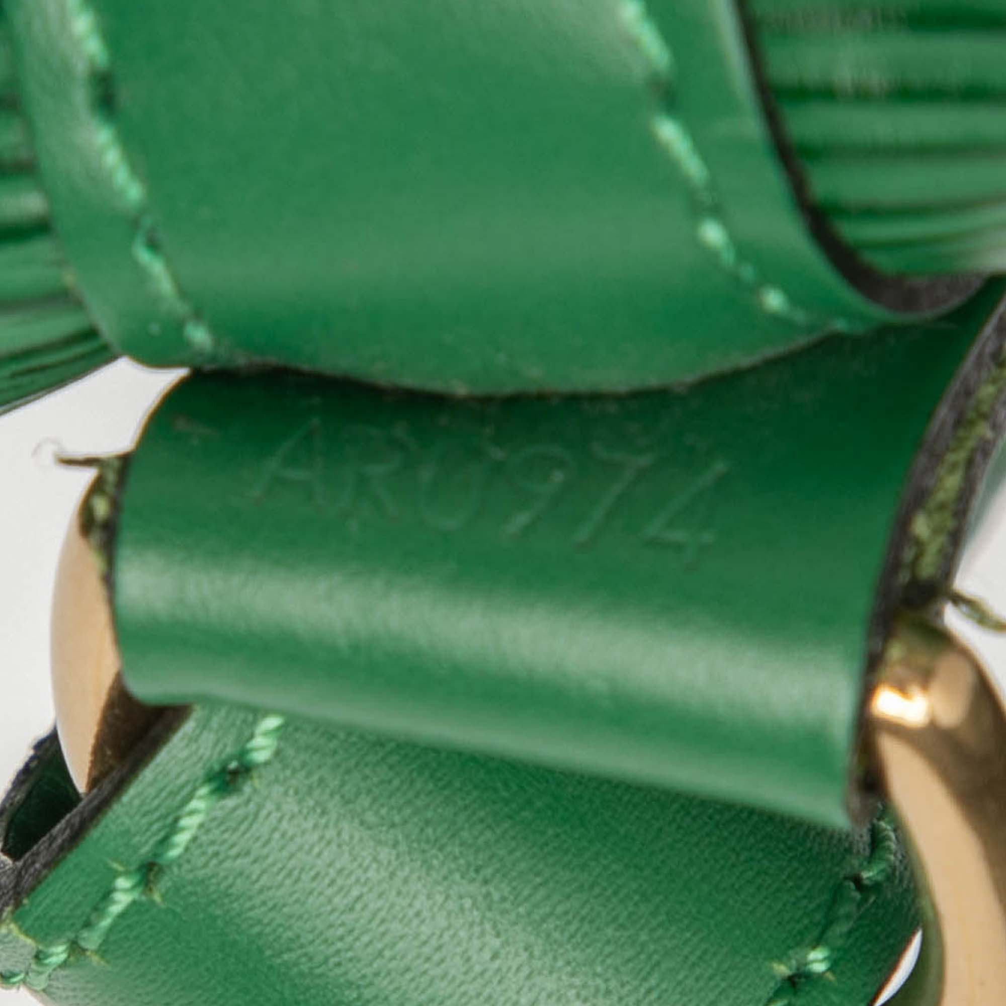 The Noe features an epi leather body, an adjustable flat strap, an open top with a drawstring closure, and Alcantara lining. Inclusion: Dust bag. Retail Price: 1680.00