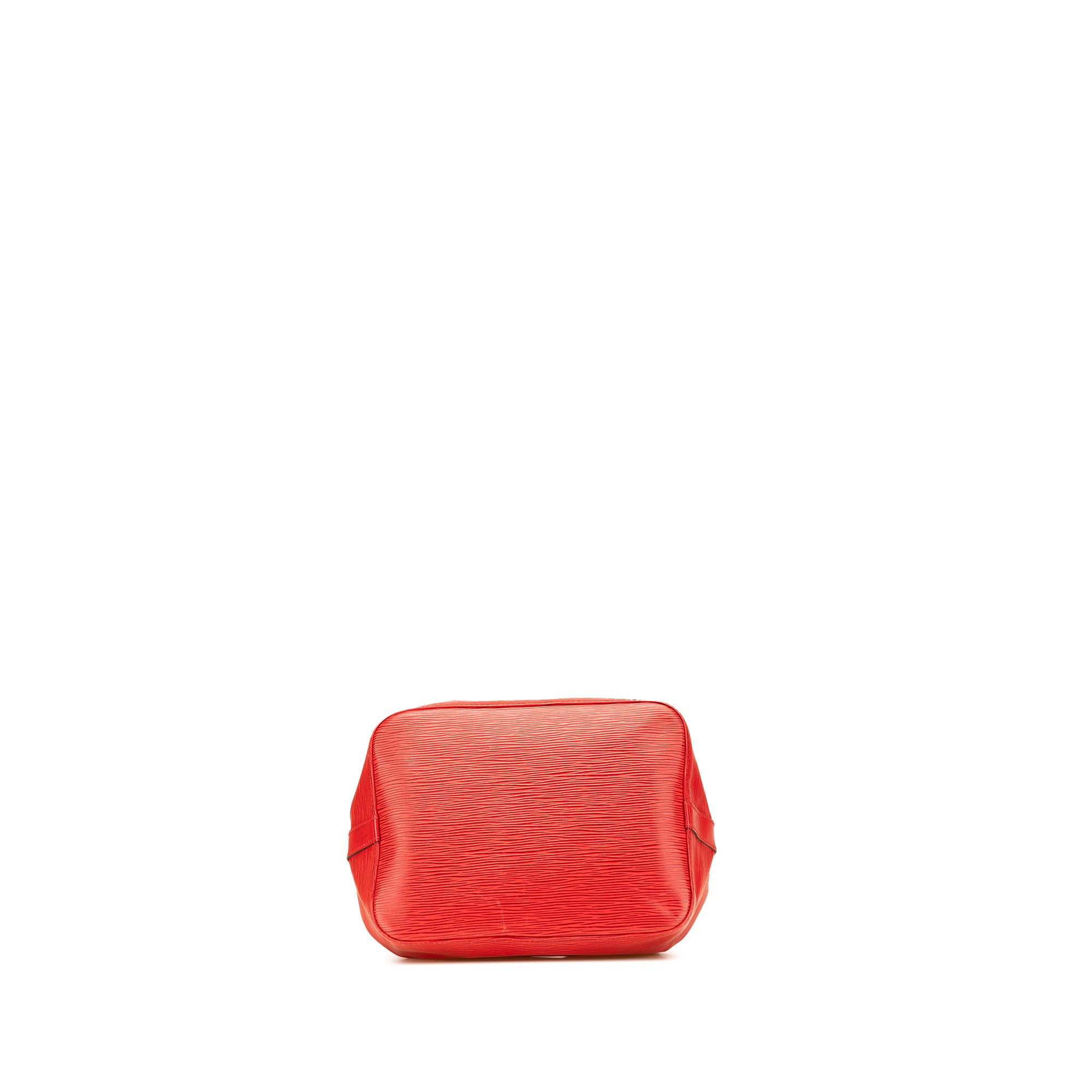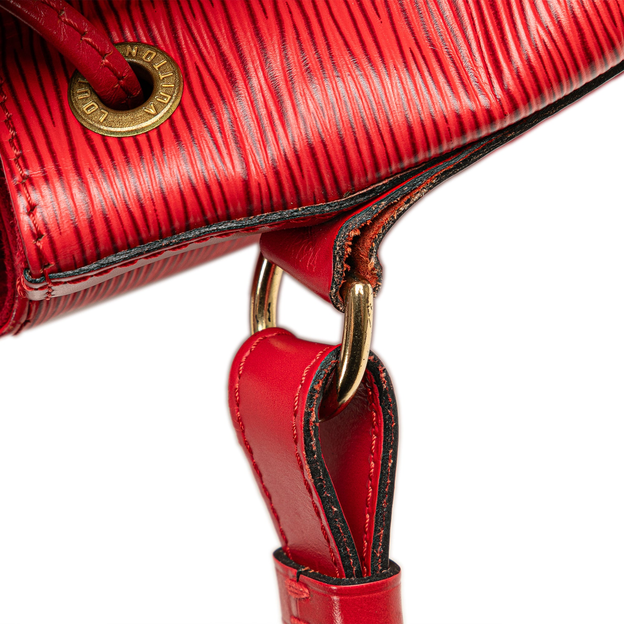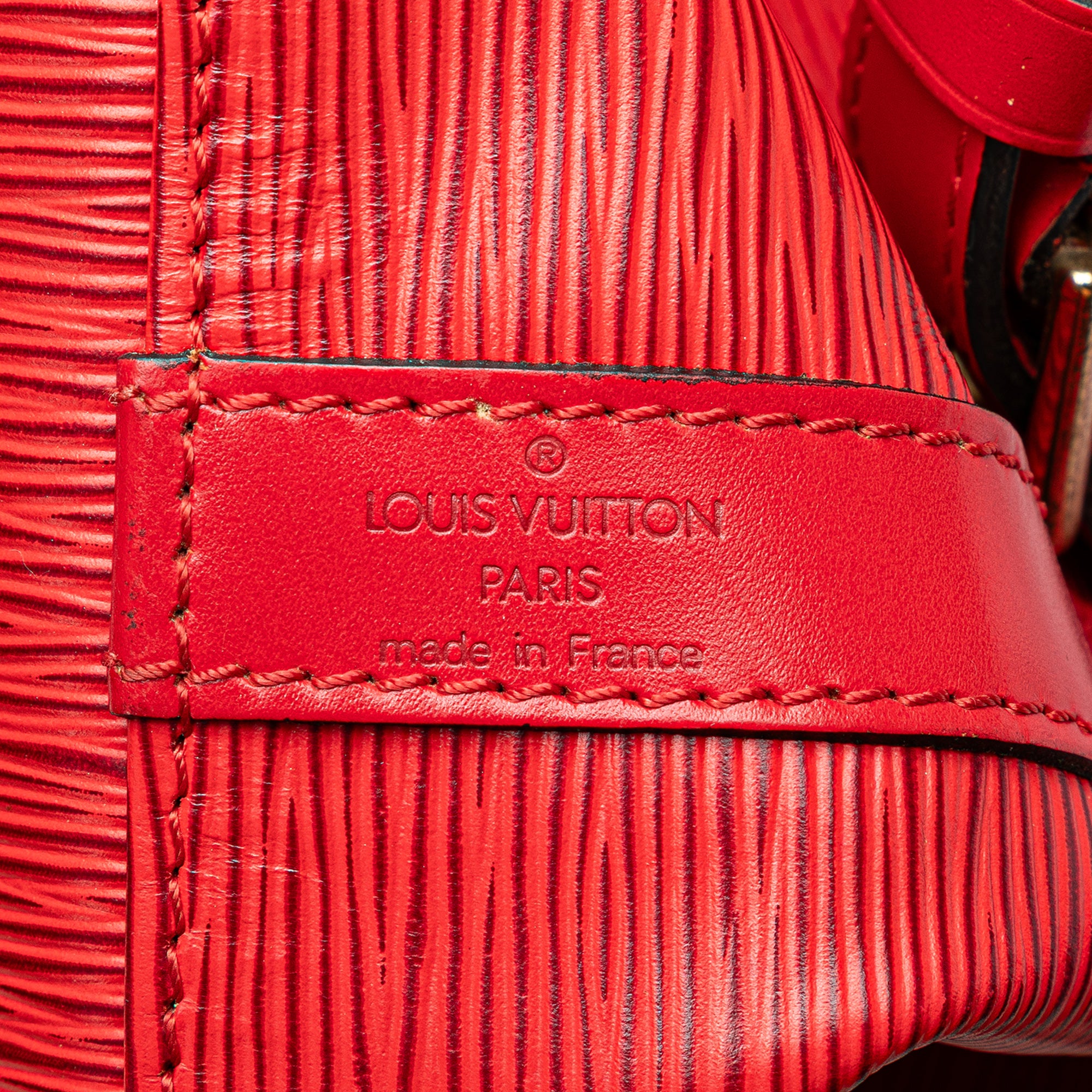 The Petit Noe features an epi leather body, flat leather shoulder straps, and a drawstring closure. Retail Price: 1523.00
