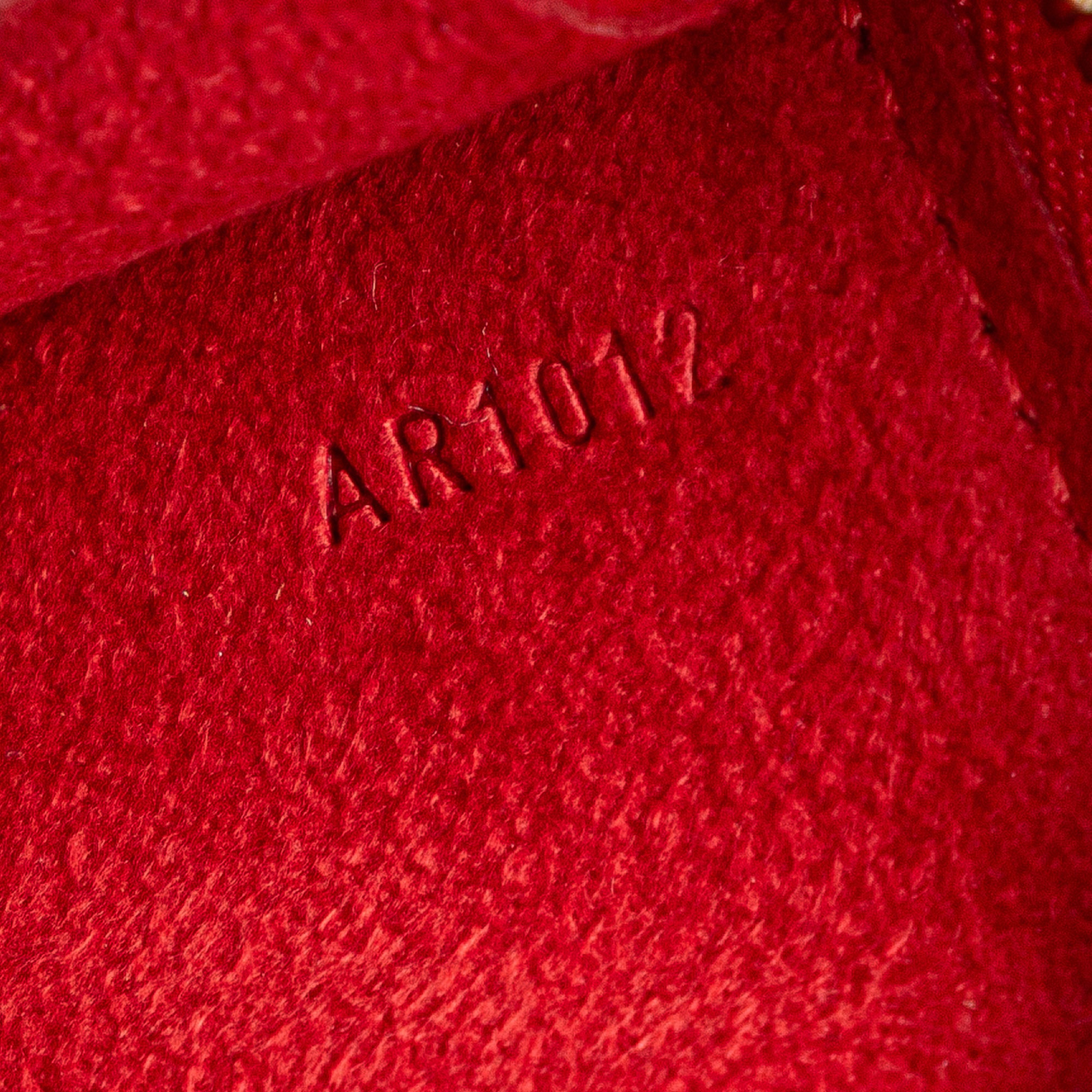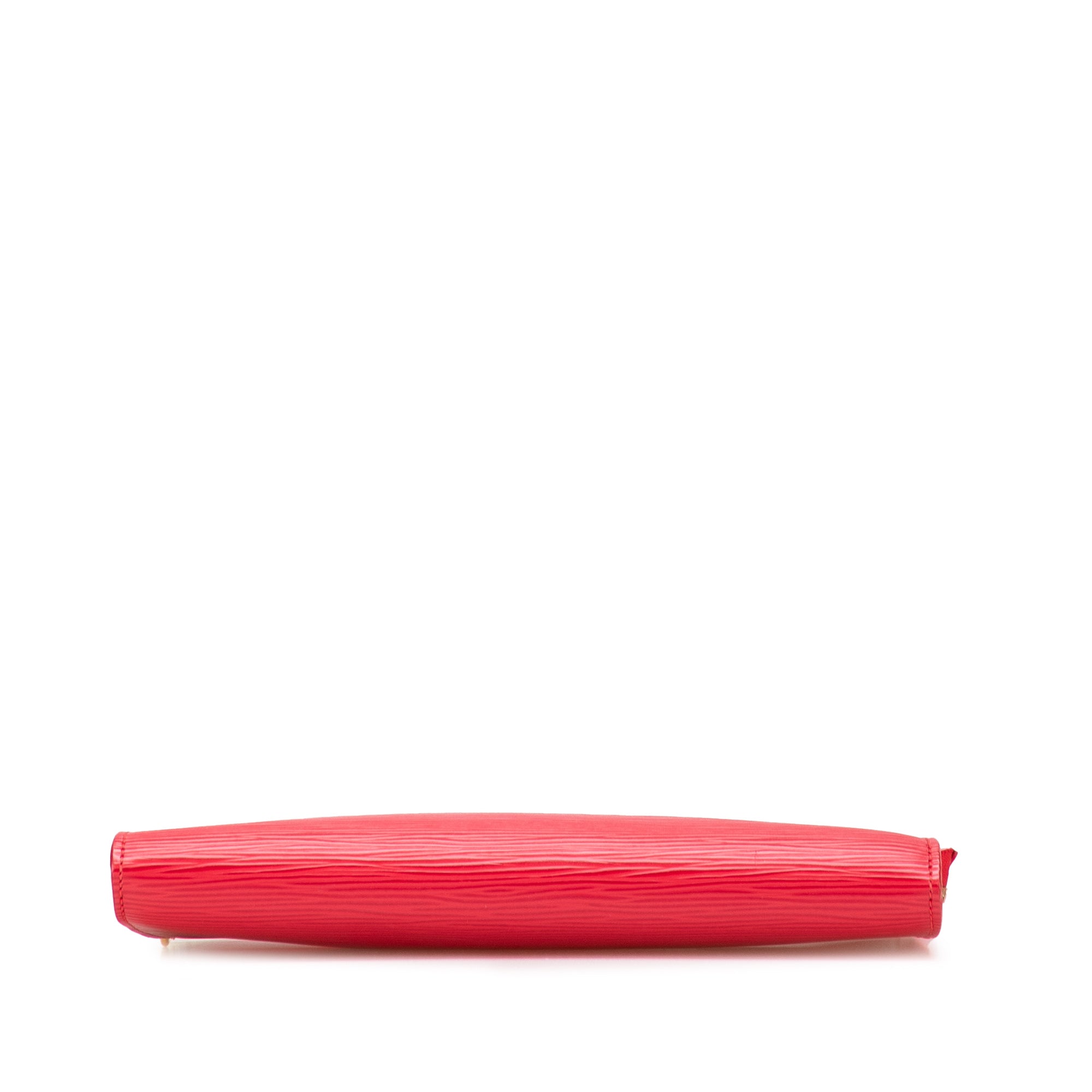 The Pochette Accessoires features an epi leather body, a flat leather shoulder strap, and a top zip closure. Retail Price: 990.00