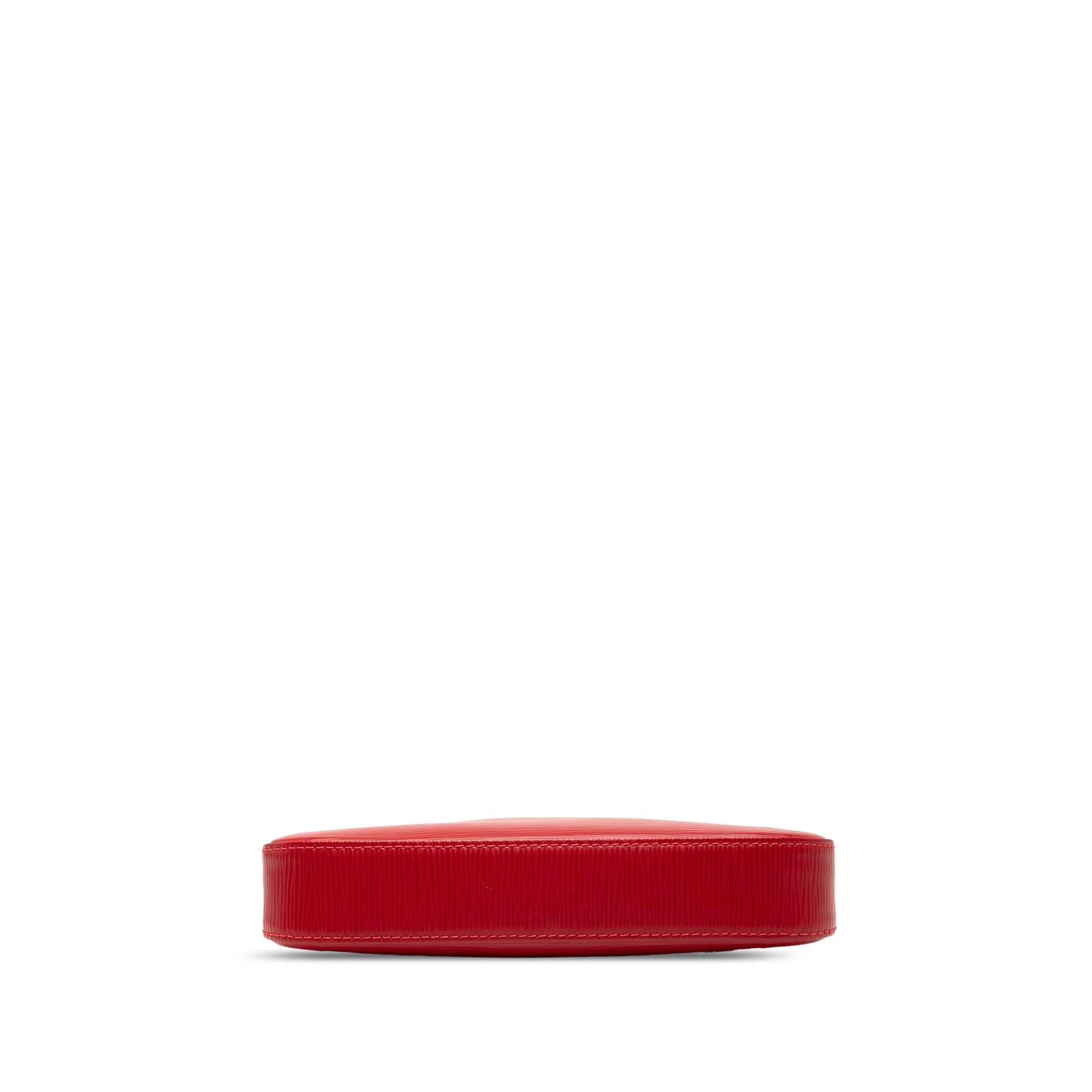 The Pochette Accessoires features an epi leather body, a flat leather strap, a top zip closure and, an interior slip pocket. Retail Price: 1110.00