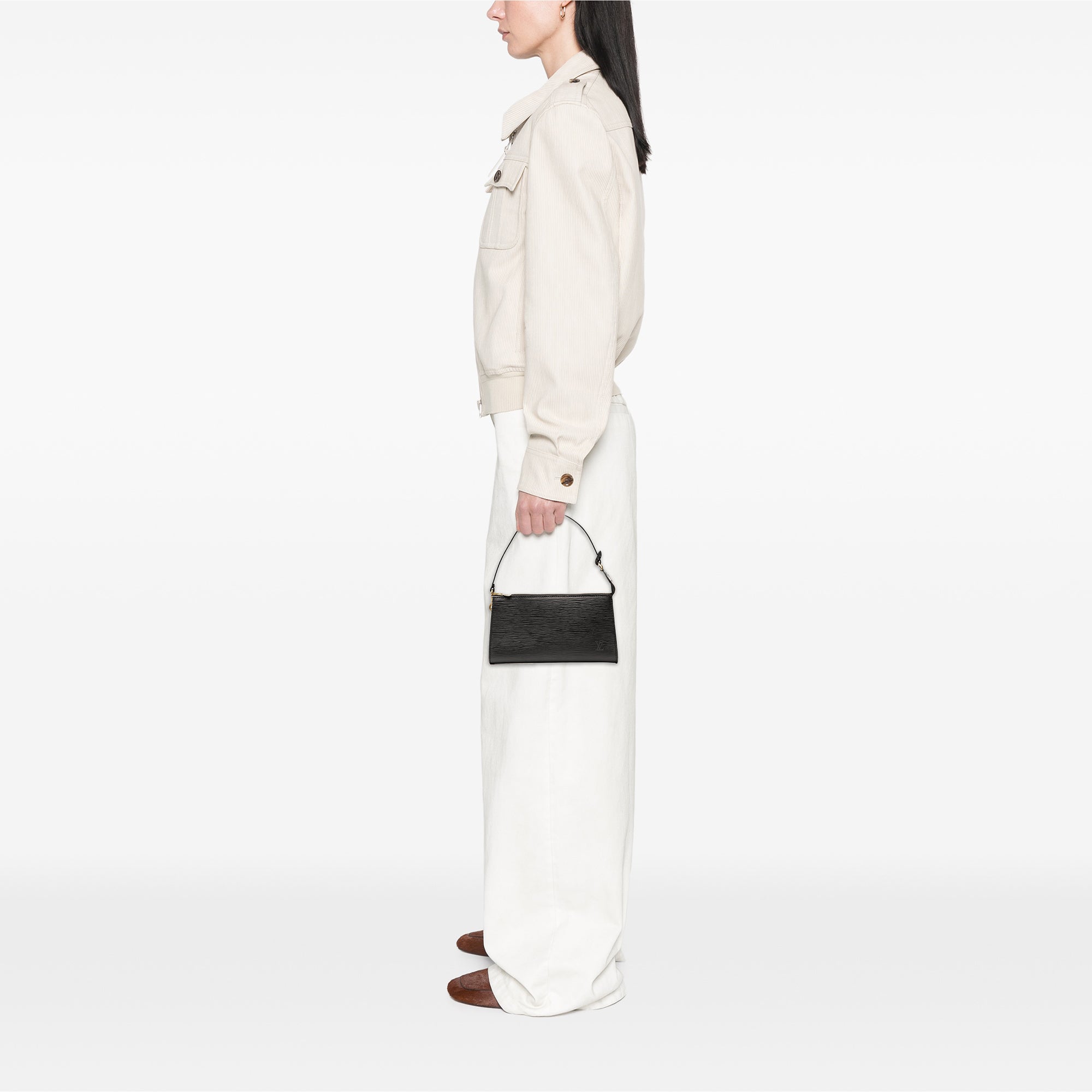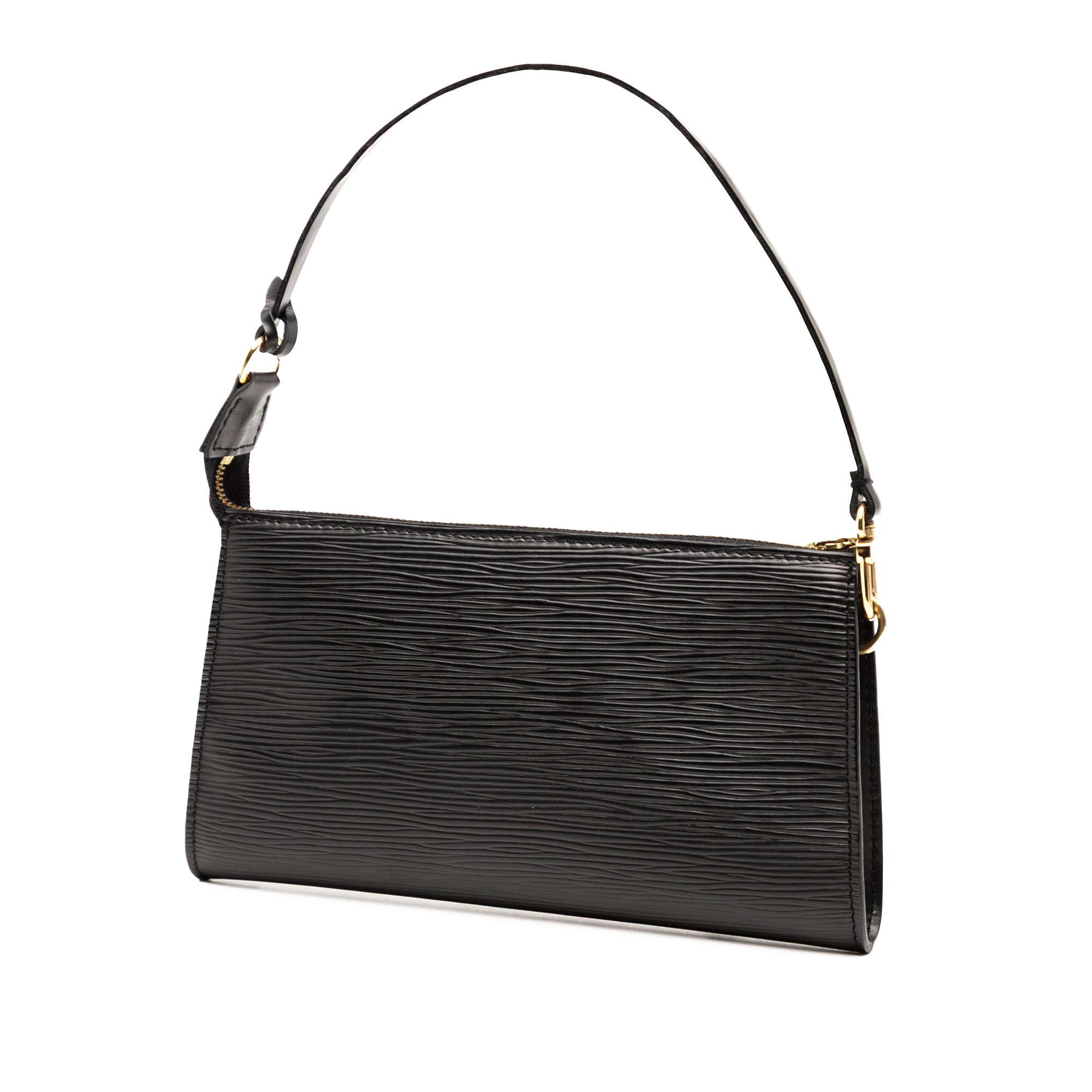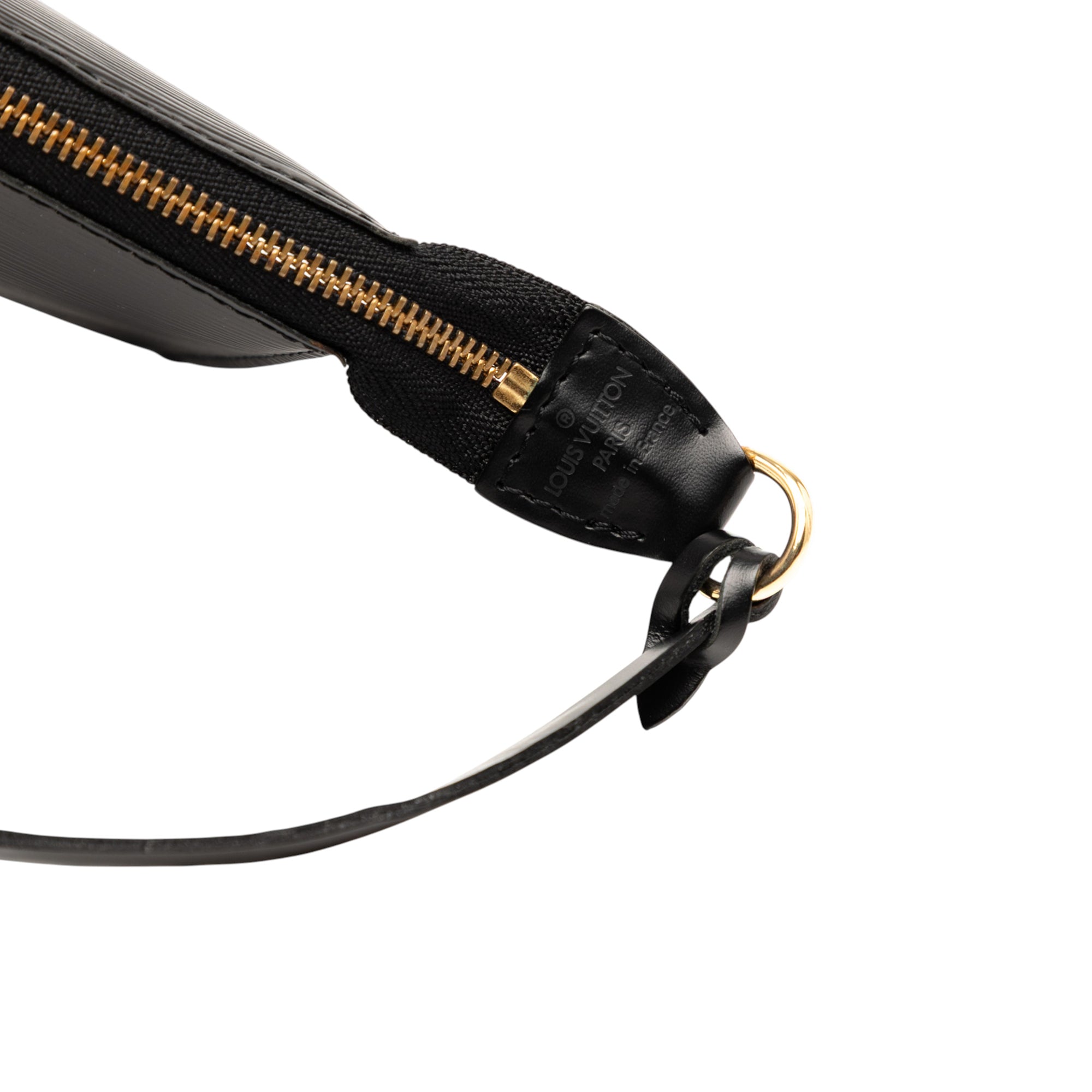 The Pochette Accessoires features an epi leather body, a detachable flat leather shoulder strap, and a top zip closure. Retail Price: 773.00