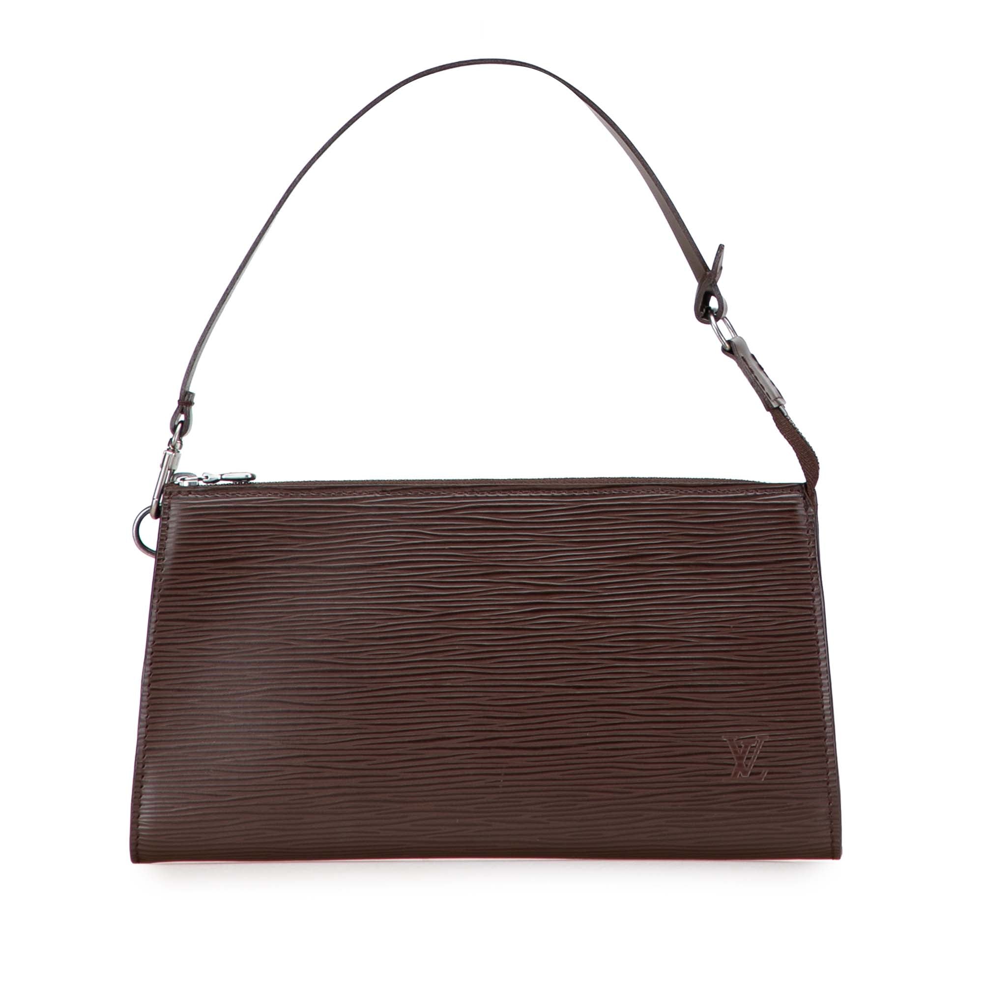 The Pochette Accessoires features an epi leather body, a flat shoulder strap, and a top zip closure. Inclusion: box. Retail Price: 1004.00