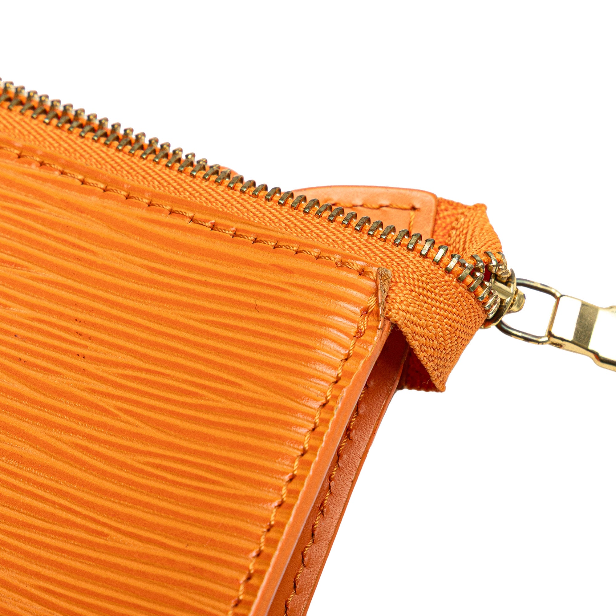 The Pochette Accessoires features an epi leather body, a flat shoulder strap, and a top zip closure. Retail Price: 1290.00