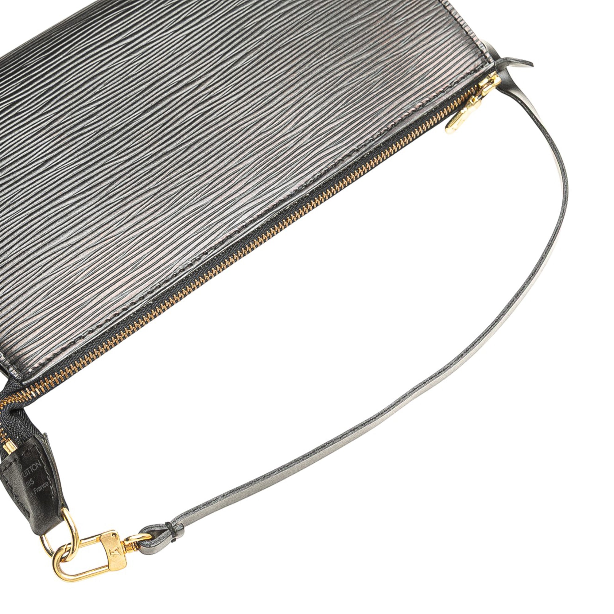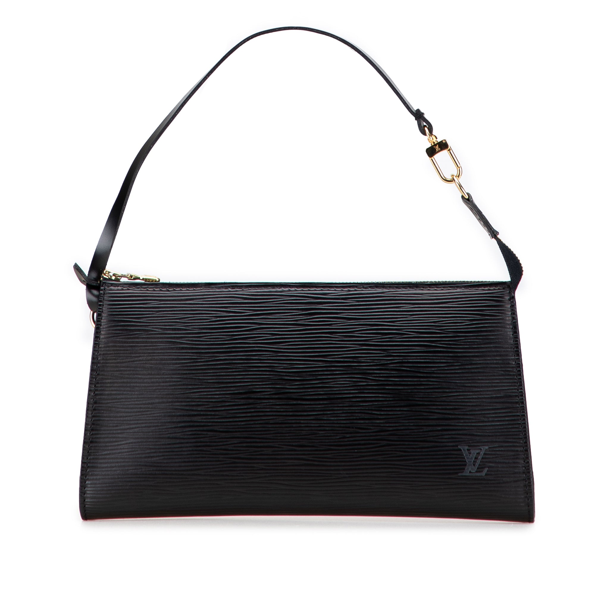 The Pochette Accessoires features an epi leather body, a detachable flat shoulder strap, and a top zip closure. Retail Price: 773.00