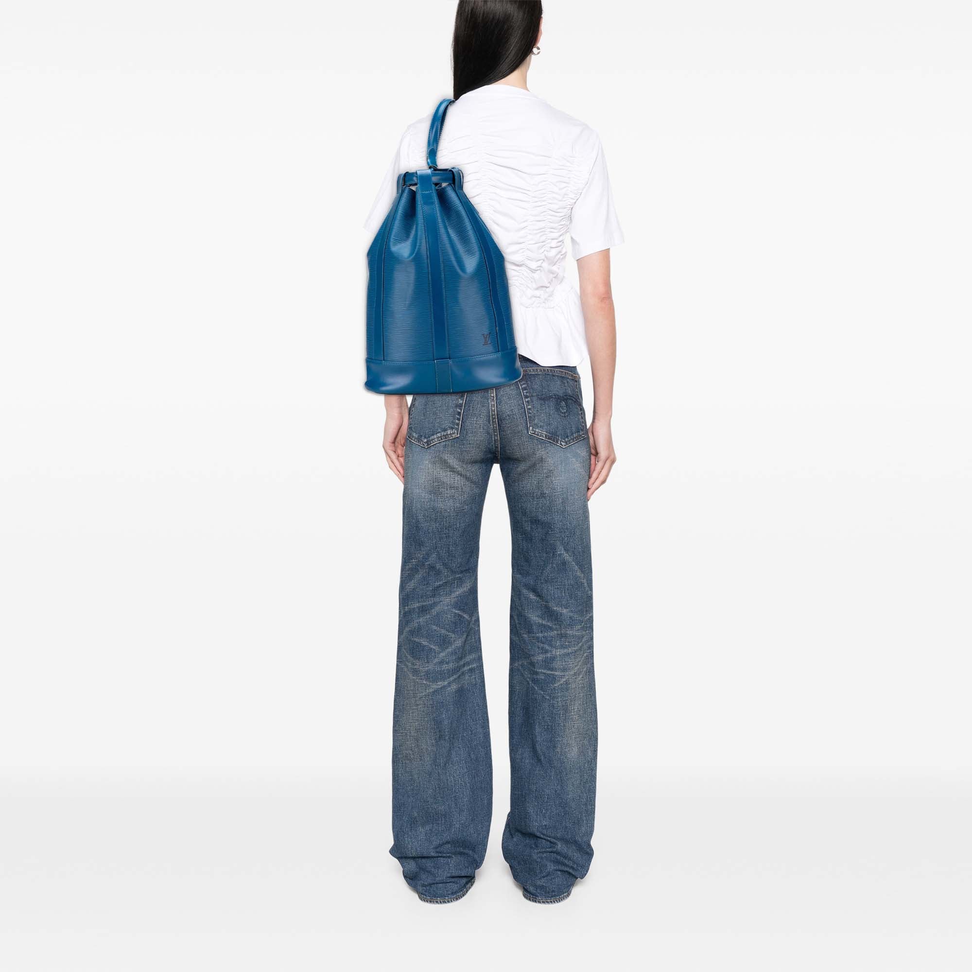 The Randonnee PM features an epi leather body, flat straps, and a top drawstring closure. Retail Price: 1380.00