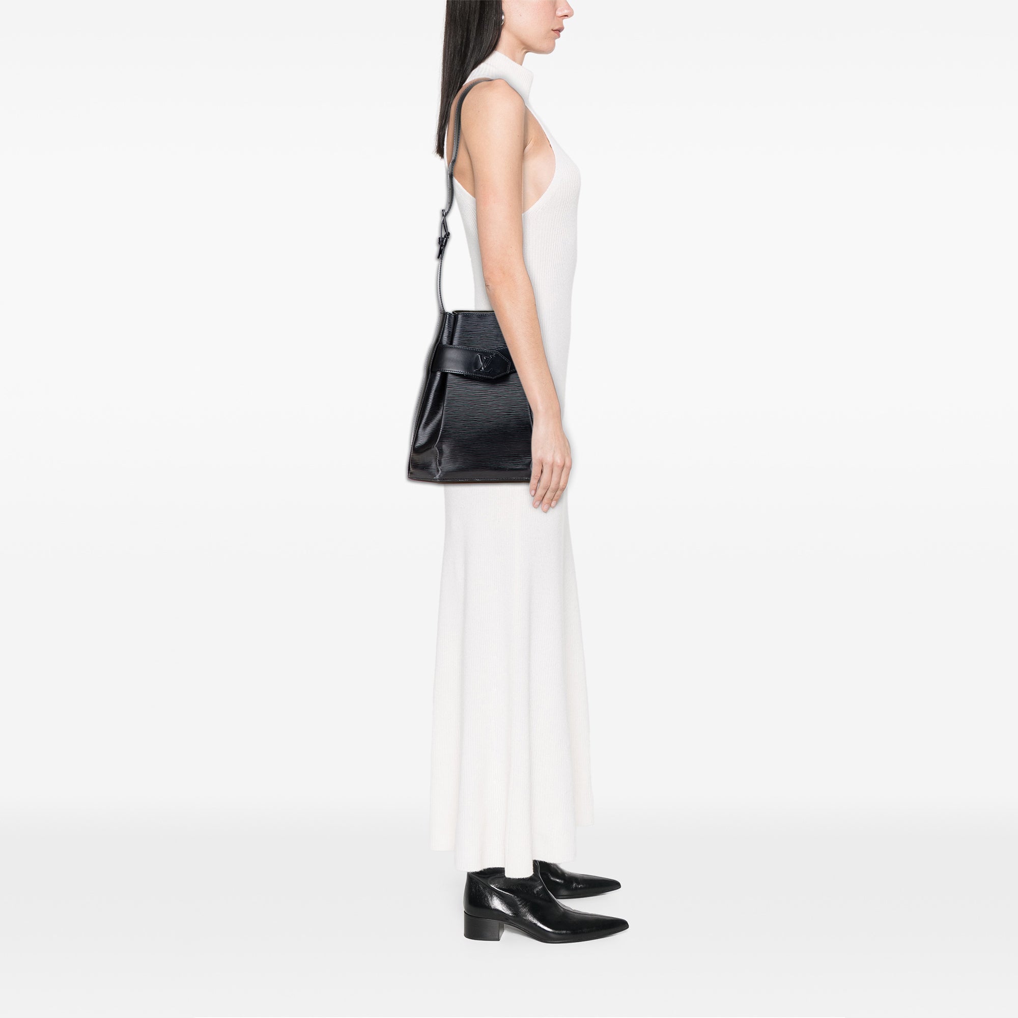 The Epi Sac D' Epaule PM features an epi leather body, adjustable flat leather shoulder strap, and an open top with front magnetic closure. Retail Price: 513.00