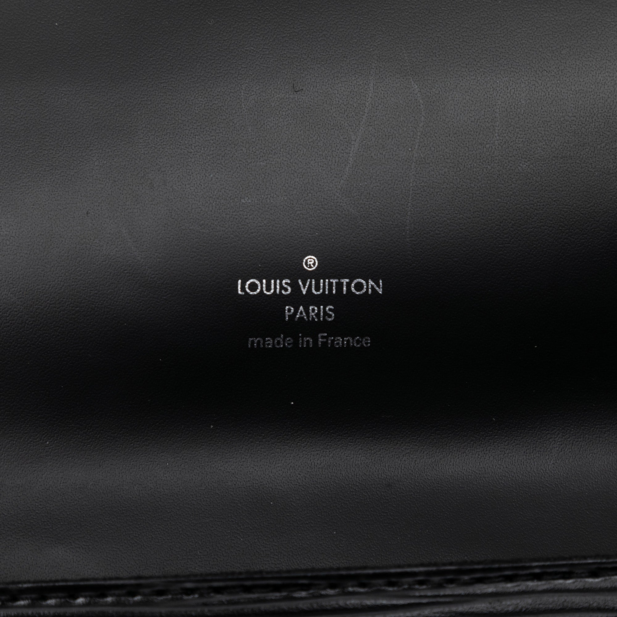 The Sevigne Clutch features an epi leather body, an adjustable flat leather strap, a front flap with magnetic snap closure, and interior zip and slip pockets Retail Price: 1500.00