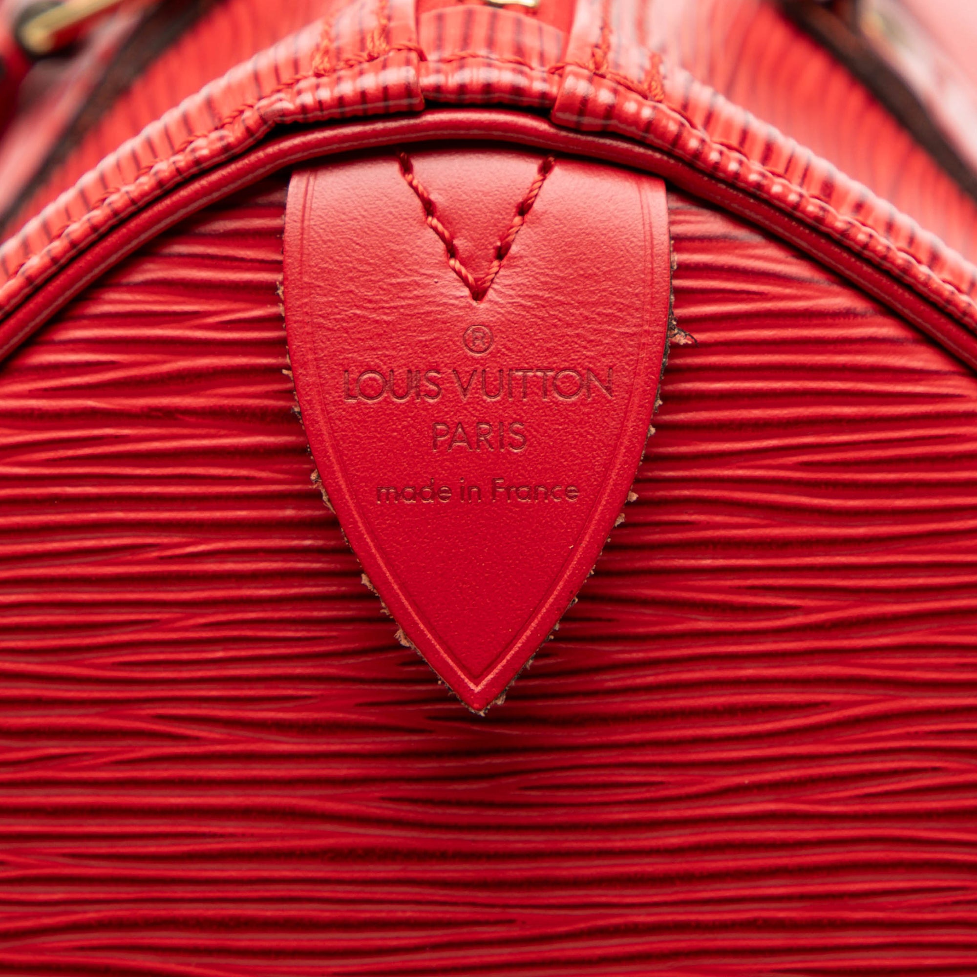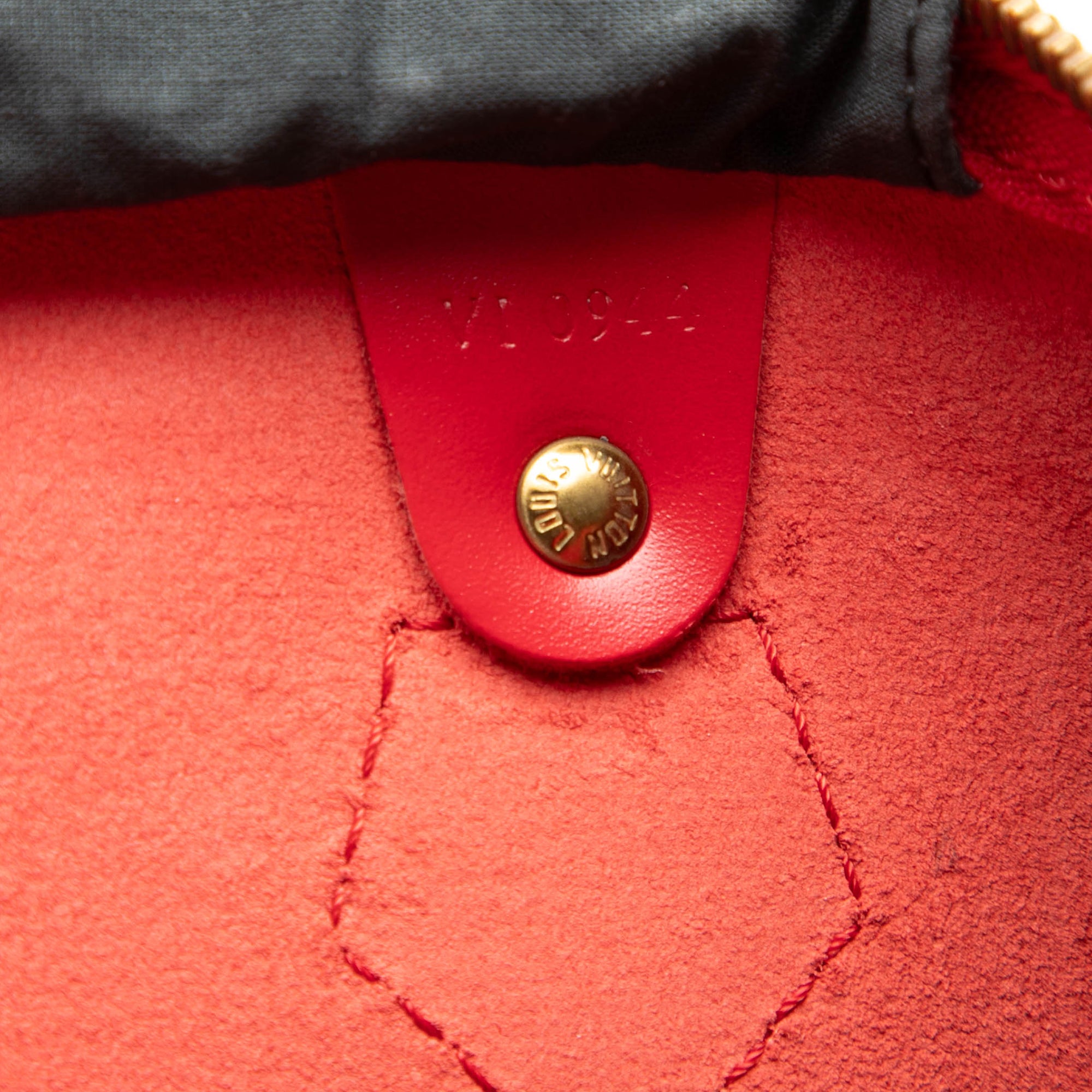The Speedy 30 features an epi leather body, rolled handles, a top zip closure, and an interior slip pocket. Retail Price: 1330.00