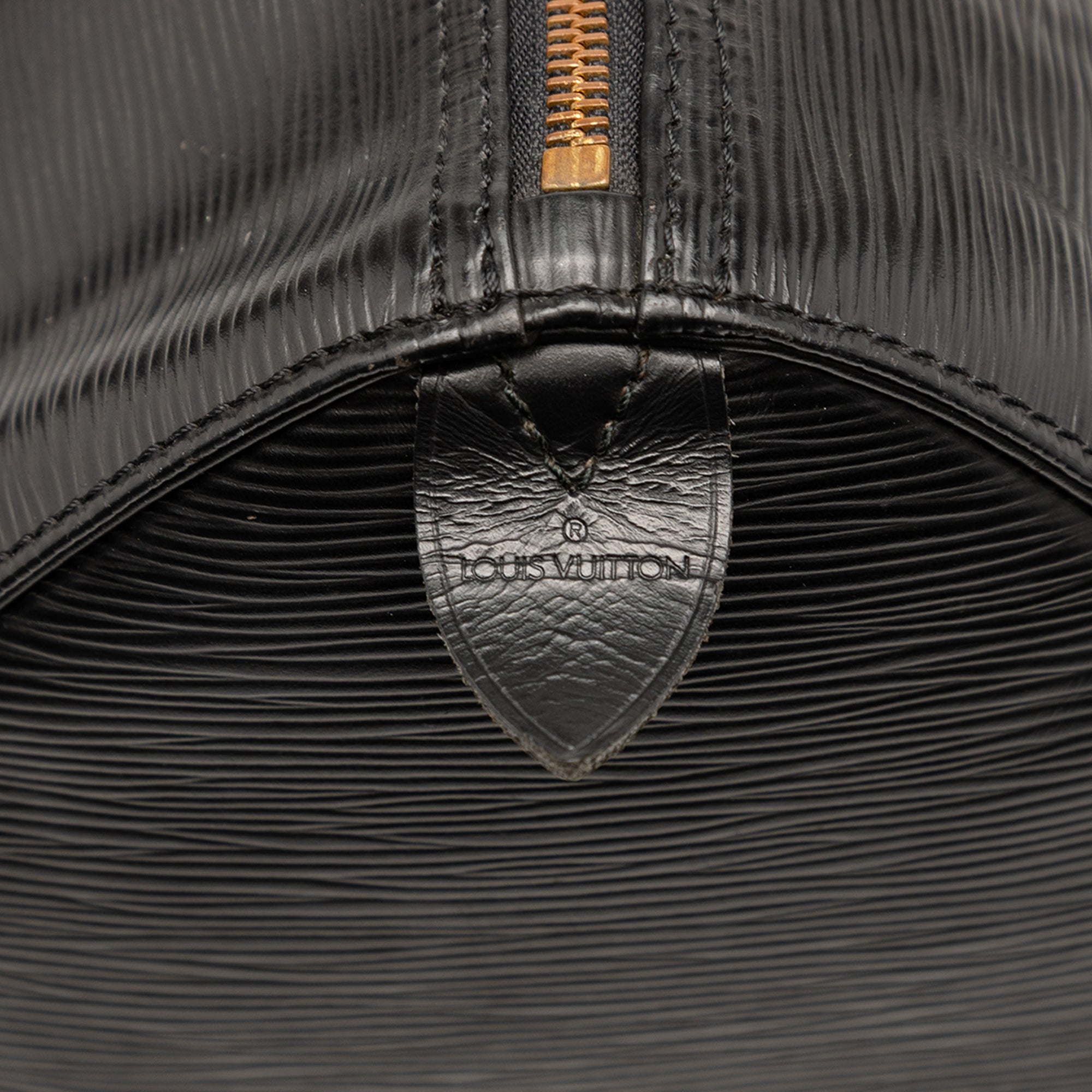 The Speedy 35 features an epi leather body, rolled leather handles, a top zip closure, an exterior side slip pocket, and an interior slip pocket. Retail Price: 1360.00