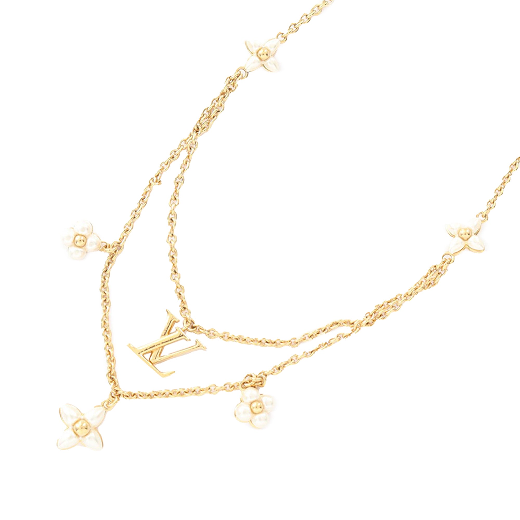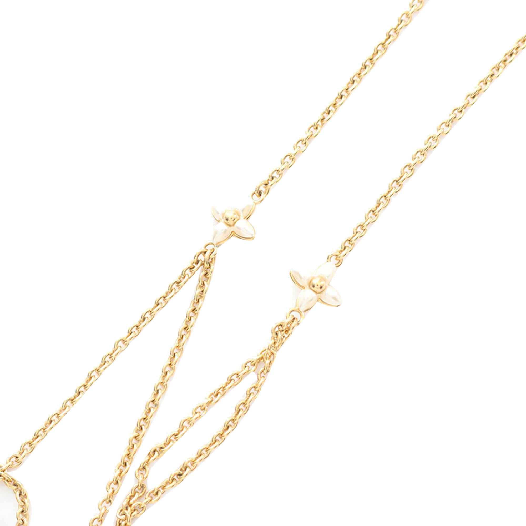 Louis Vuitton Gold Plated Faux Pearl LV Floragram Necklace
