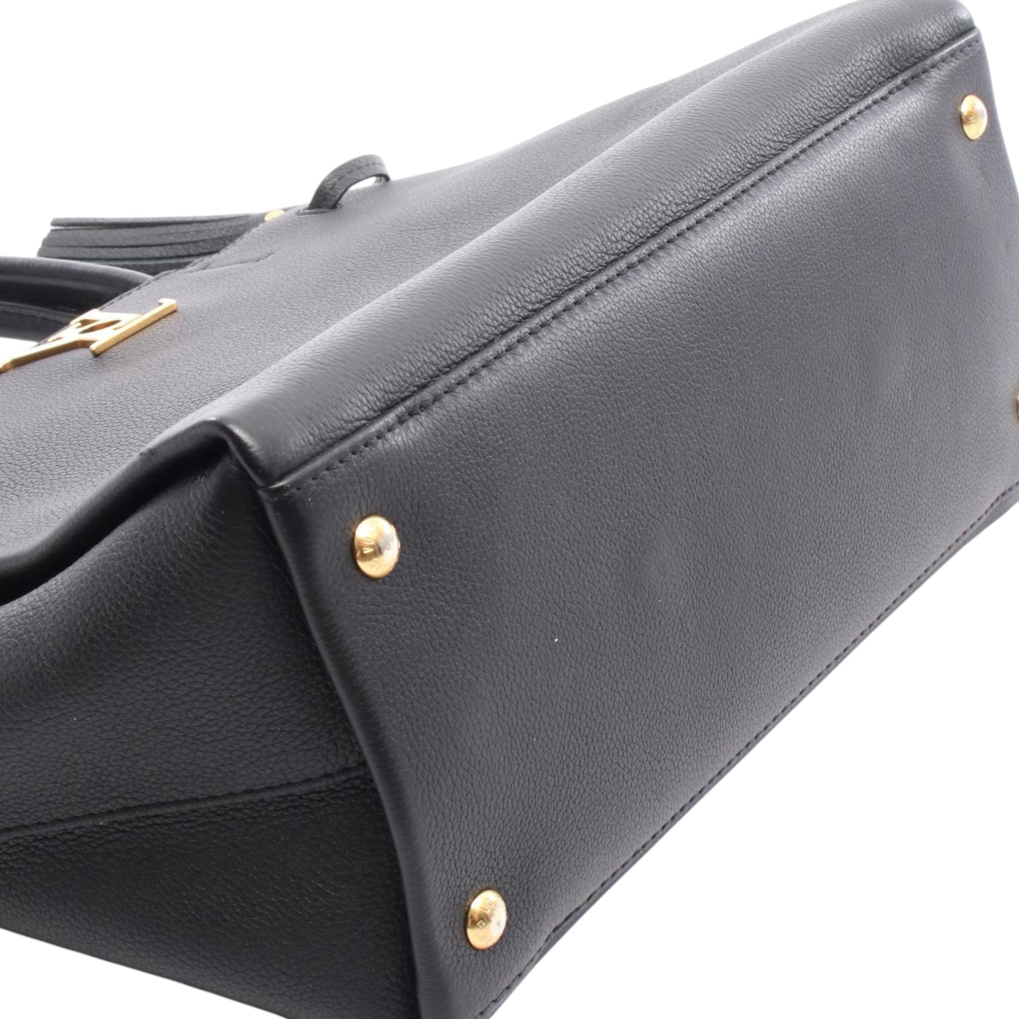 The Lockmeto features a leather body, rolled leather handles, a detachable flat shoulder strap, three interior compartments; one with turn-lock closure, one with zip closure, and one with magnetic snap closure, and interior slip pockets. Retail Price: 3100.00