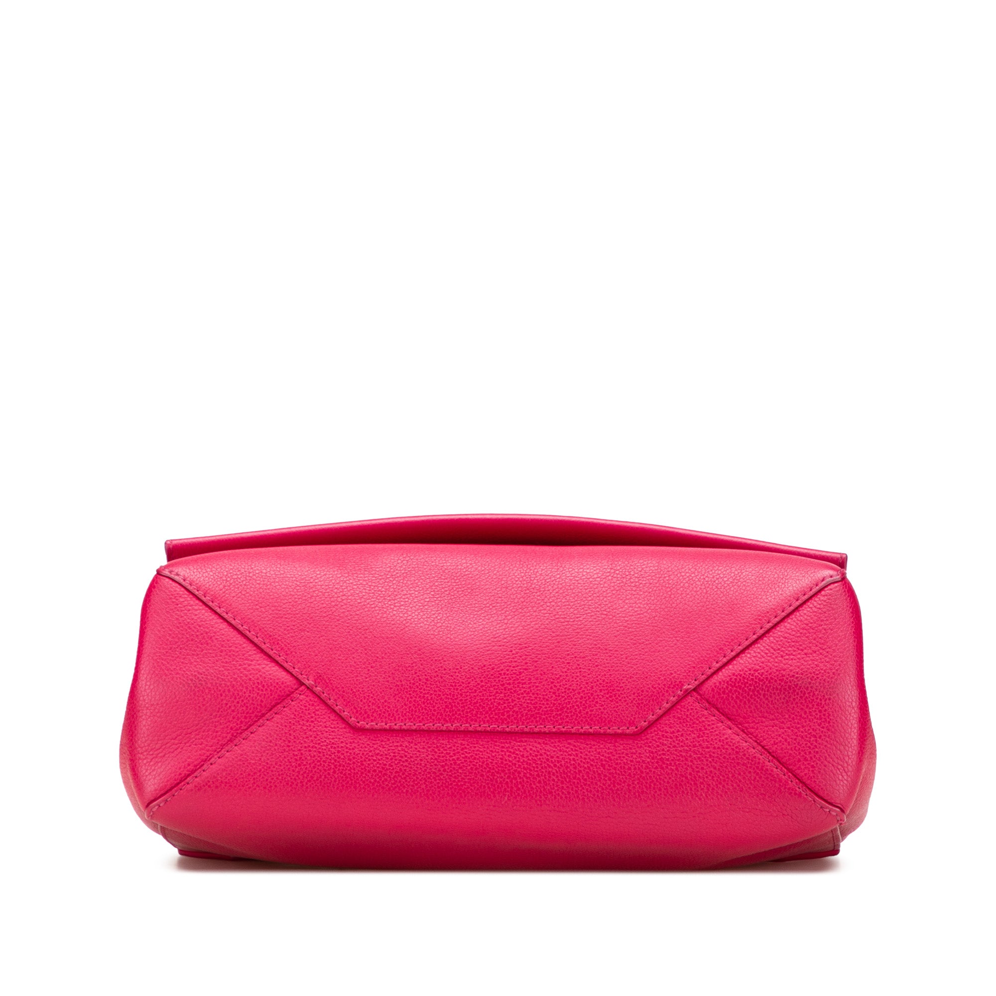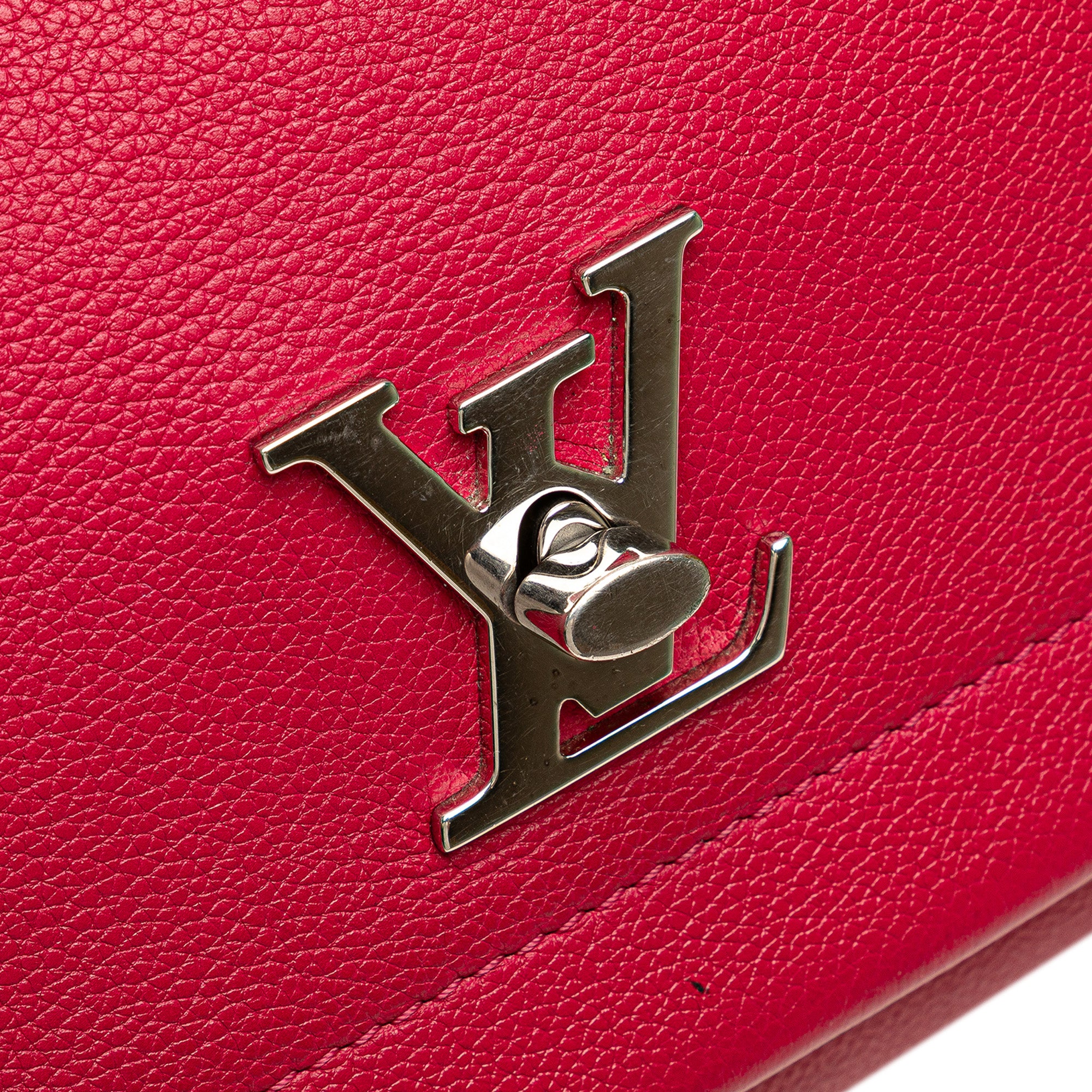 The LockMe II features a leather body, a flat leather top handle, a detachable flat leather strap, a front flap with twist lock closure, and an interior slip pocket. Retail Price: 2340.00