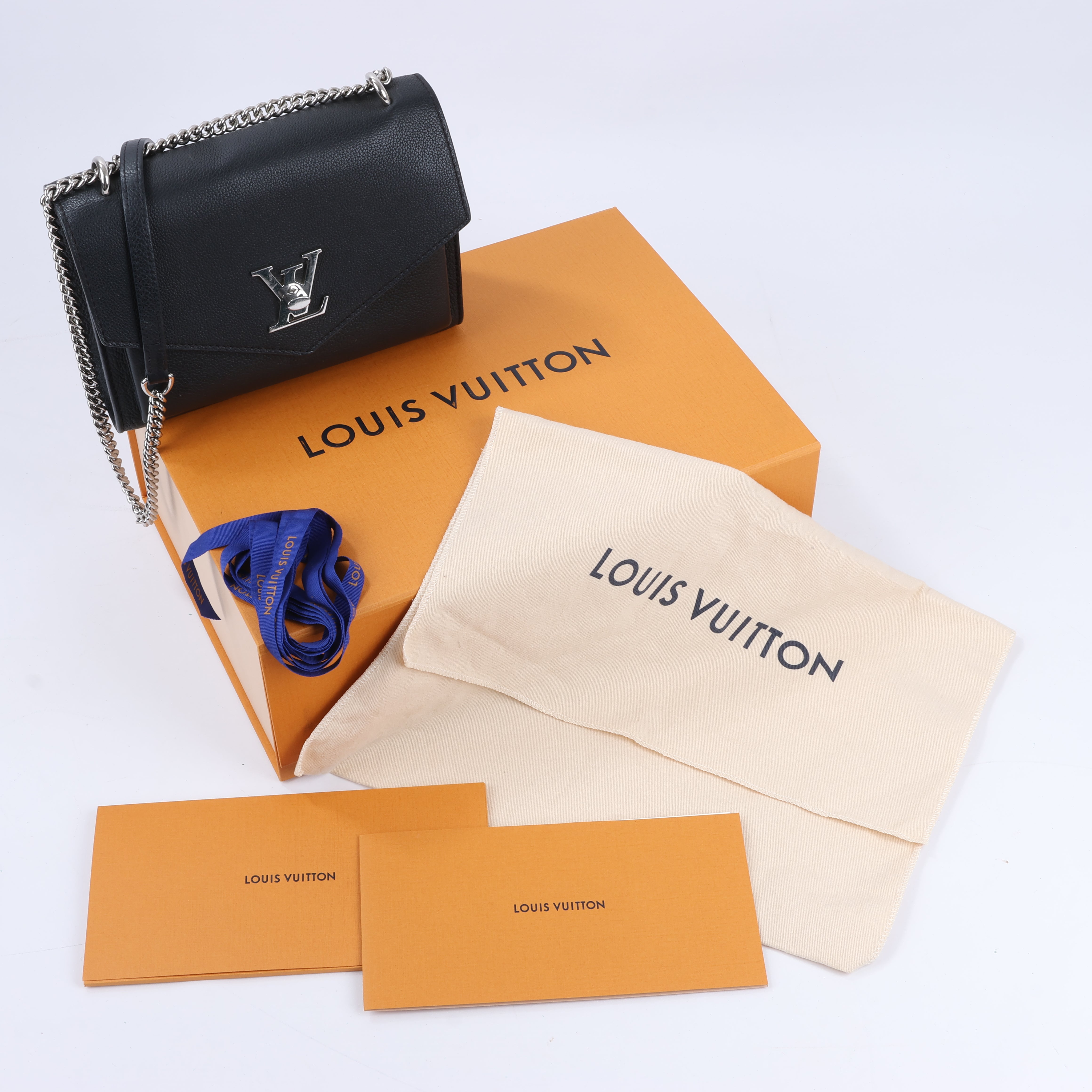 Brand: LOUIS VUITTON Model: MyLockMe Size: BBWidth: 22.5 cmHeight: 15 cm Exterior Condition: ExcellentInterior Condition: ExcellentCondition Details: The exterior leather is clean and beautiful in excellent condition with minor creases and rubbings. The strap is in excellent condition. The hardware remains bright and crisp with hairline scratches. The interior leather is in excellent condition. There was an RFID response.Colour: BlackInterior Colour: BlackHardware Colour: SilverMaterial: LeatherComes With: Box, dustbag, envelope